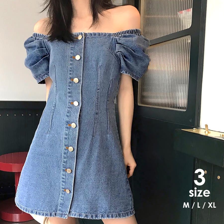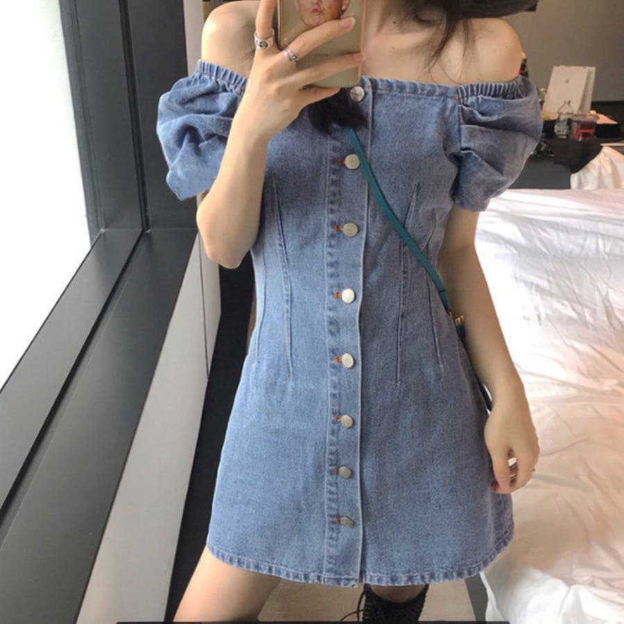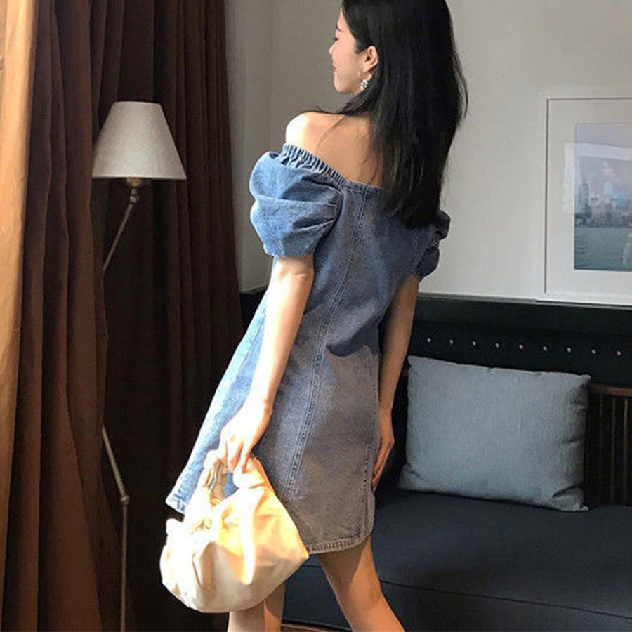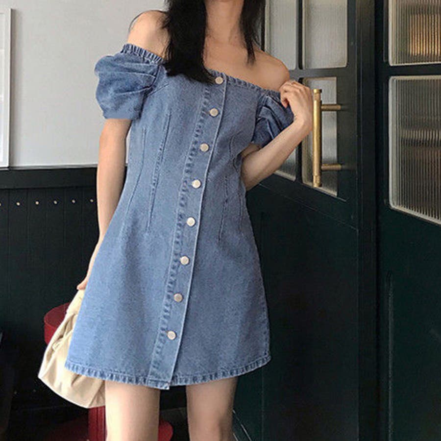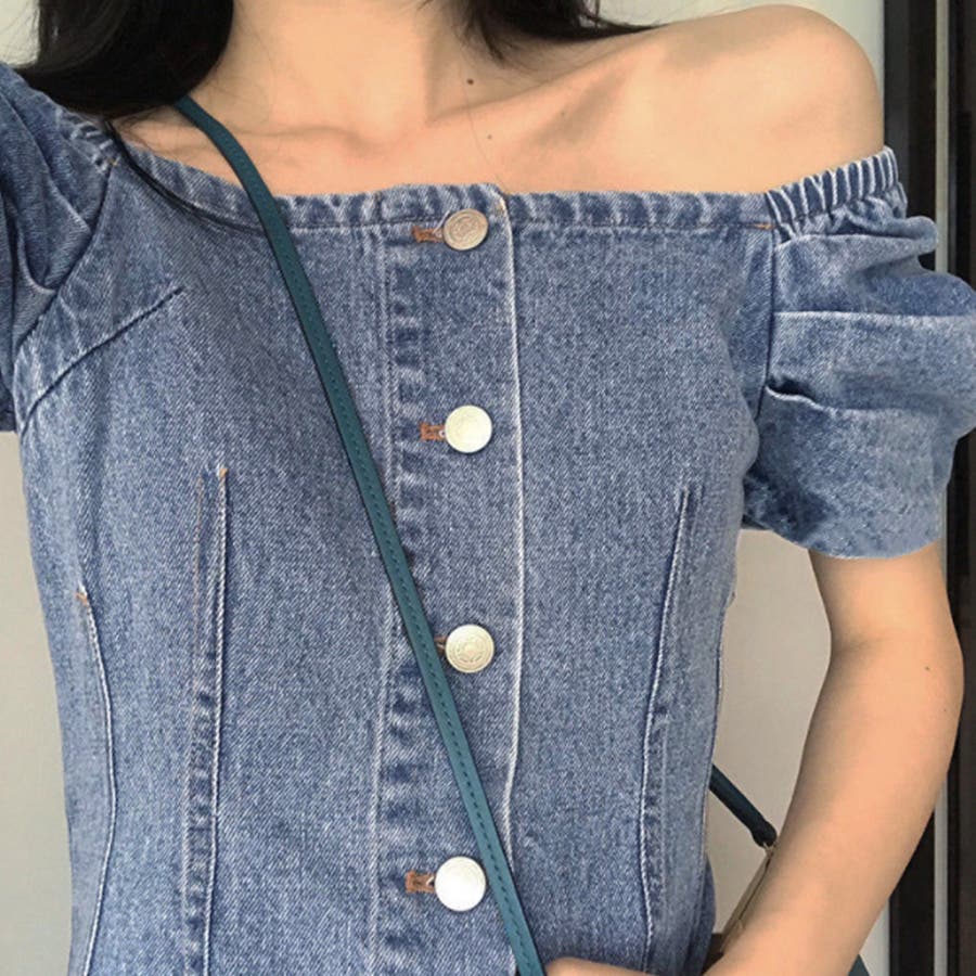 カジュアルテイストも盛り込んだデニムオフショルダーワンピースです