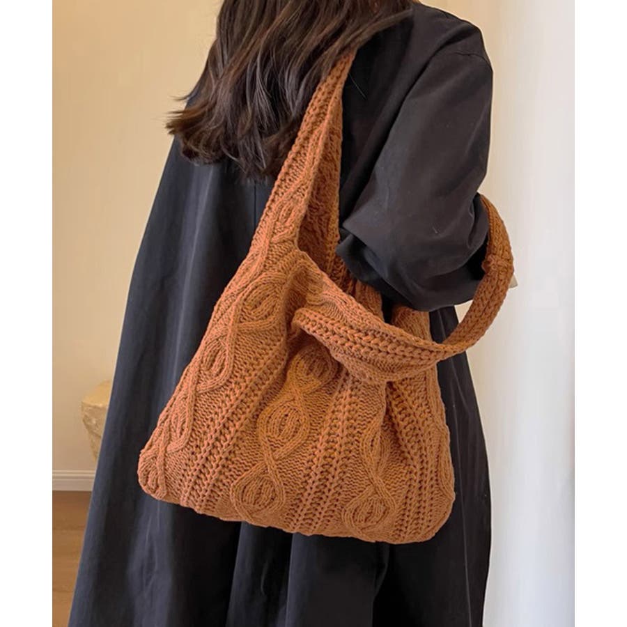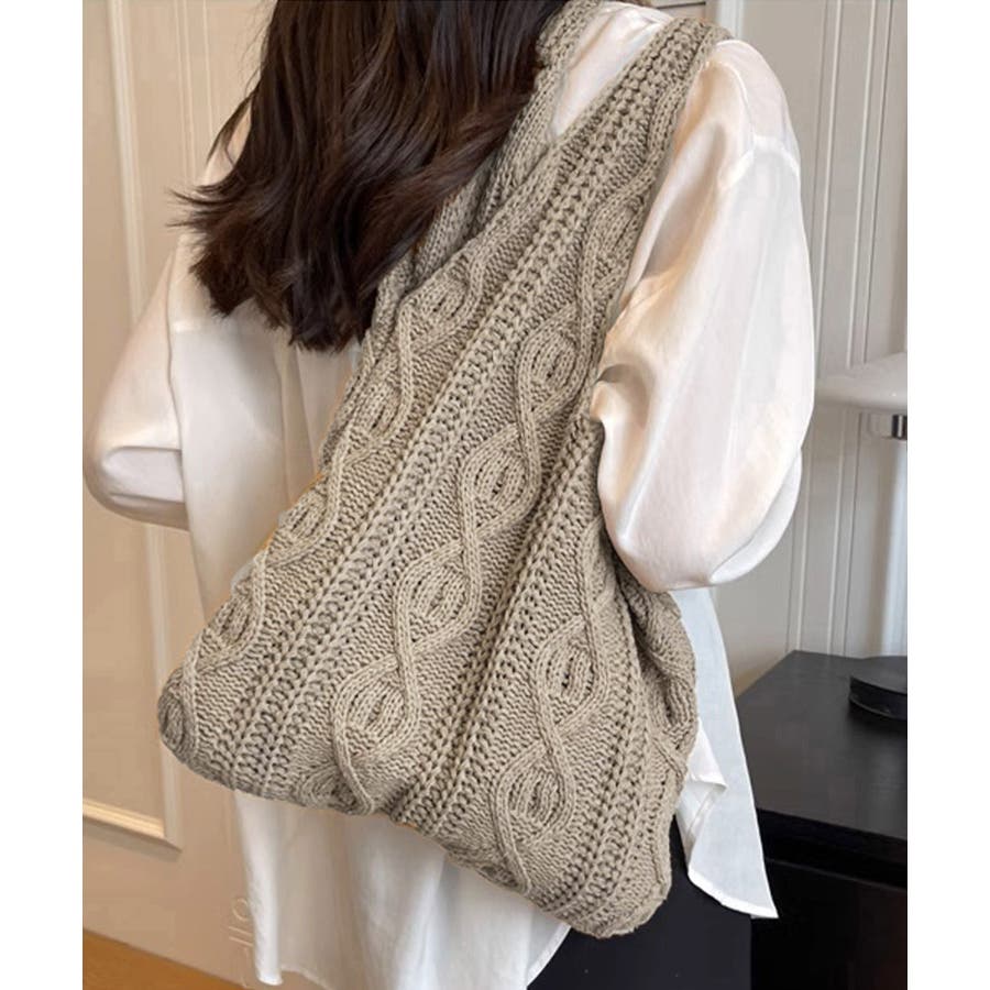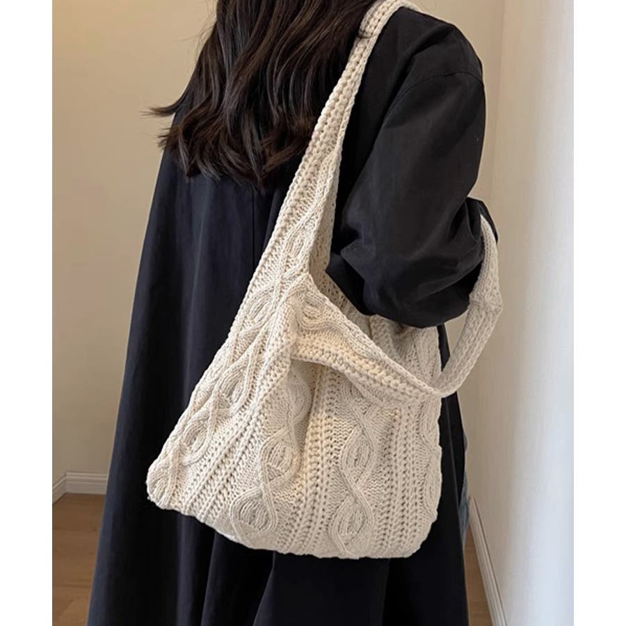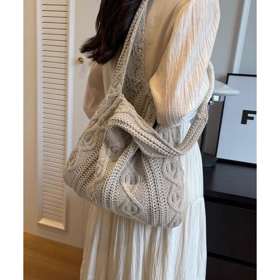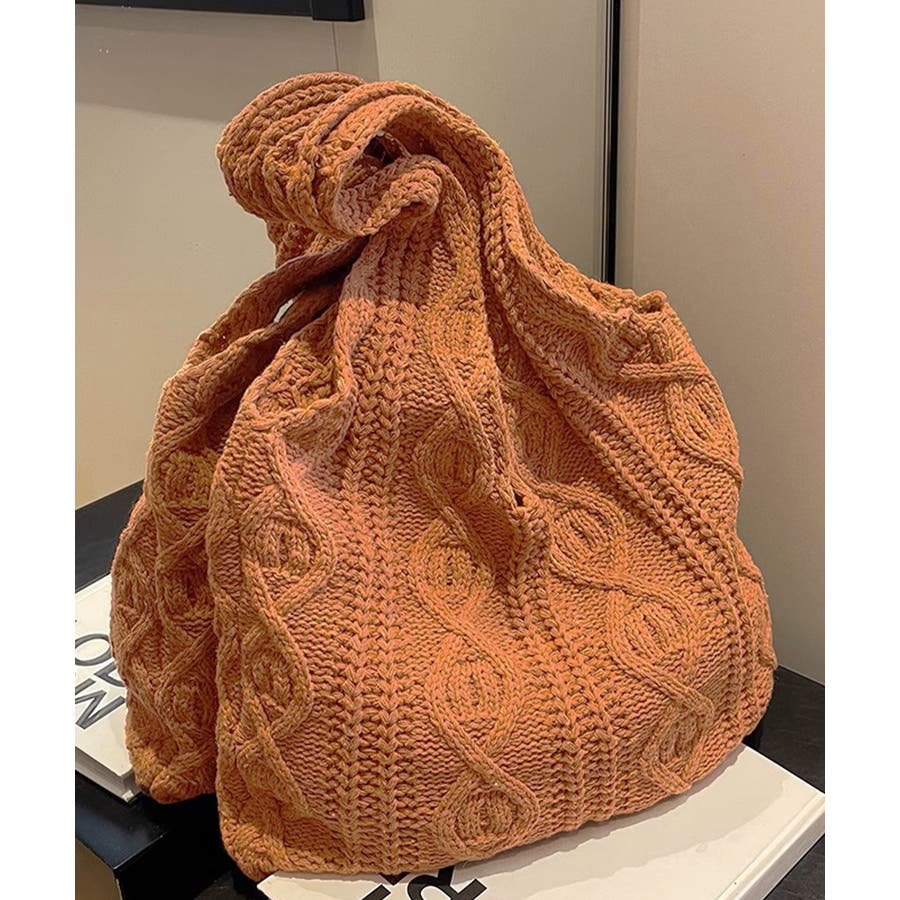 持つだけでこなれ感のあるケーブル編みニット生地のトートバッグ