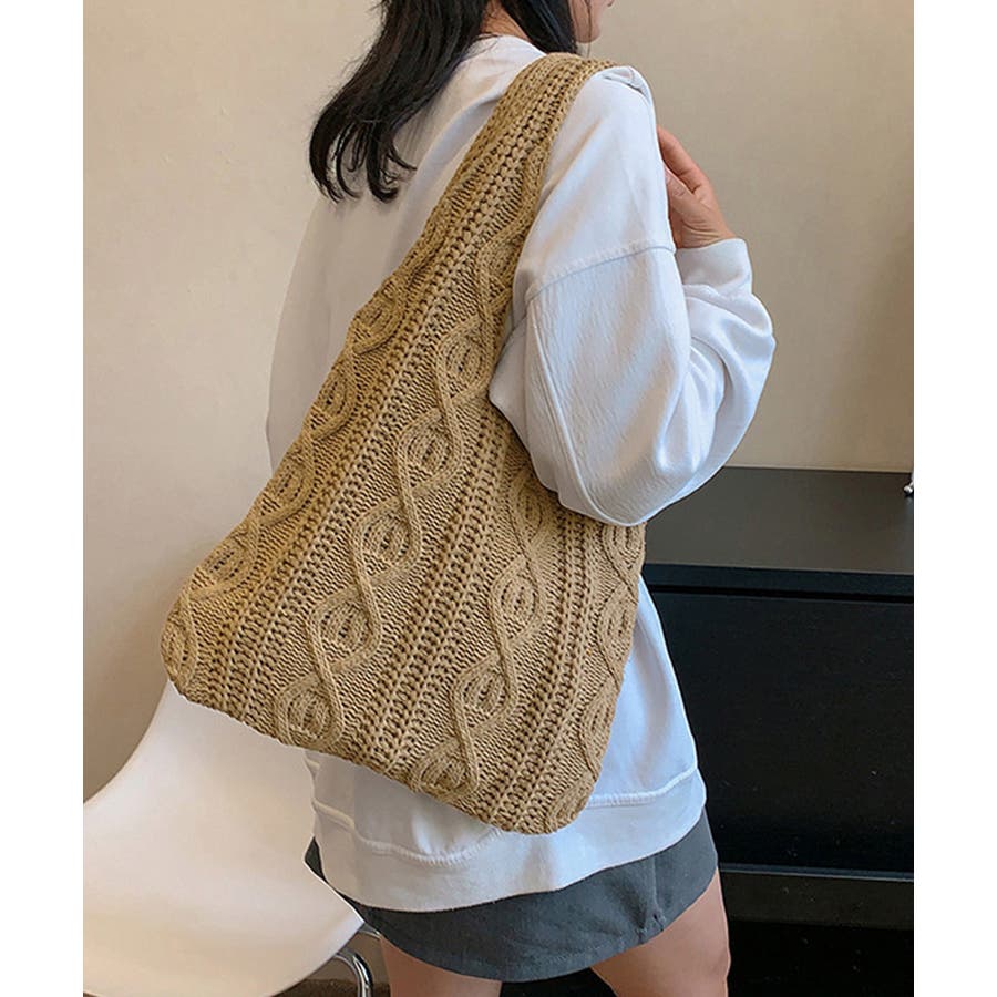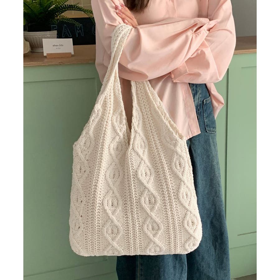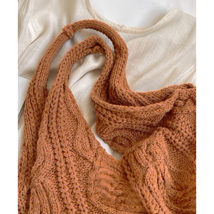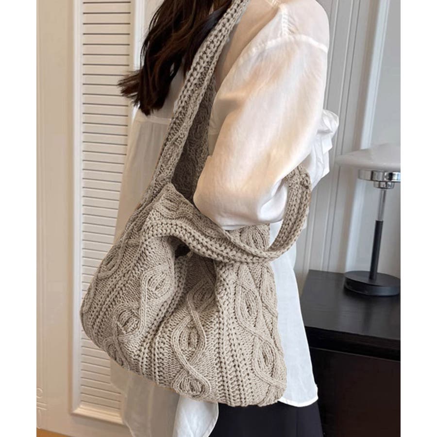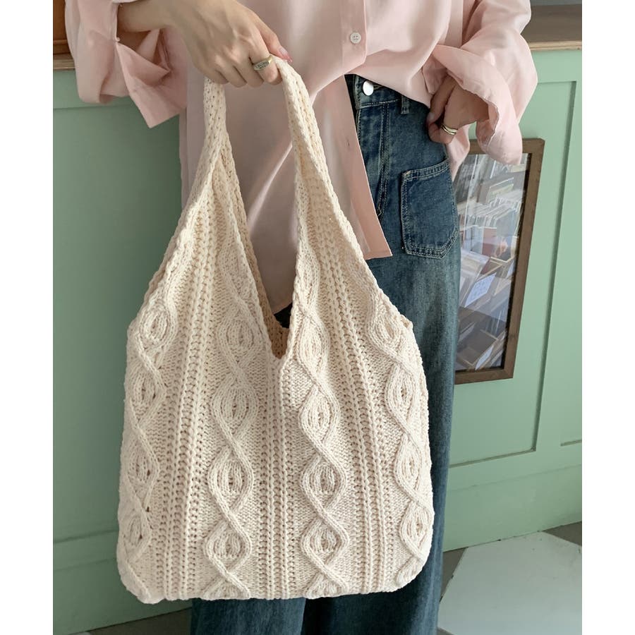 持つだけでこなれ感のあるケーブル編みニット生地のトートバッグ