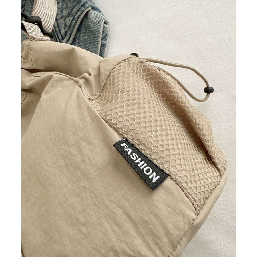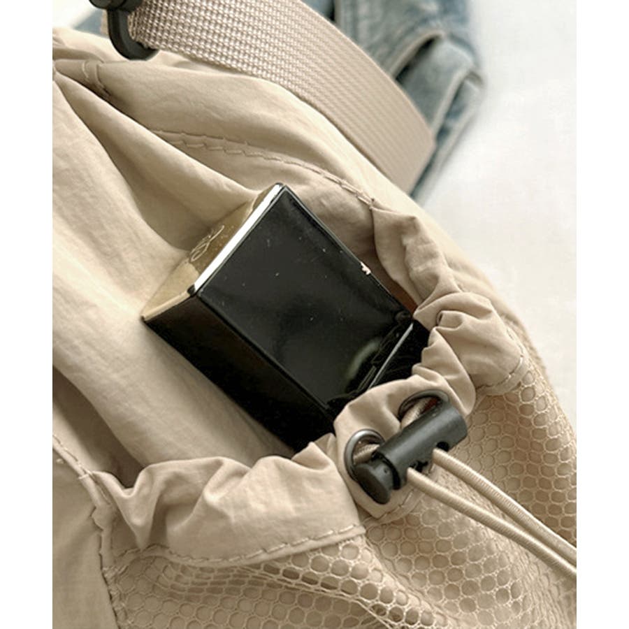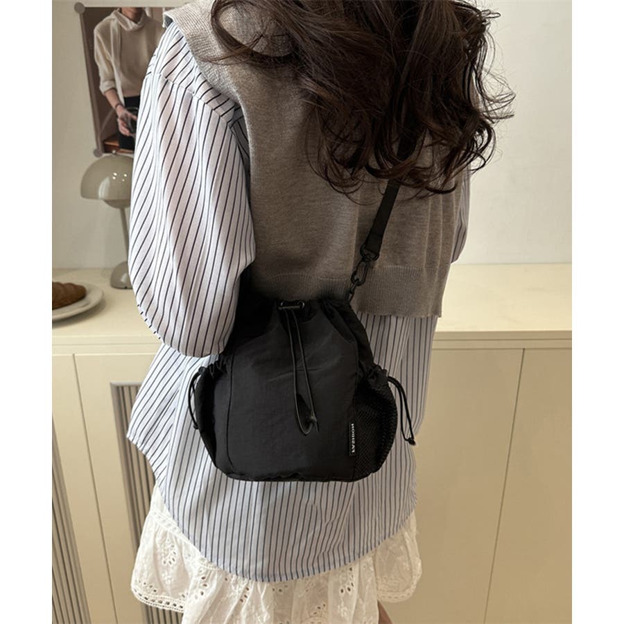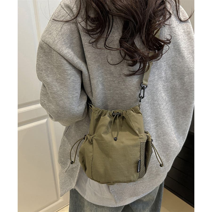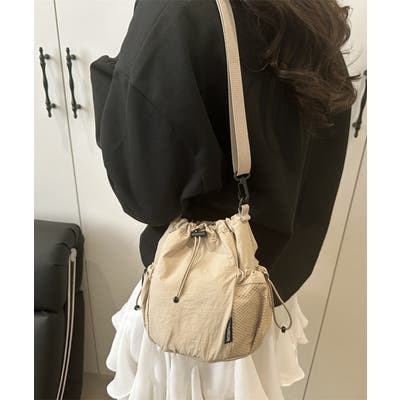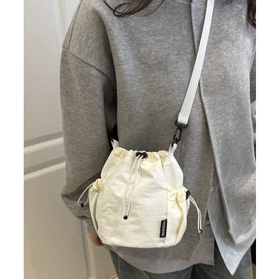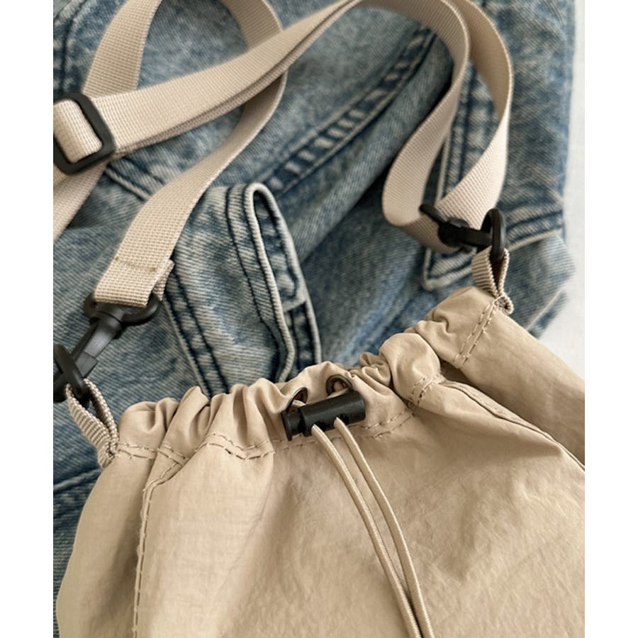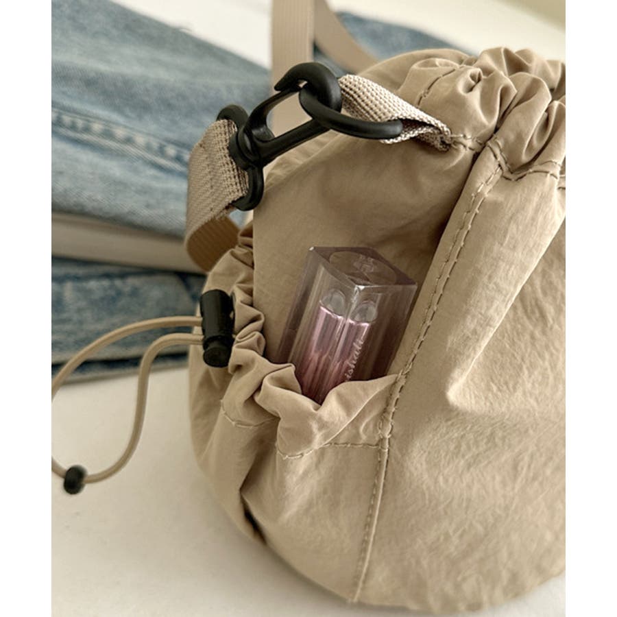軽量でコンパクトなサイズ感が魅力の巾着ショルダーバッグ。