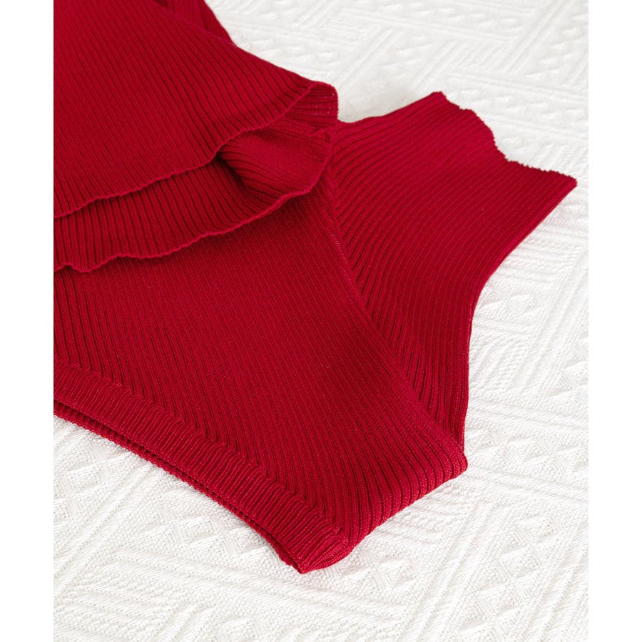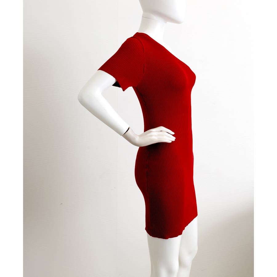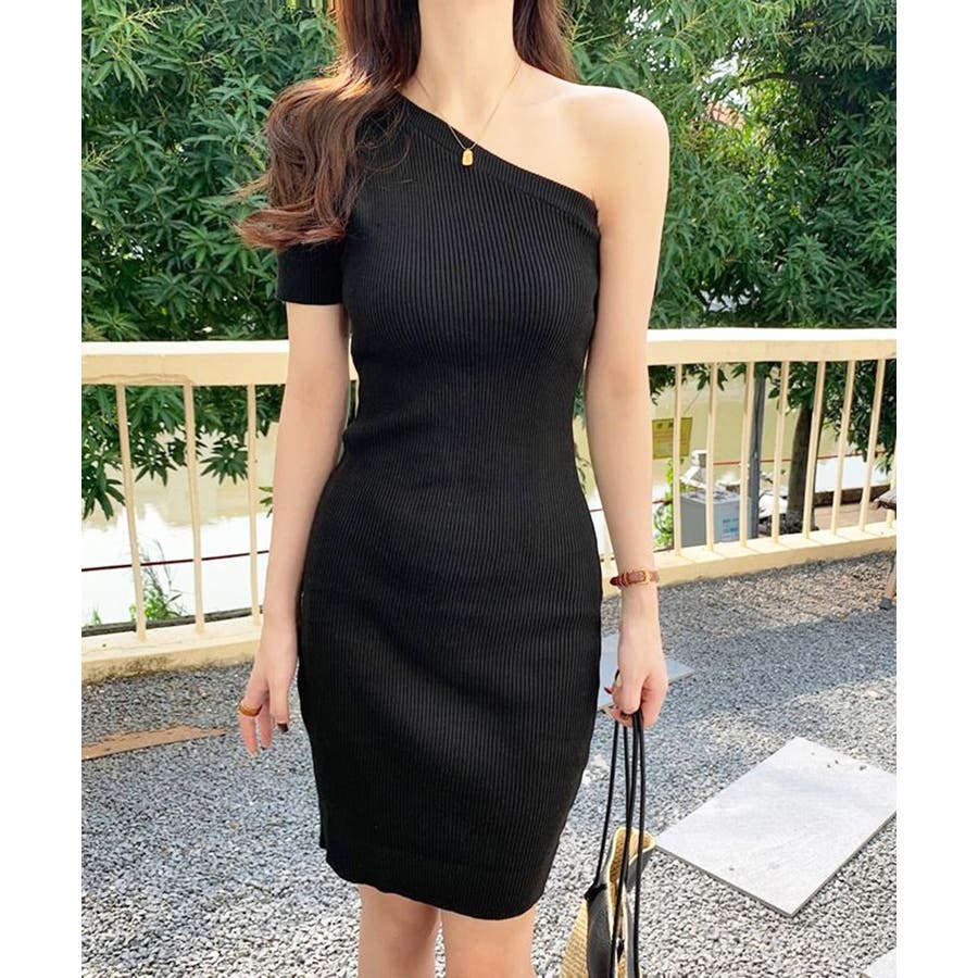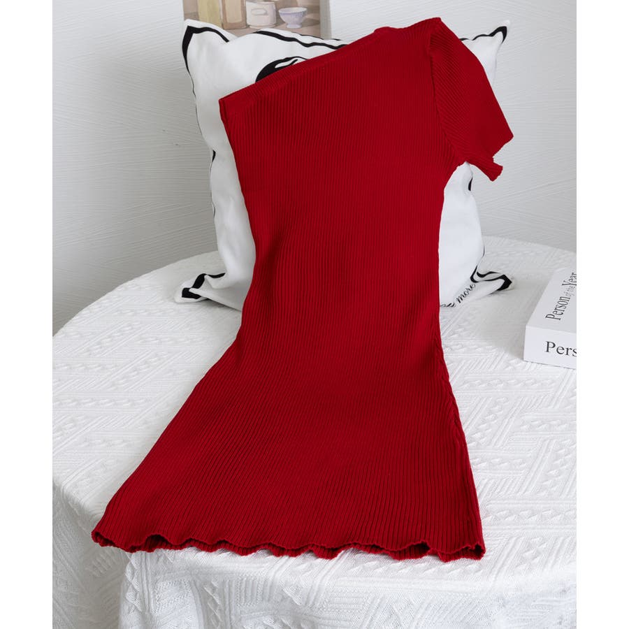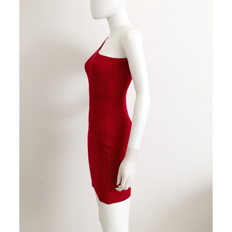 上品さとセクシーさを兼ね備えたワンショルダーデザインが魅力のリブニットワンピース