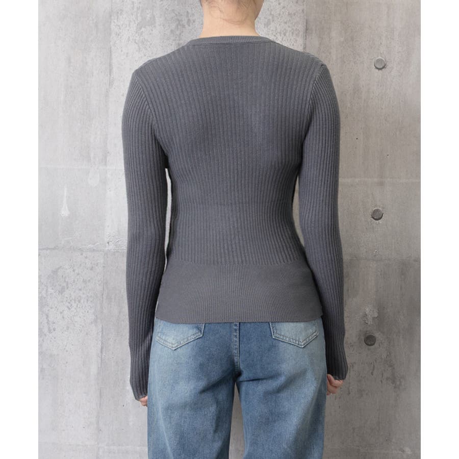ボディラインをほどよく引き立てるリブ素材で、すっきりとしたシルエットに。