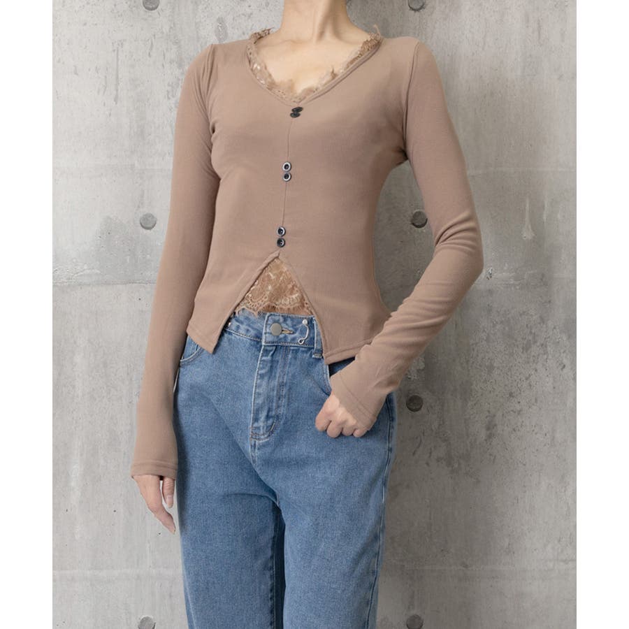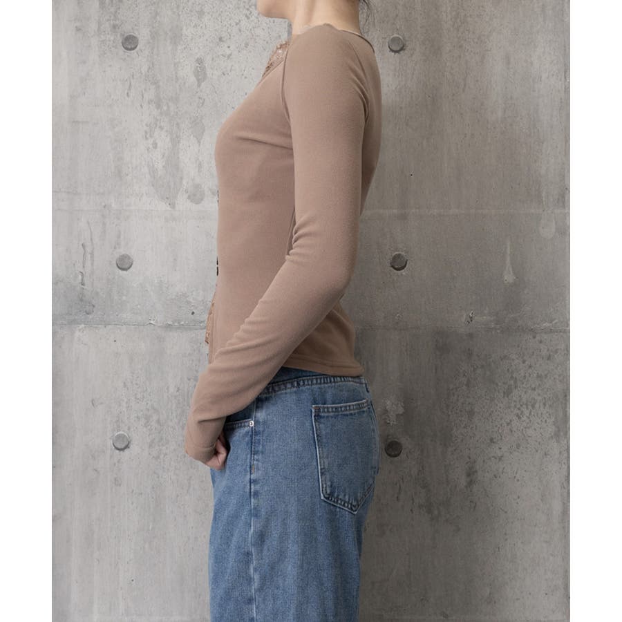 フェミニンなレースデザインがポイントの長袖カットソー。