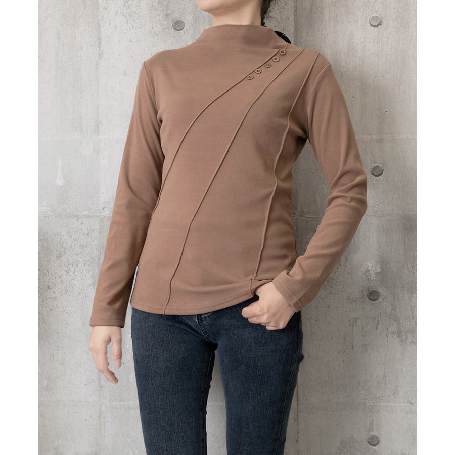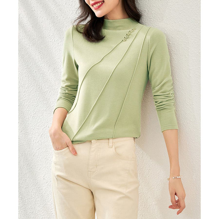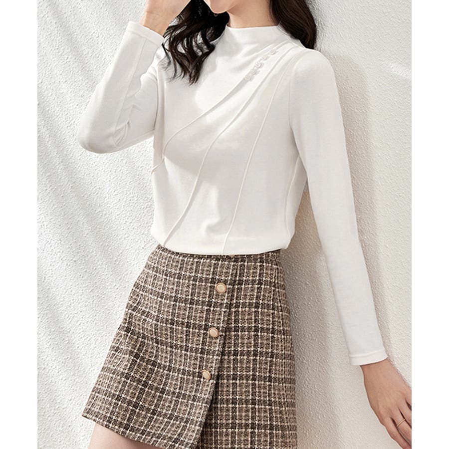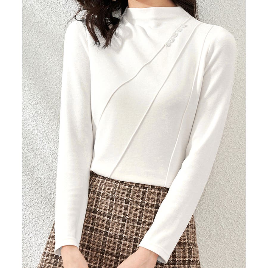 程よいプチハイネックが顔まわりをシャープに見せるカットソー。