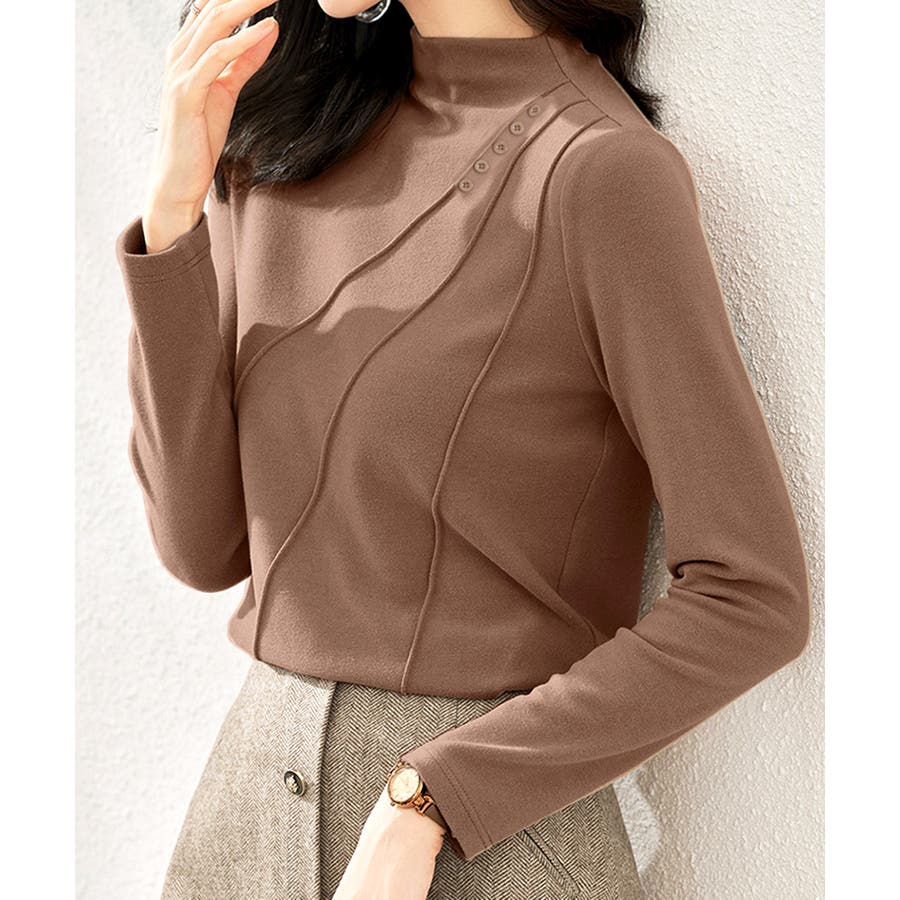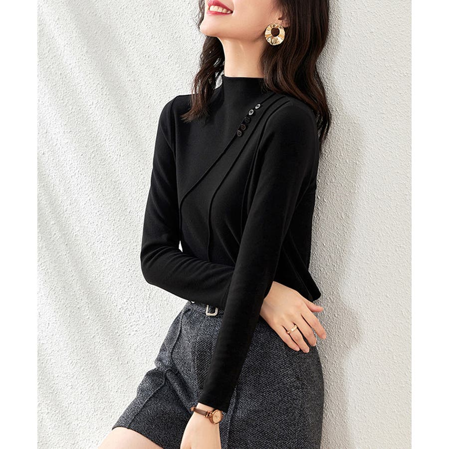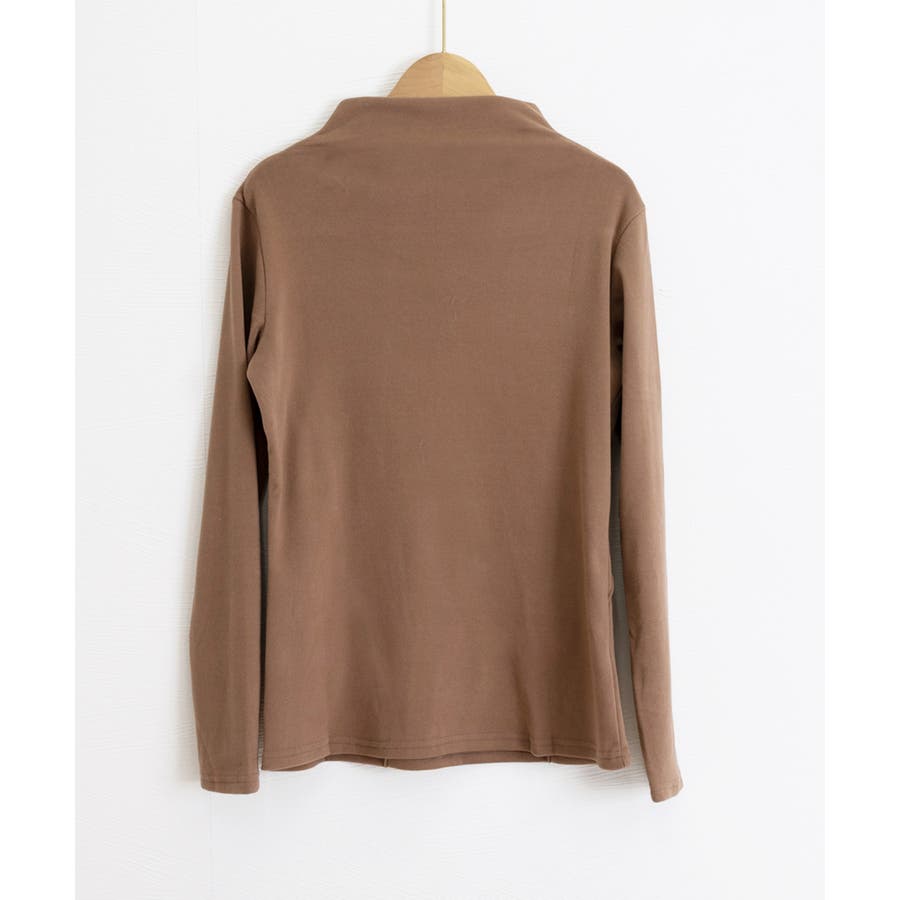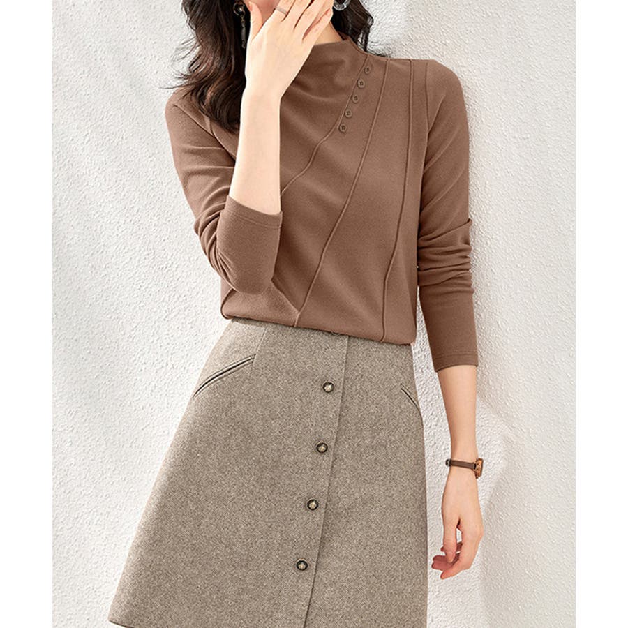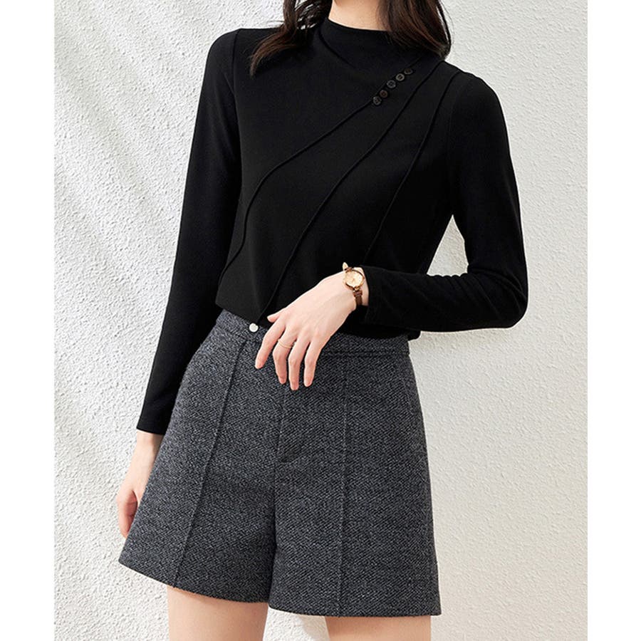 程よいプチハイネックが顔まわりをシャープに見せるカットソー。
