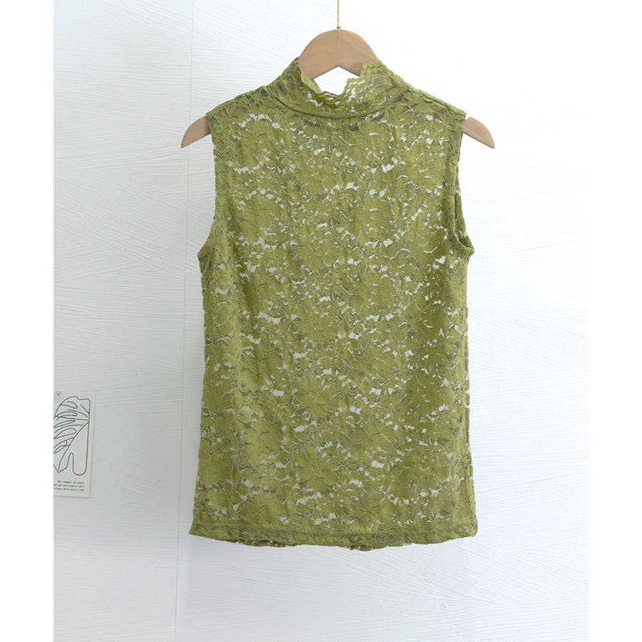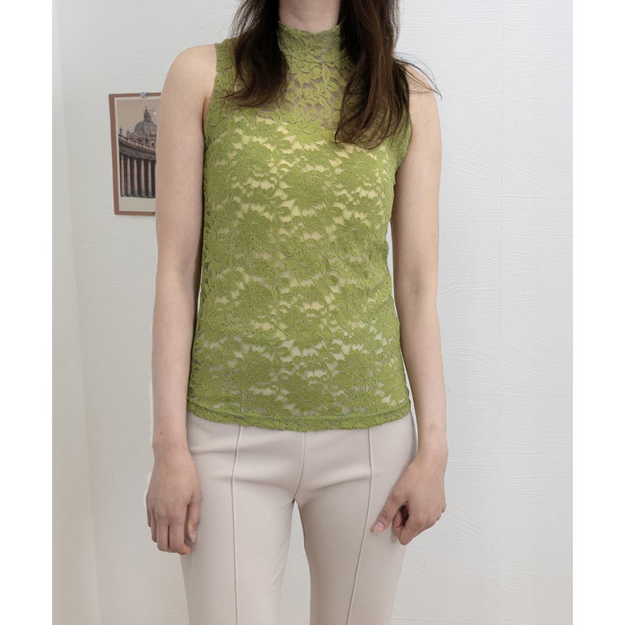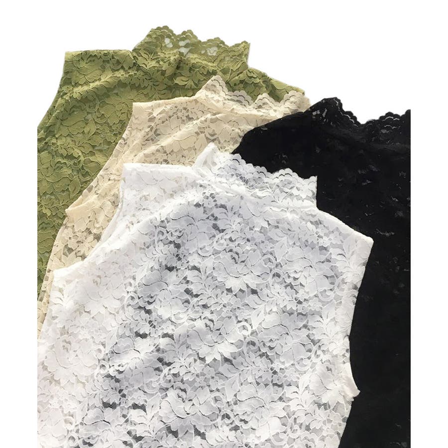 上品でフェミニンな雰囲気を演出する、総レースのノースリーブトップス