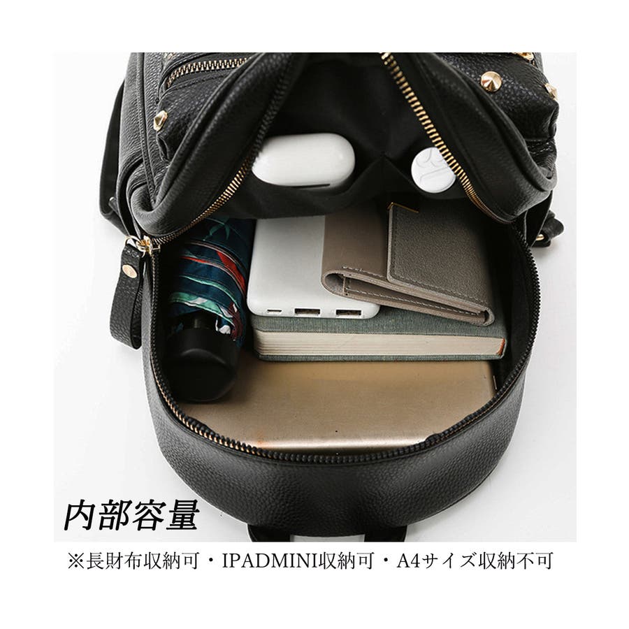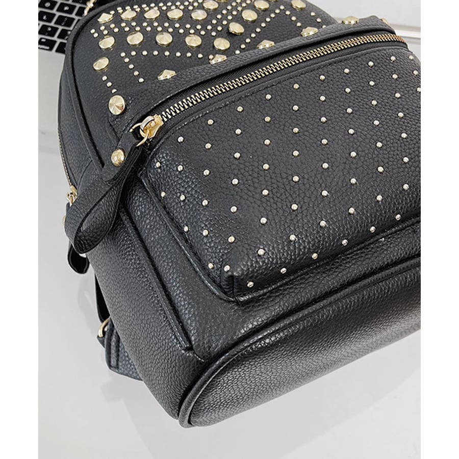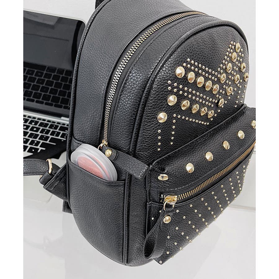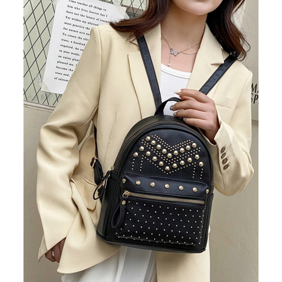 スタッズがアクセントになるレディースフェイクレザーリュック