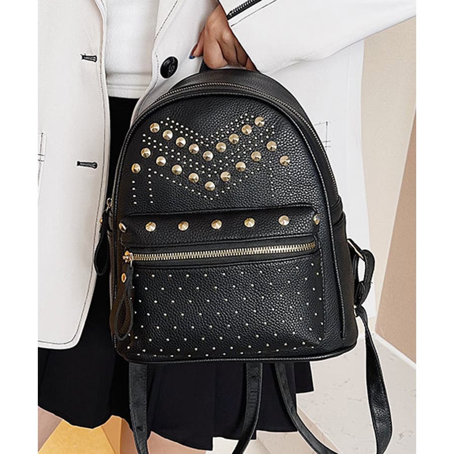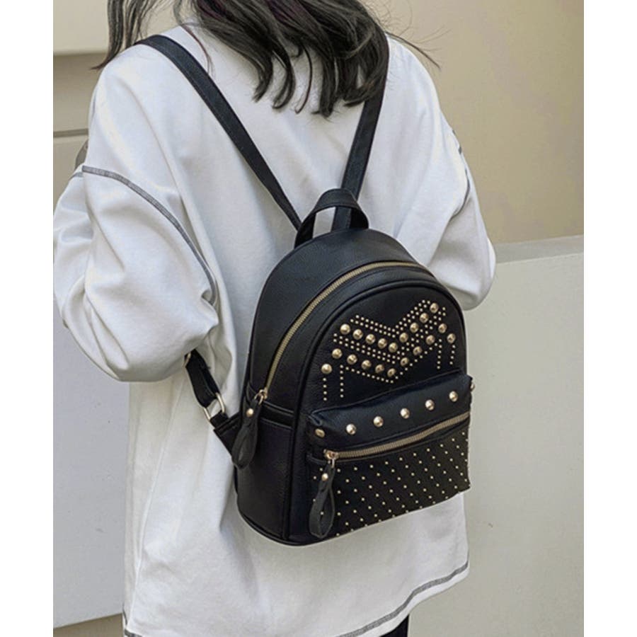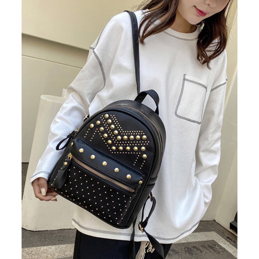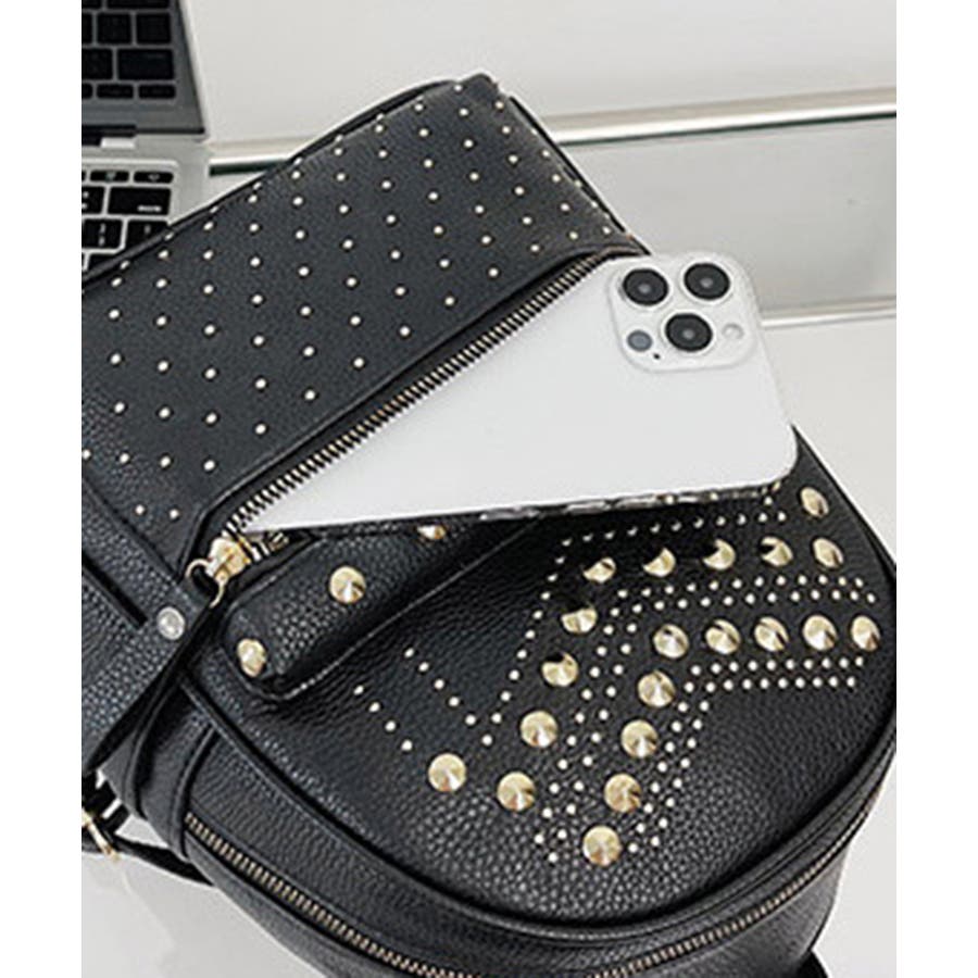 スタッズがアクセントになるレディースフェイクレザーリュック