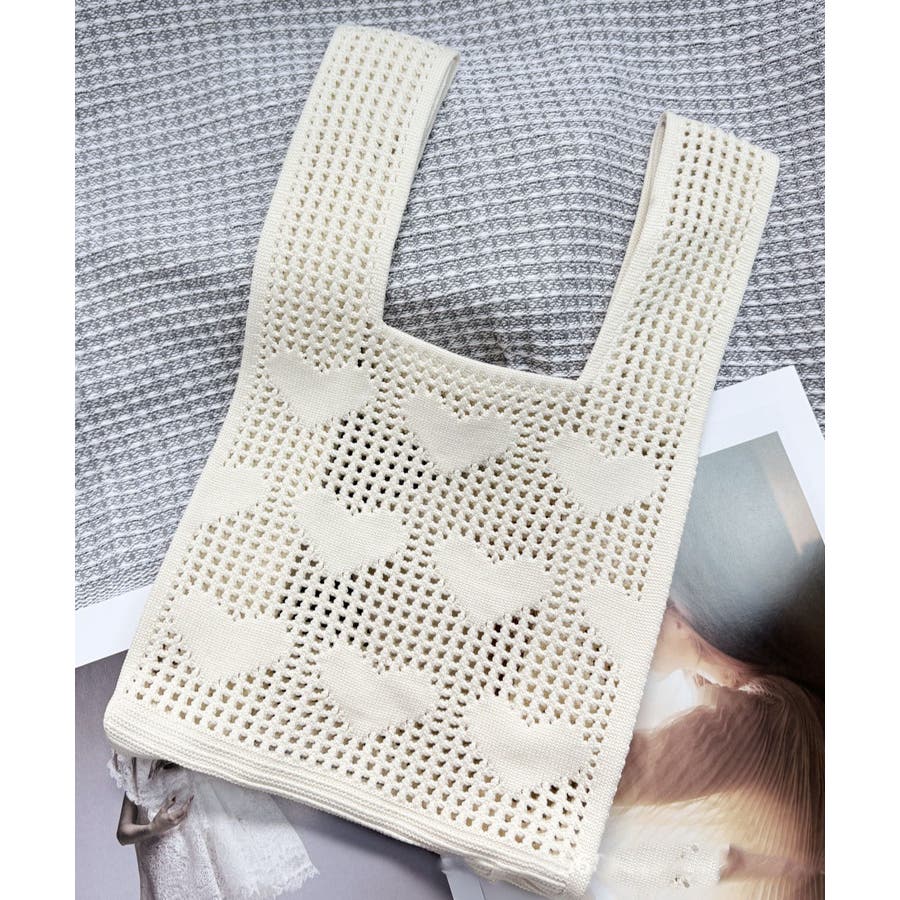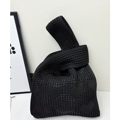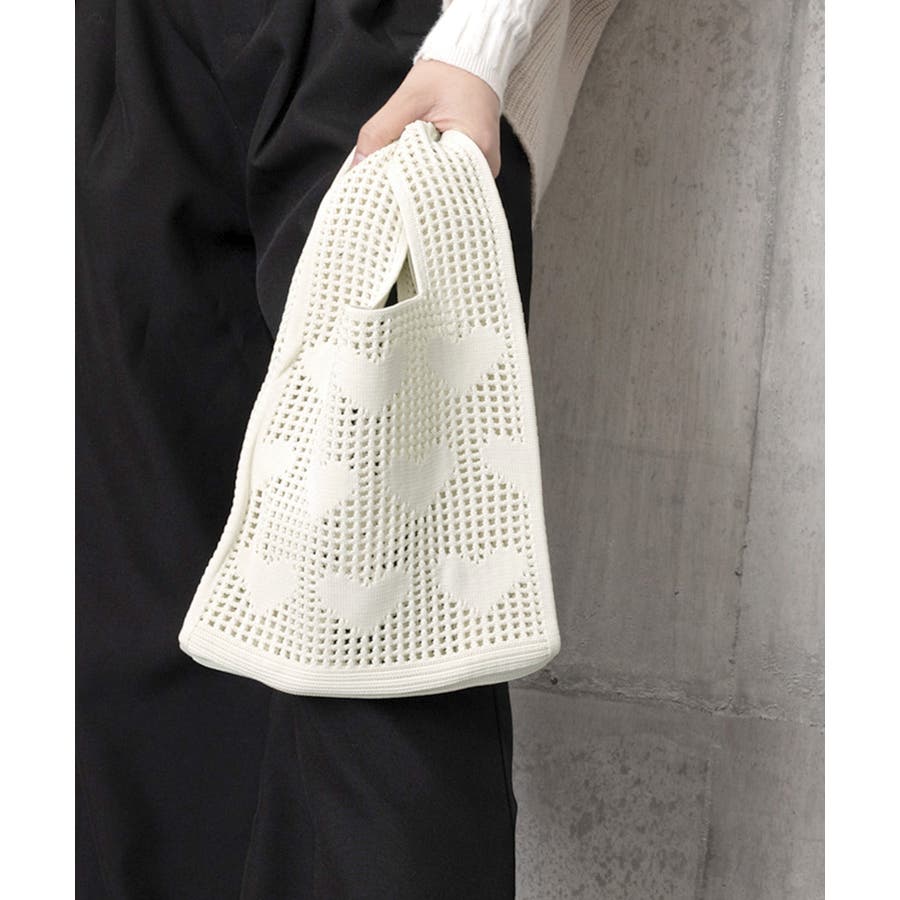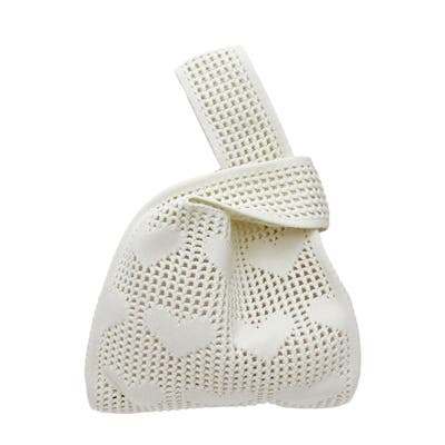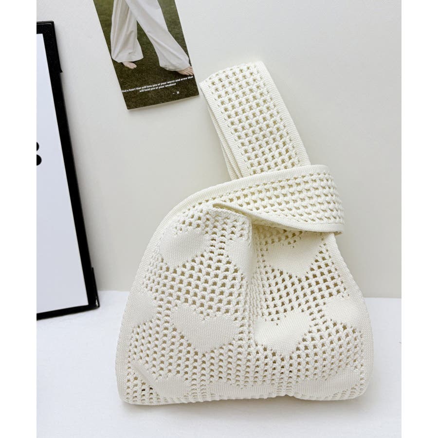 ニットバッグ 軽量 ミニトート 韓国風 折り畳める鞄 小さめ 大人可愛い ワンハンドルバッグ ニット編みかばんナチュラル
