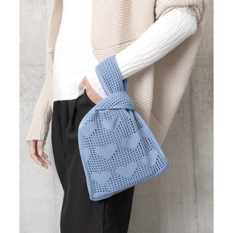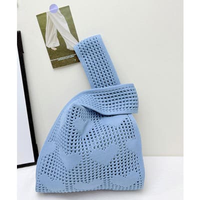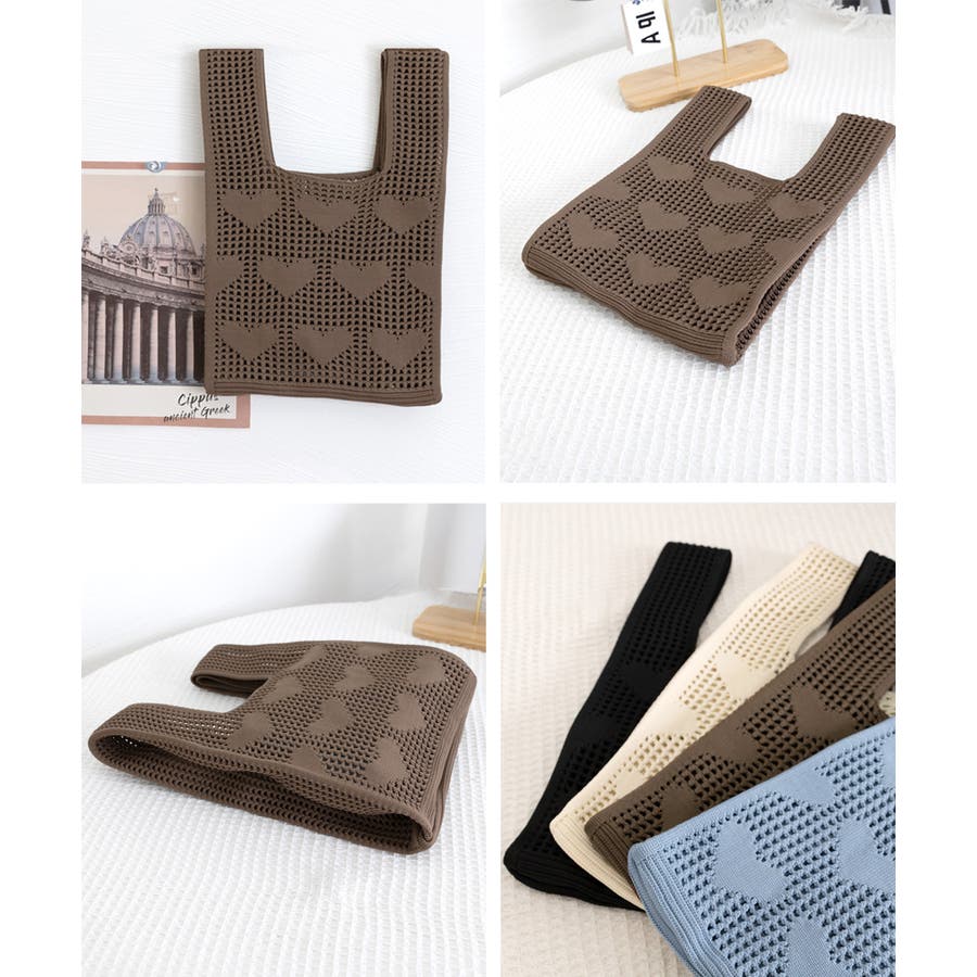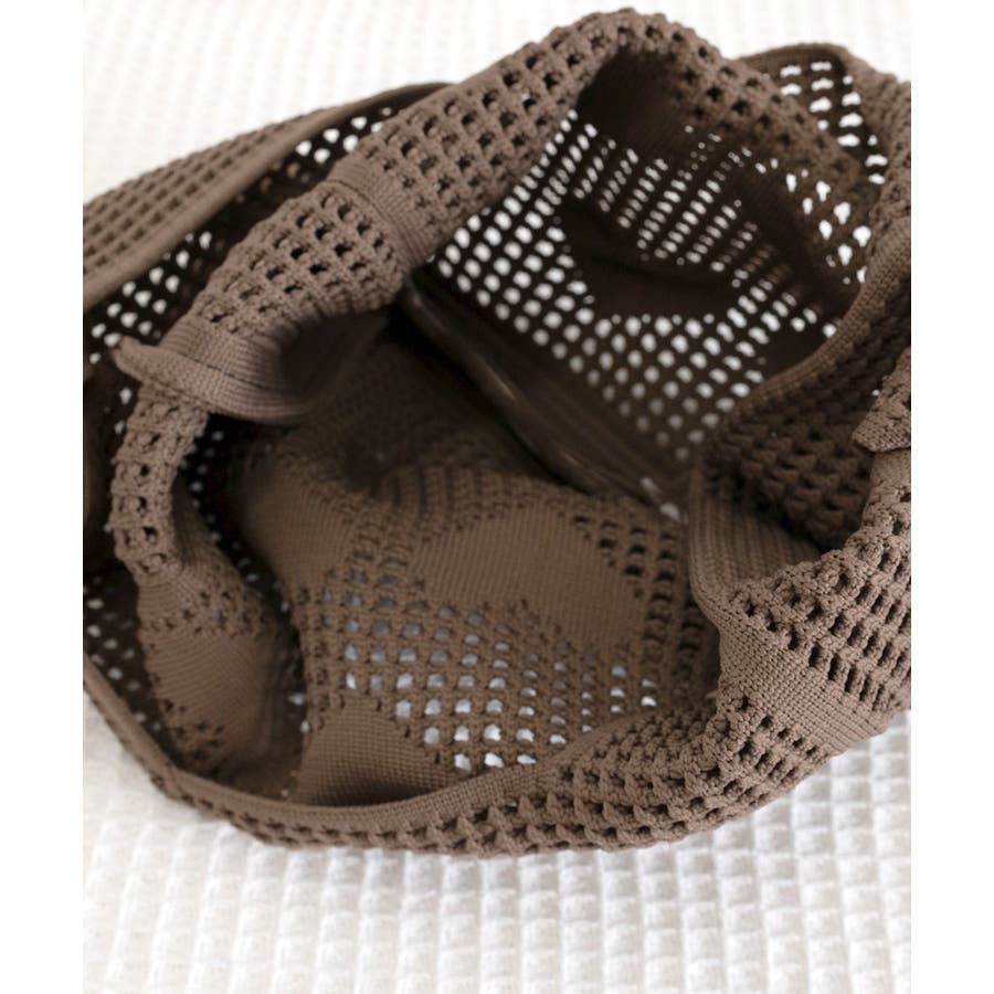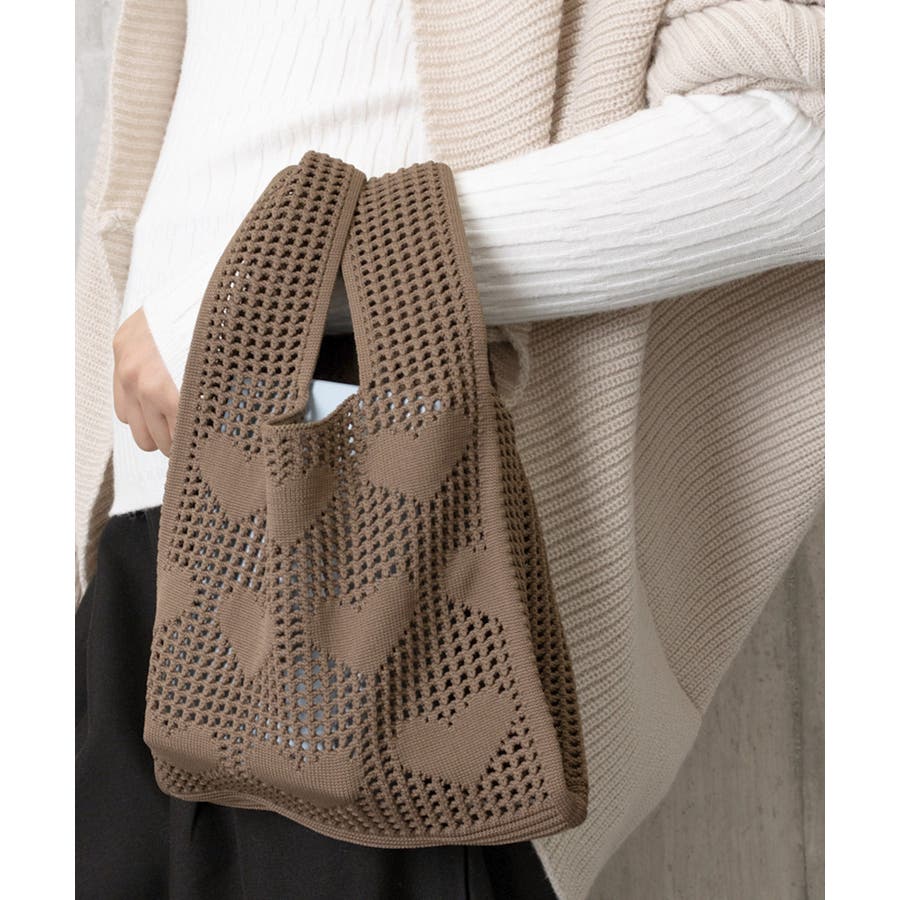 ニットバッグ 軽量 ミニトート 韓国風 折り畳める鞄 小さめ 大人可愛い ワンハンドルバッグ ニット編みかばんナチュラル