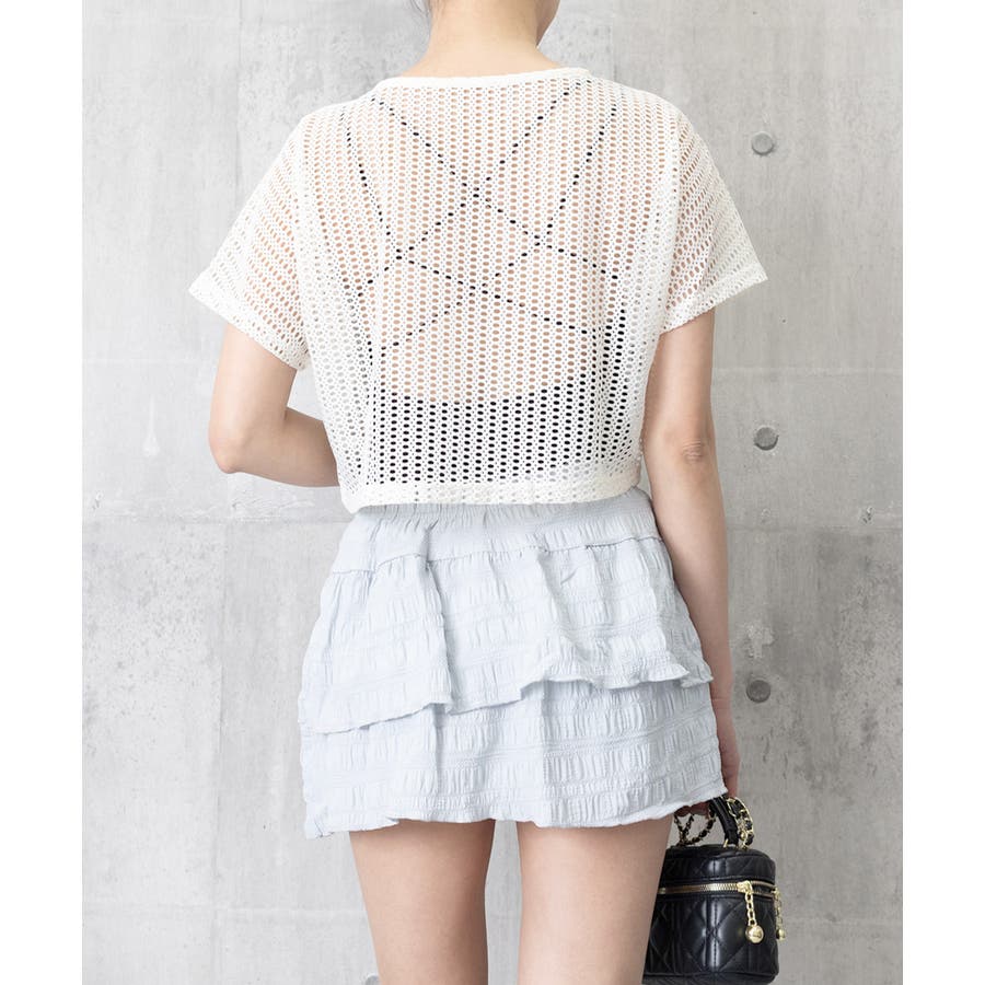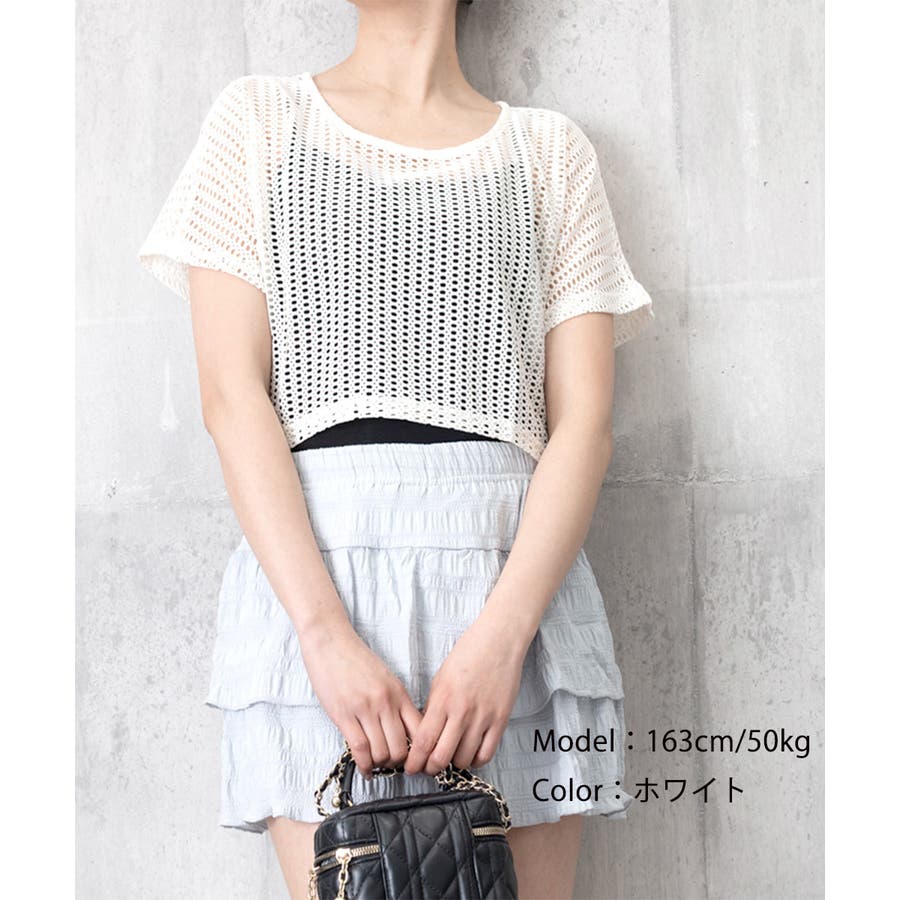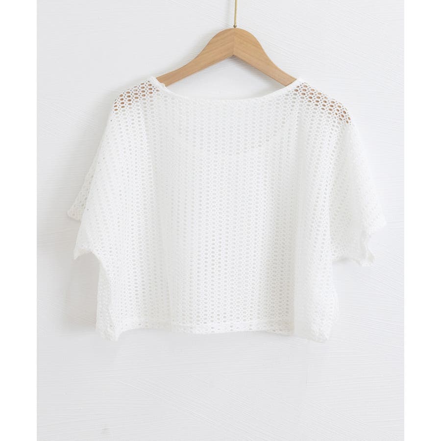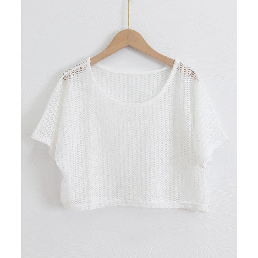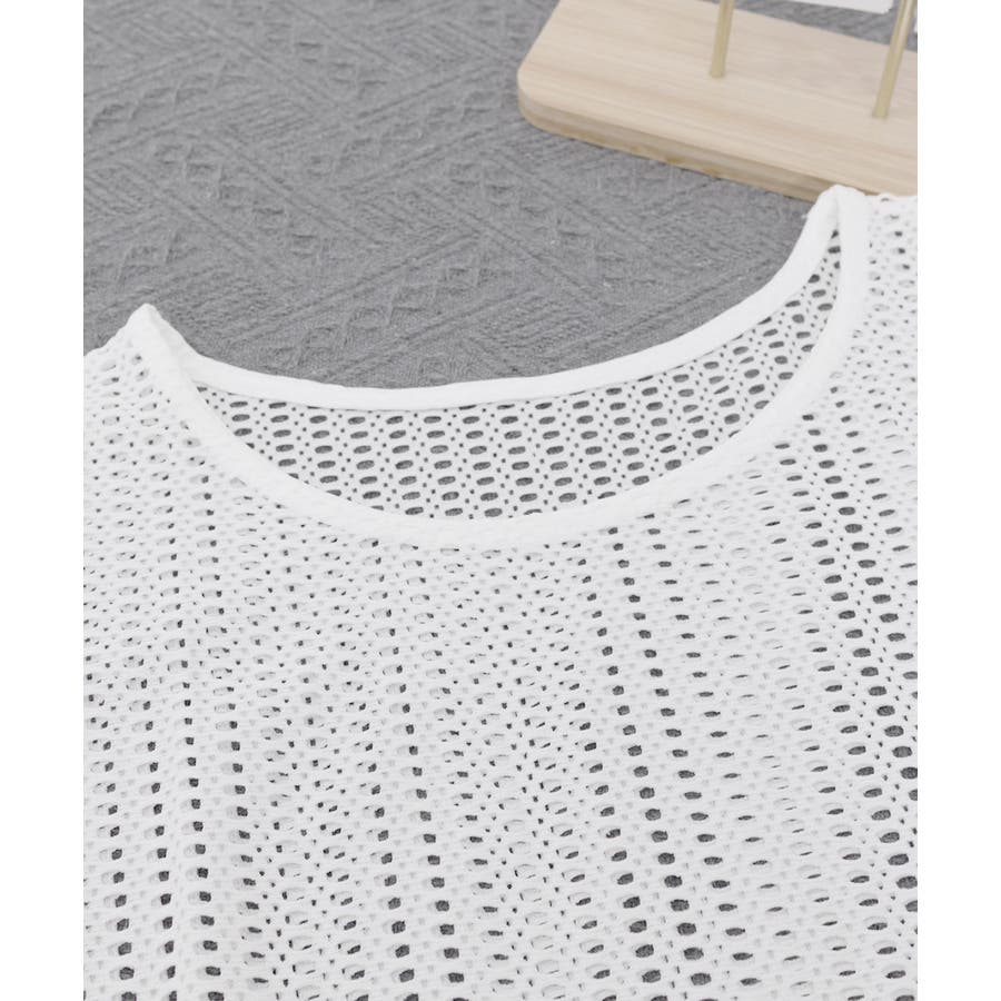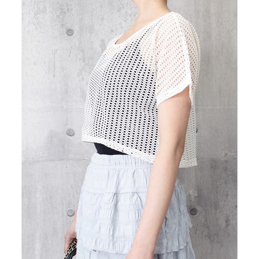 メッシュトップス ショート丈 クルーネック