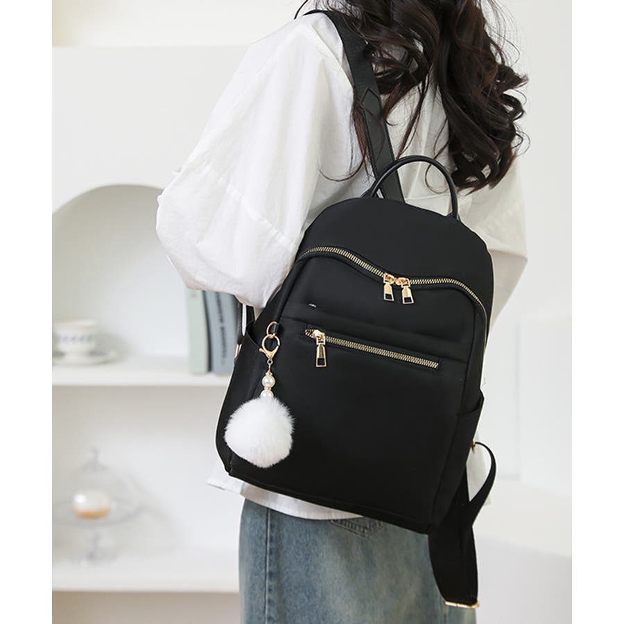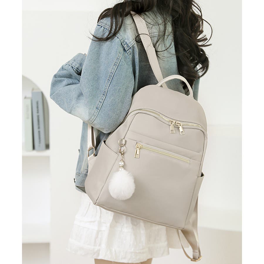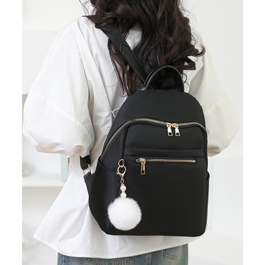 リュックサック 軽量 ファーチャーム付き