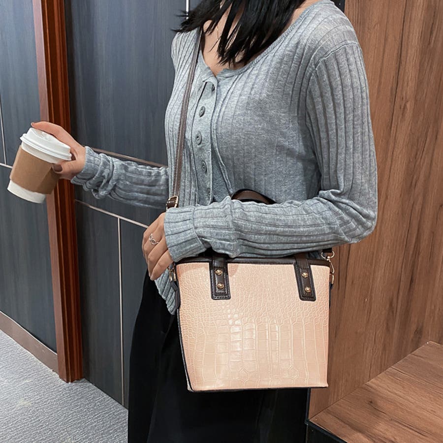 小さめで持ち歩きやすいバケツ型PUレザーショルダーバッグ