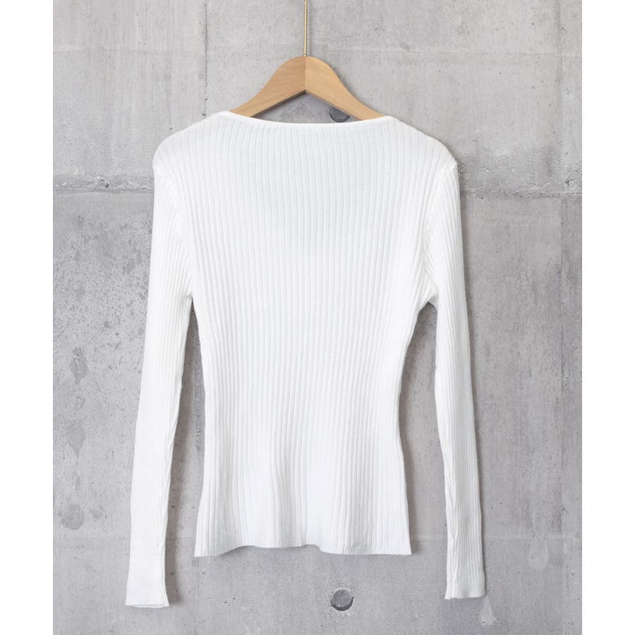 ボディラインをほどよく引き立てるリブデザインの長袖トップス。