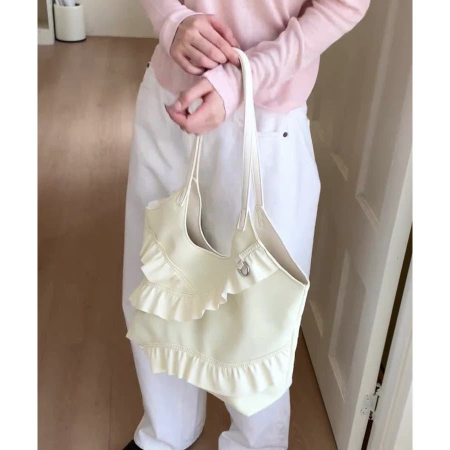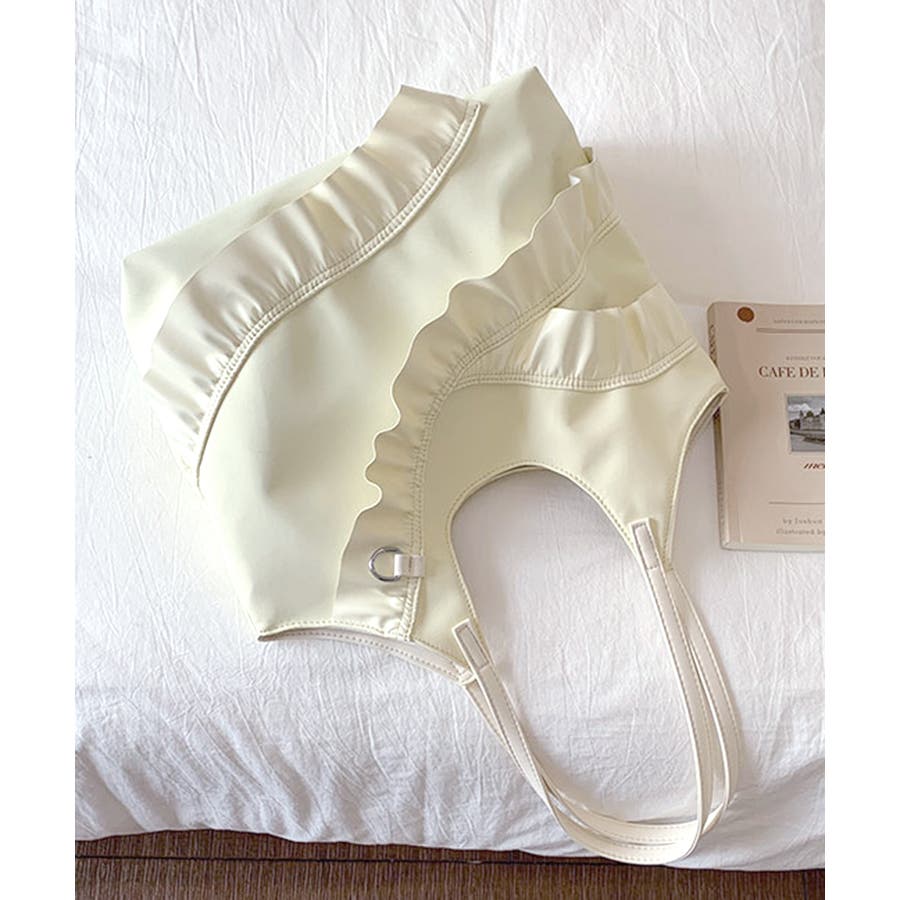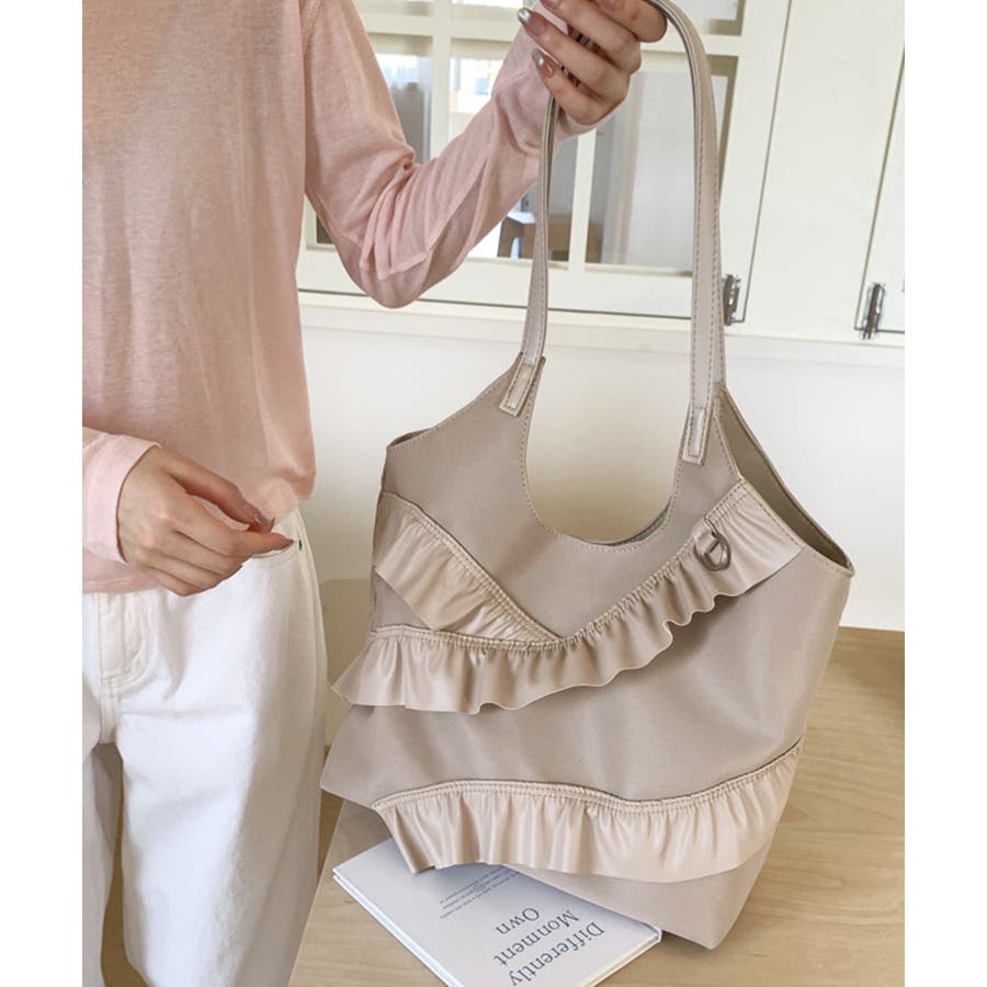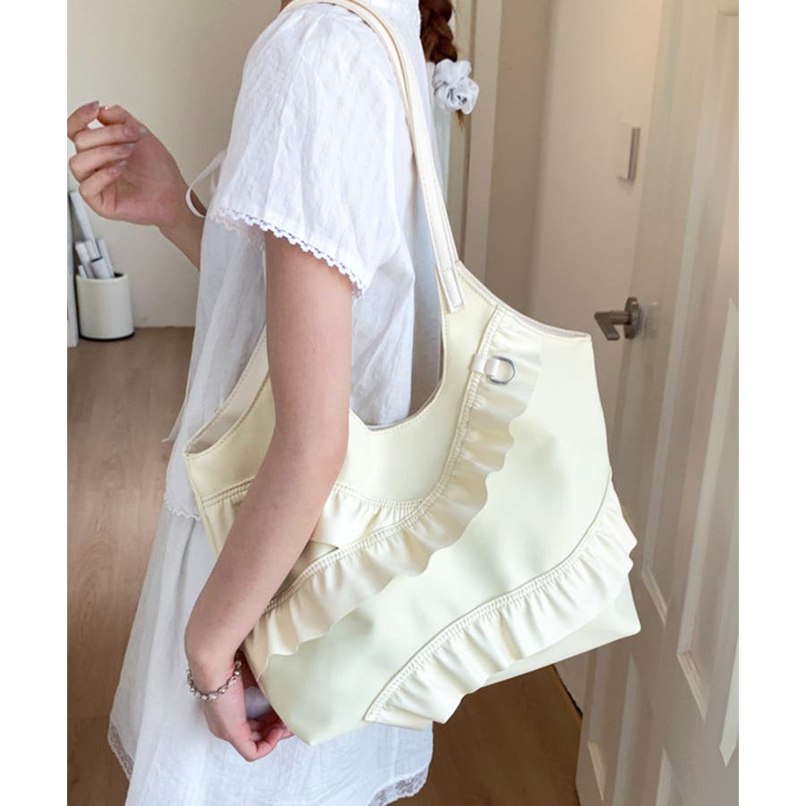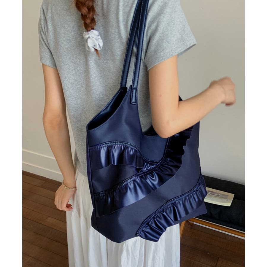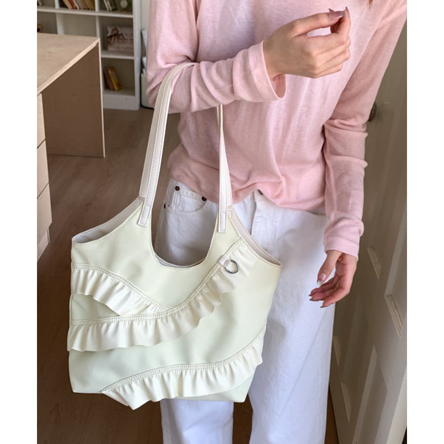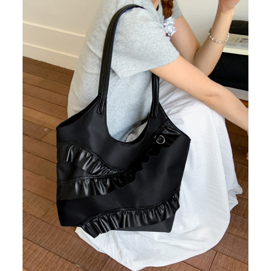 立体感のあるラッフルフリルが目を惹く、モード感漂うトートバッグ。