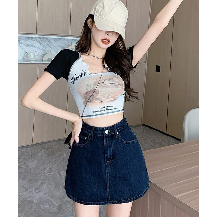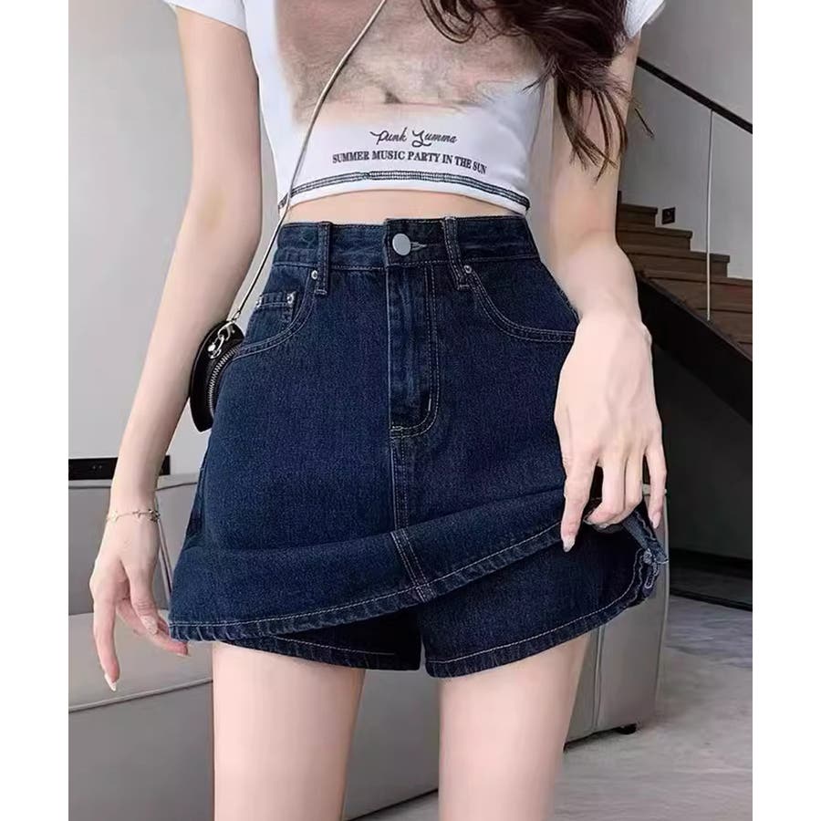 おしゃれ短パン春夏 細見え台形スカート デニムキュロット夏