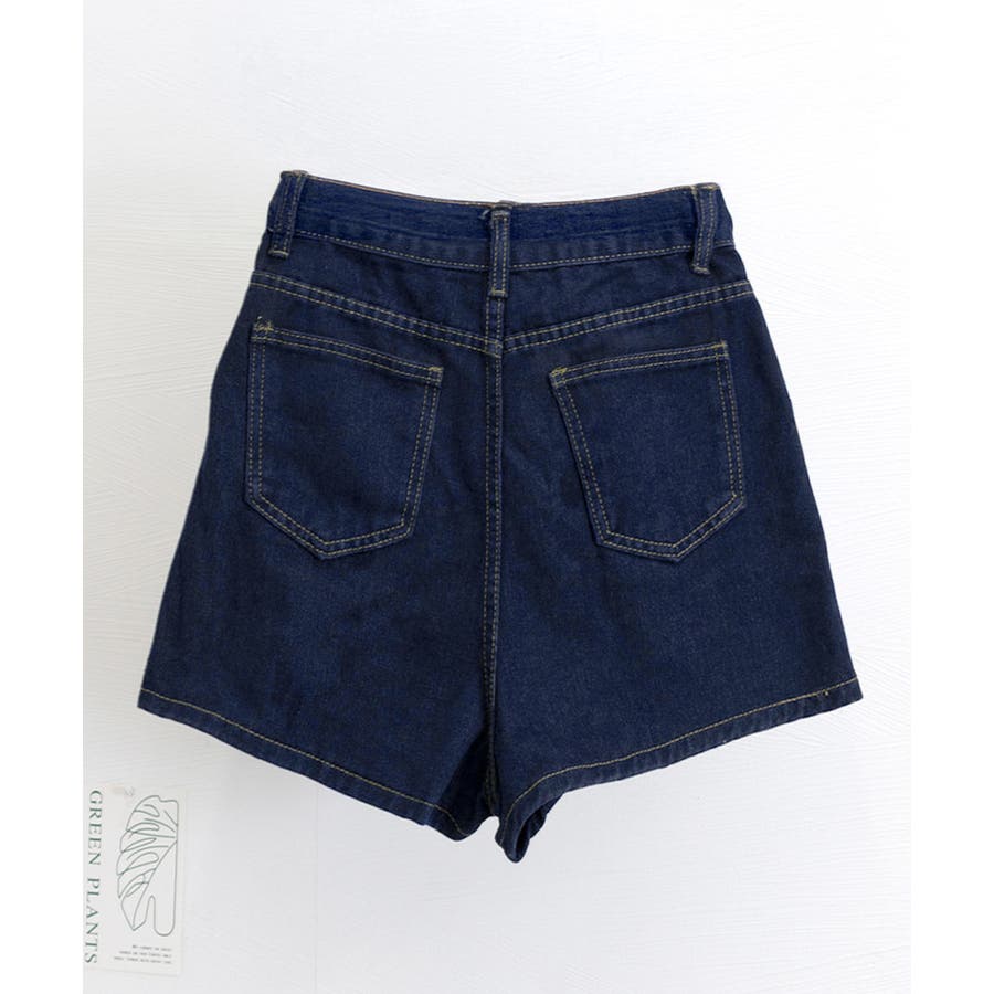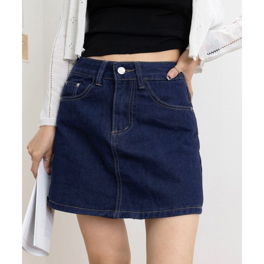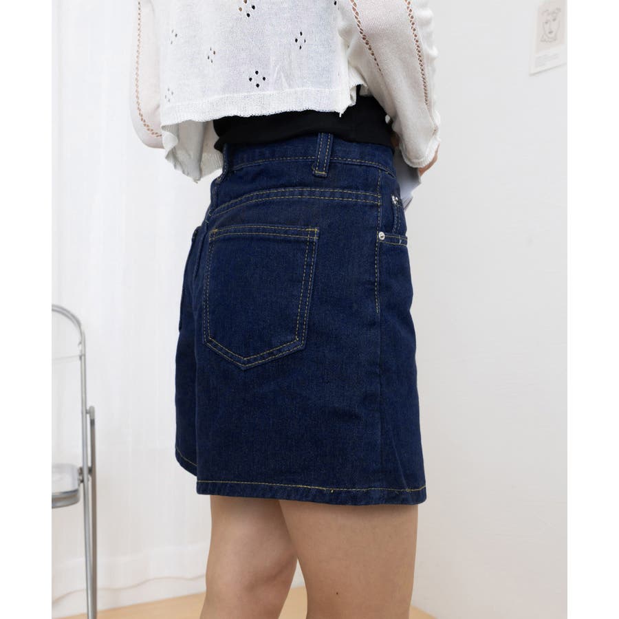 スカートのように見えるデザインが魅力的なハイウエストデニムスカパン。