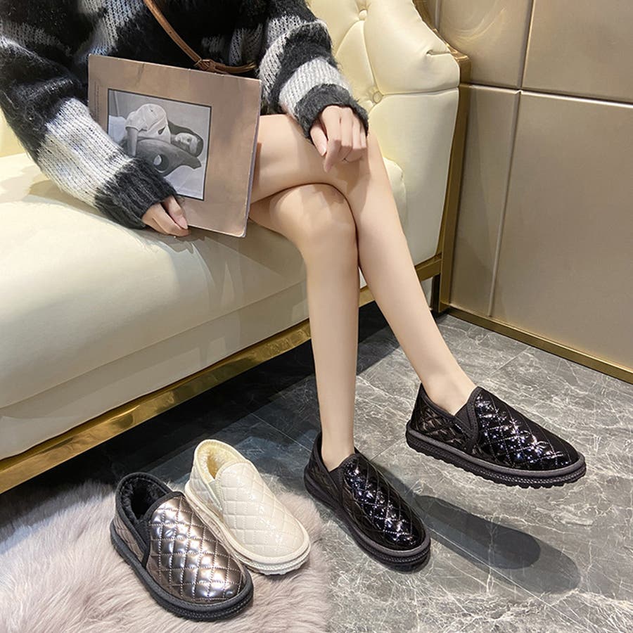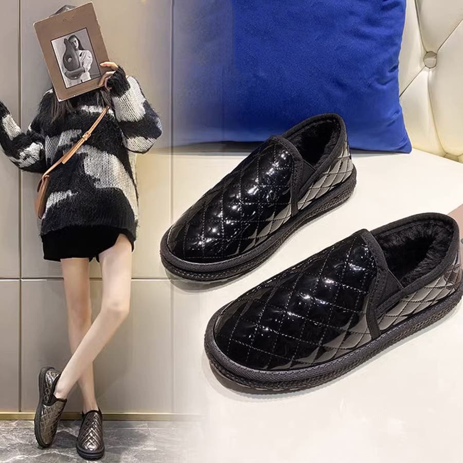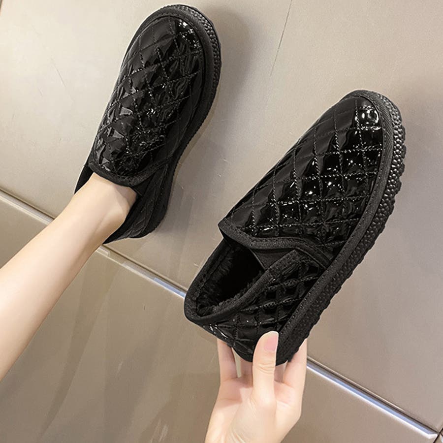 楽チン 冬靴 軽量 ファーパンプス人気 ムートンモカシン黒