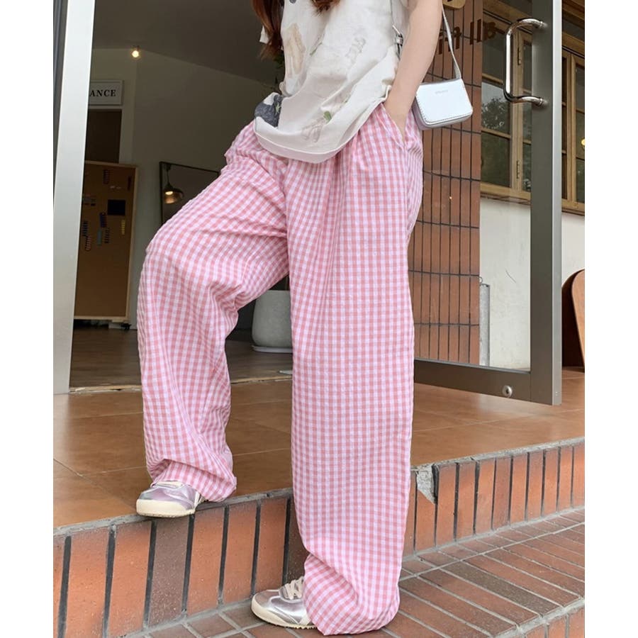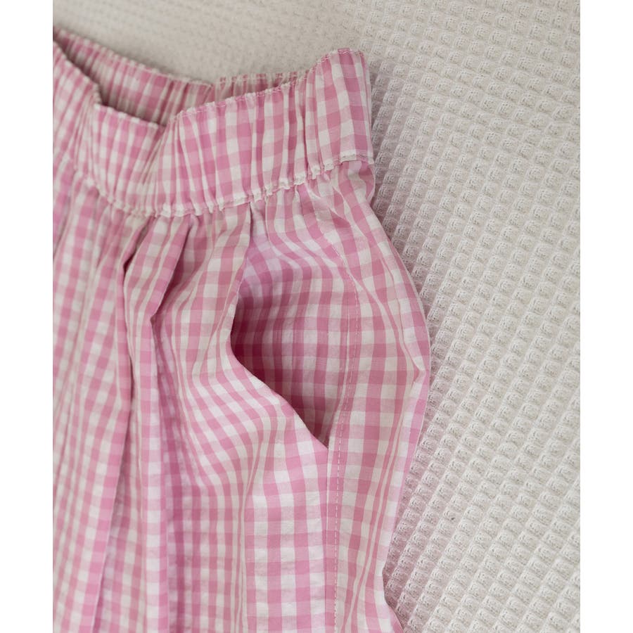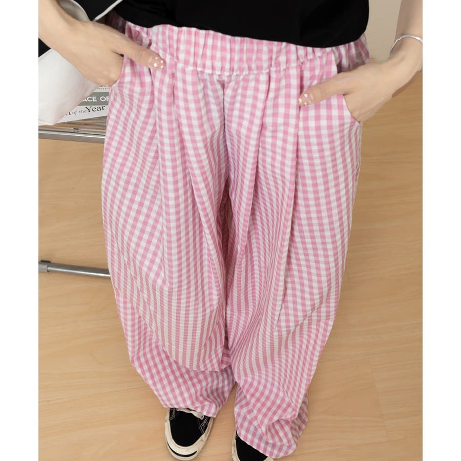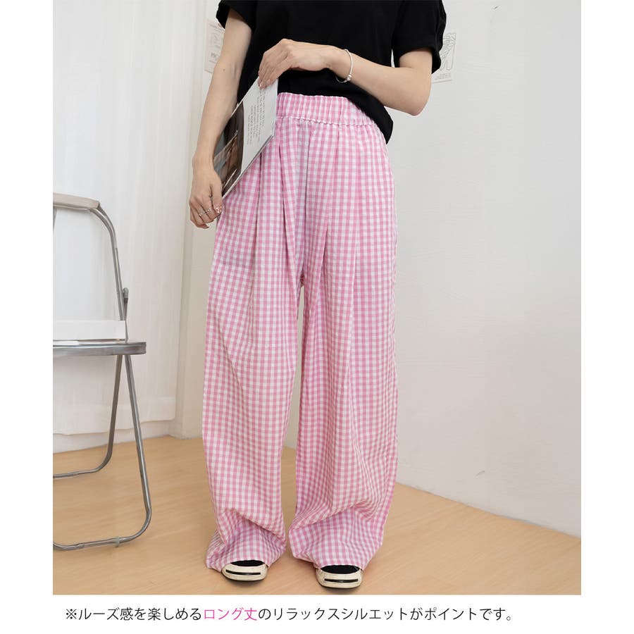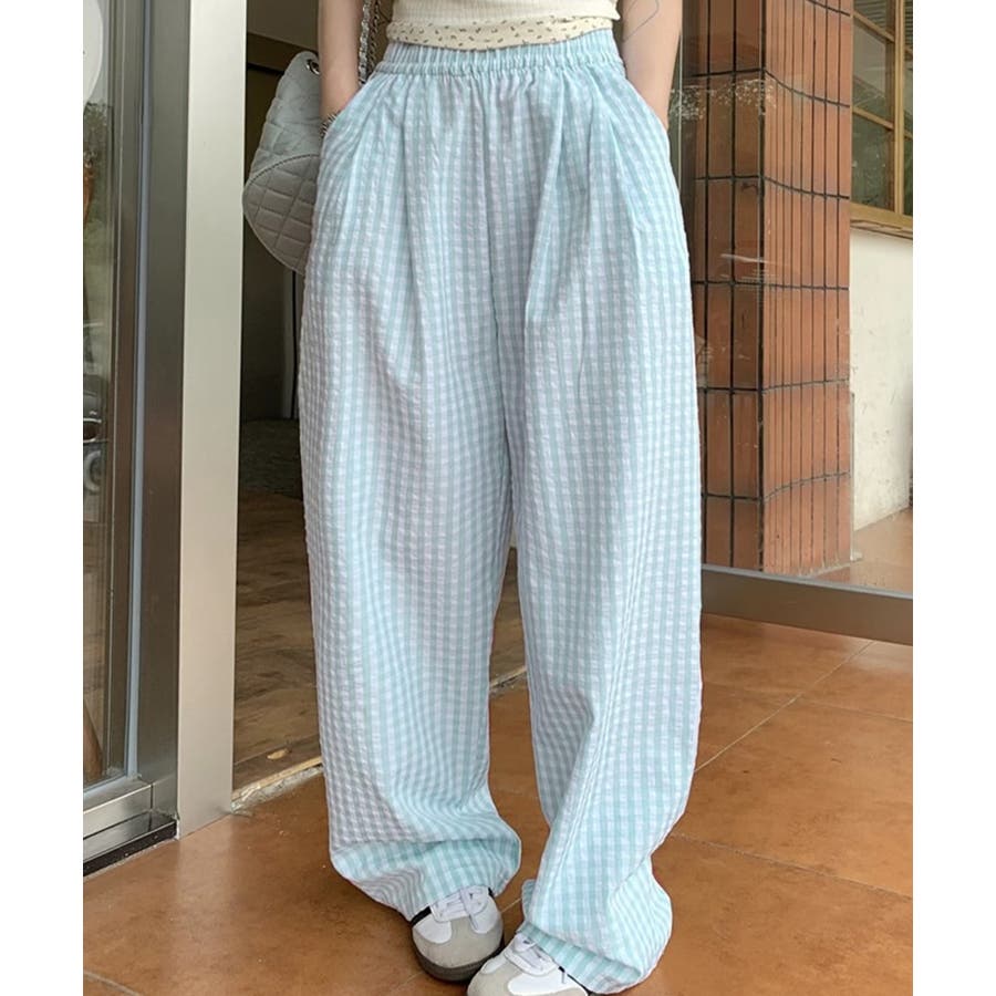かわいらしいギンガムチェック柄の配色が春夏モードを盛り上げるワイドパンツ。