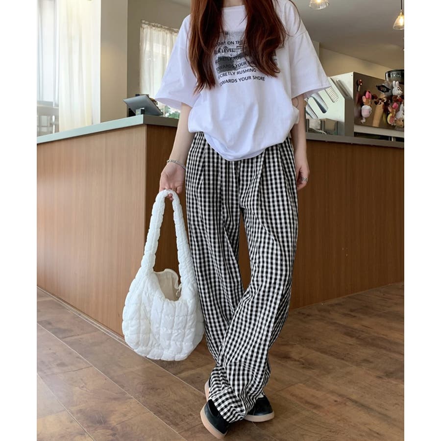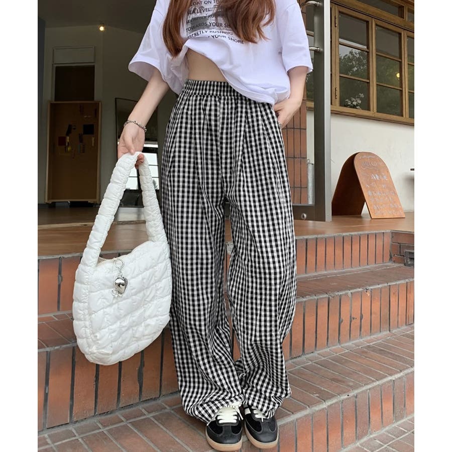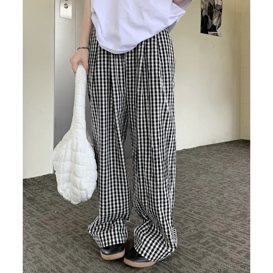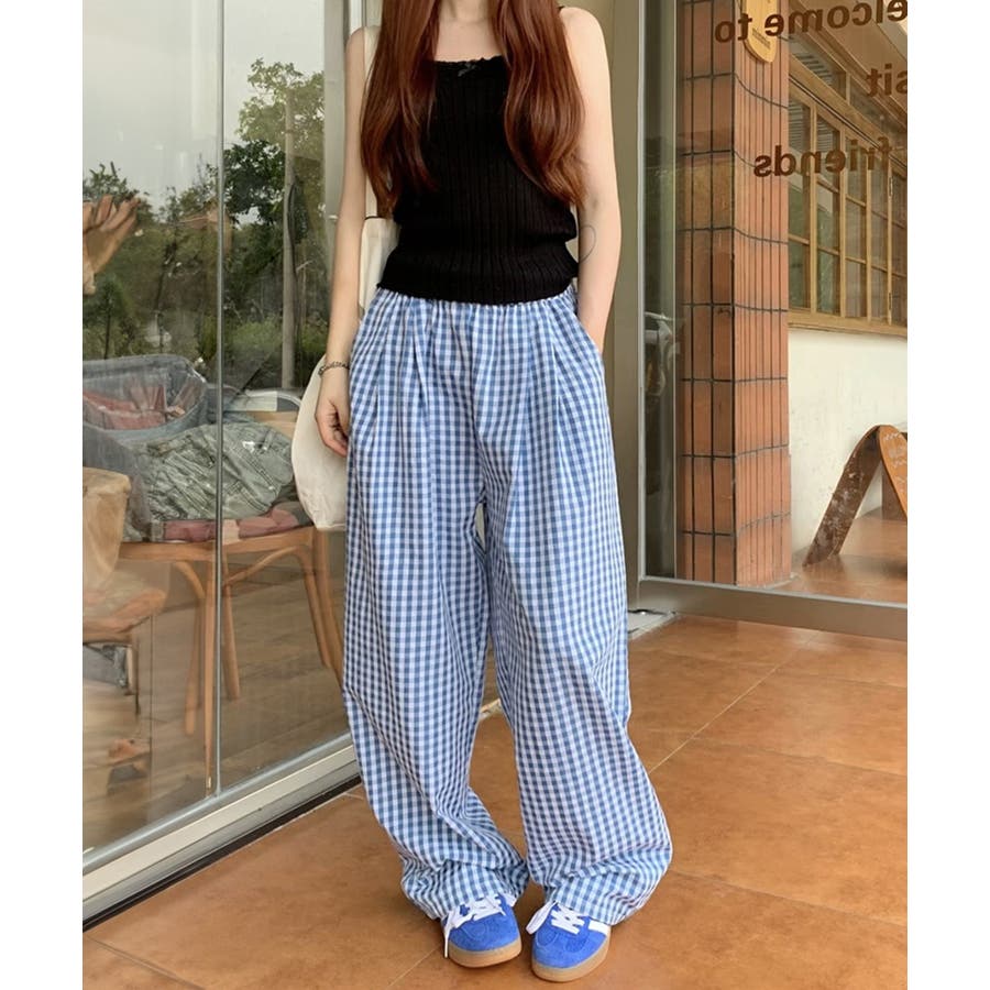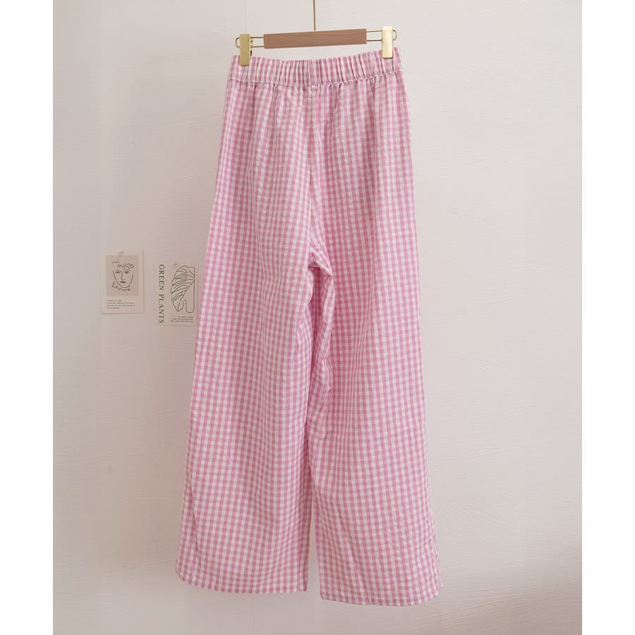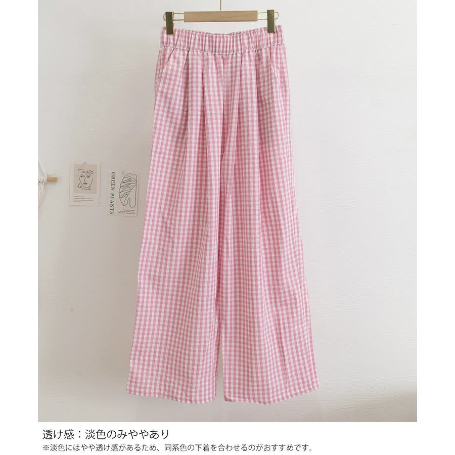 かわいらしいギンガムチェック柄の配色が春夏モードを盛り上げるワイドパンツ。