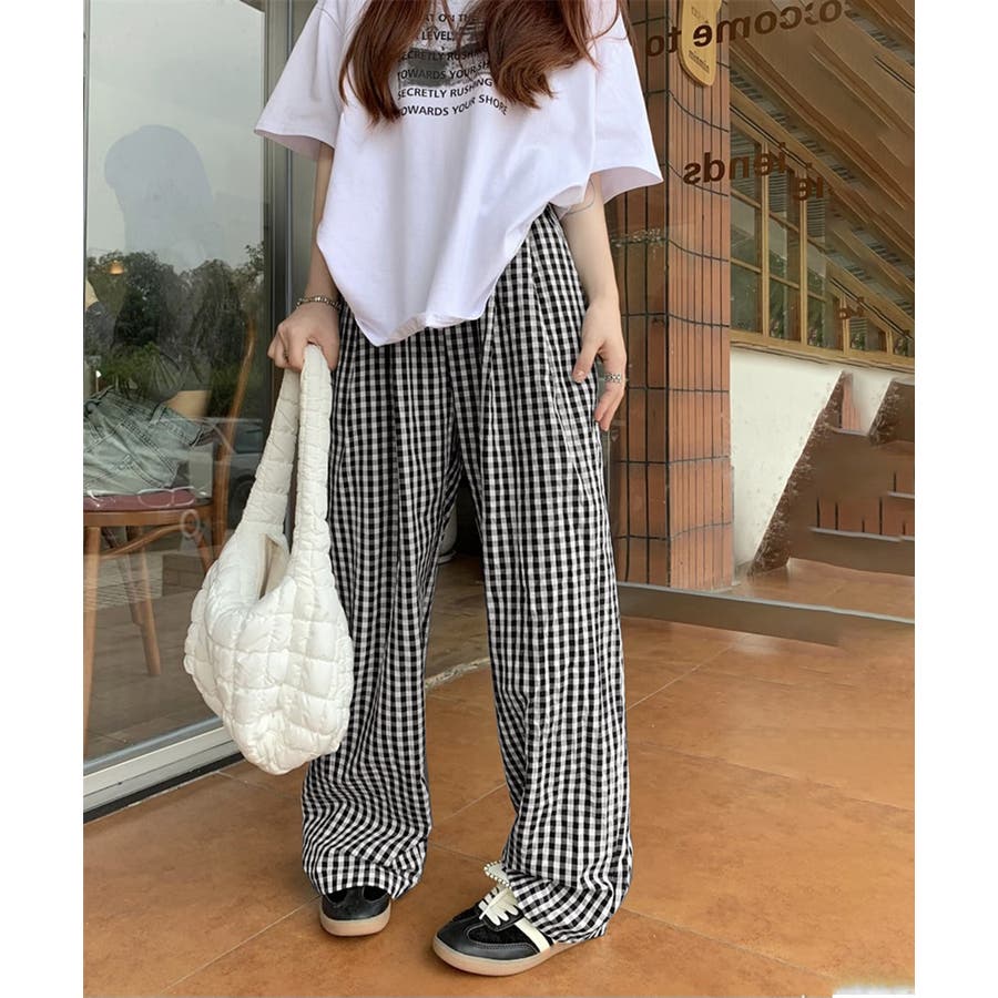 オルチャンボトムス チェックパンツ春夏 楽ちんルームウェア