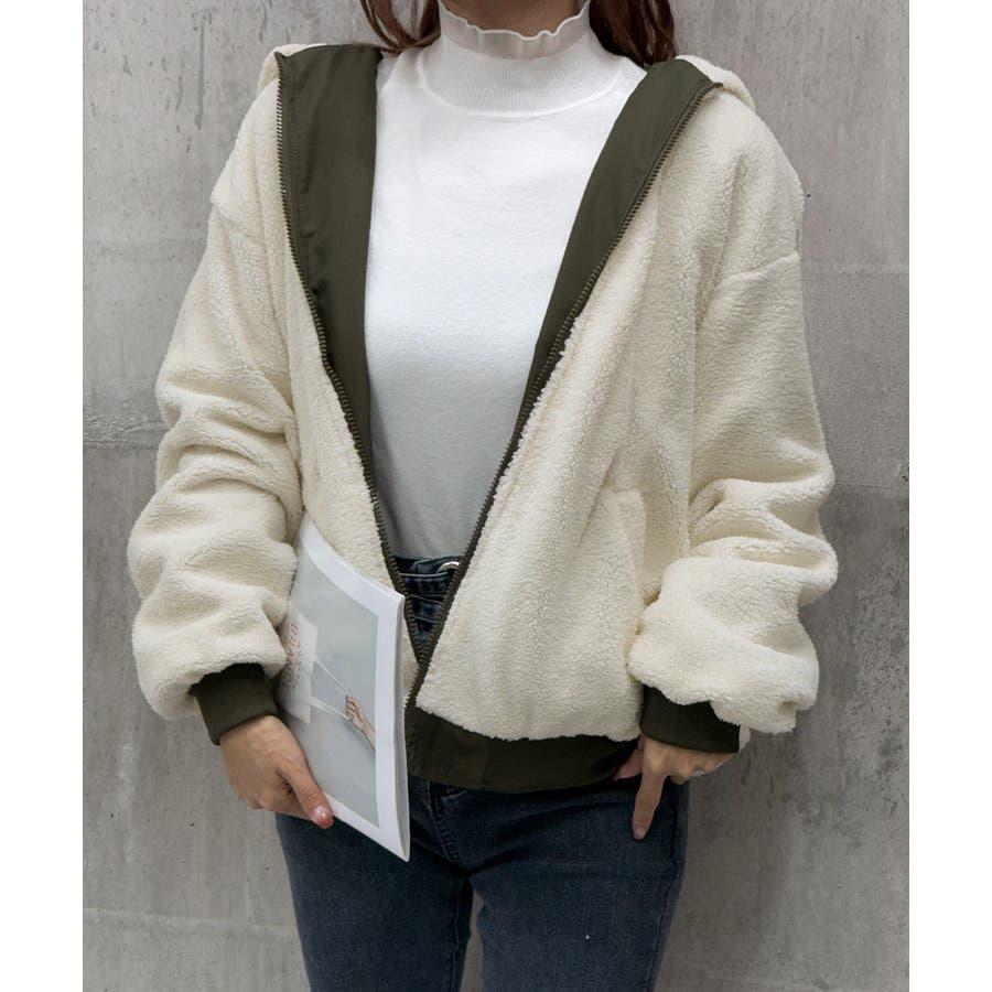 2WAYアウター冬 両面着用可能 厚手 裏起毛 ボアコート