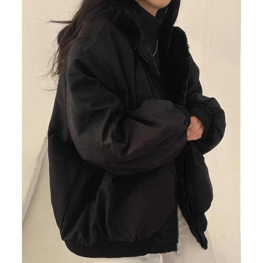 【ブラック】リバーシブルボアパーカージャケット韓国風