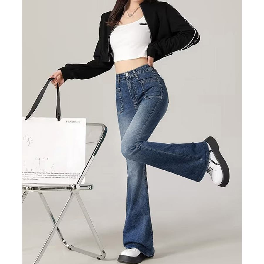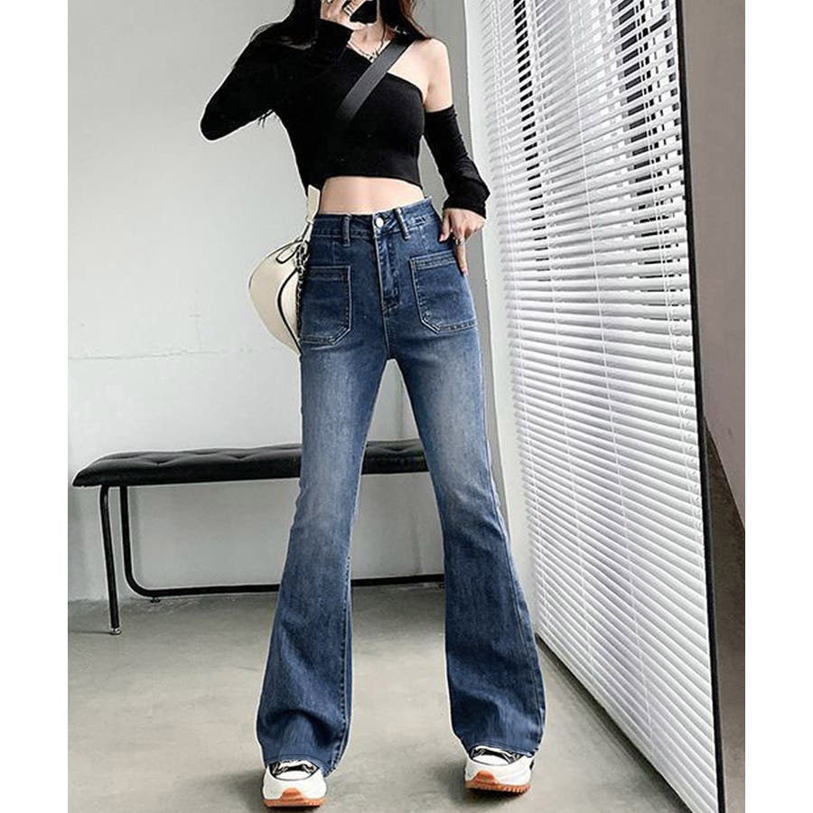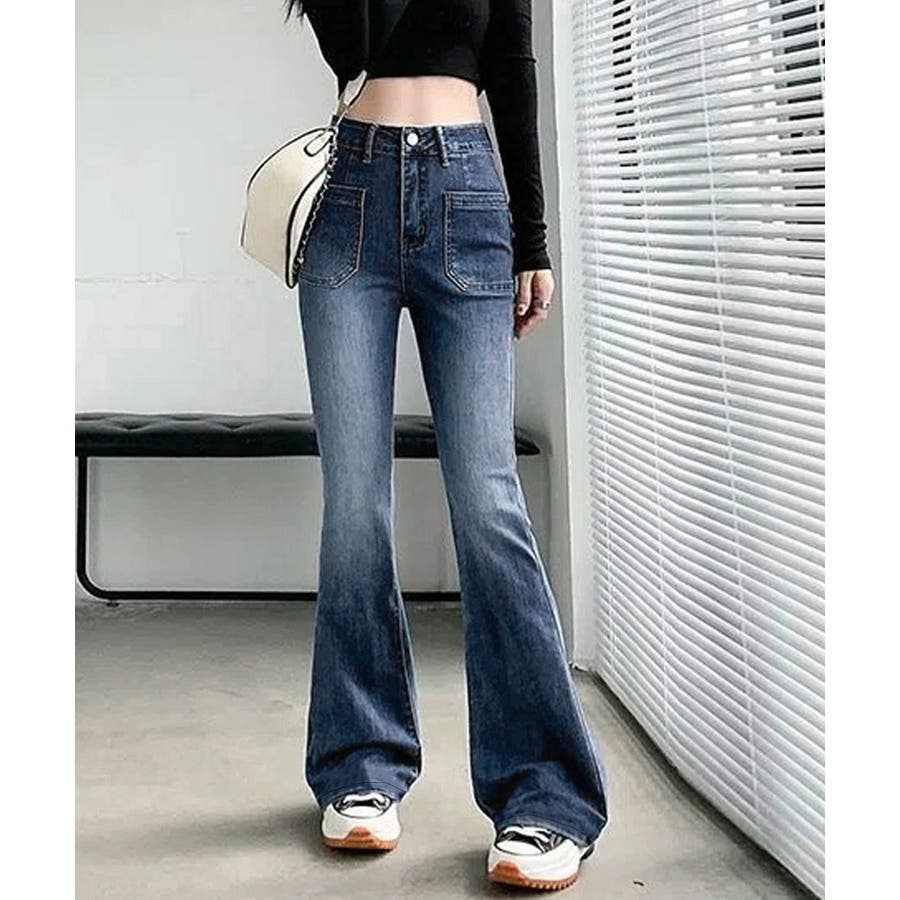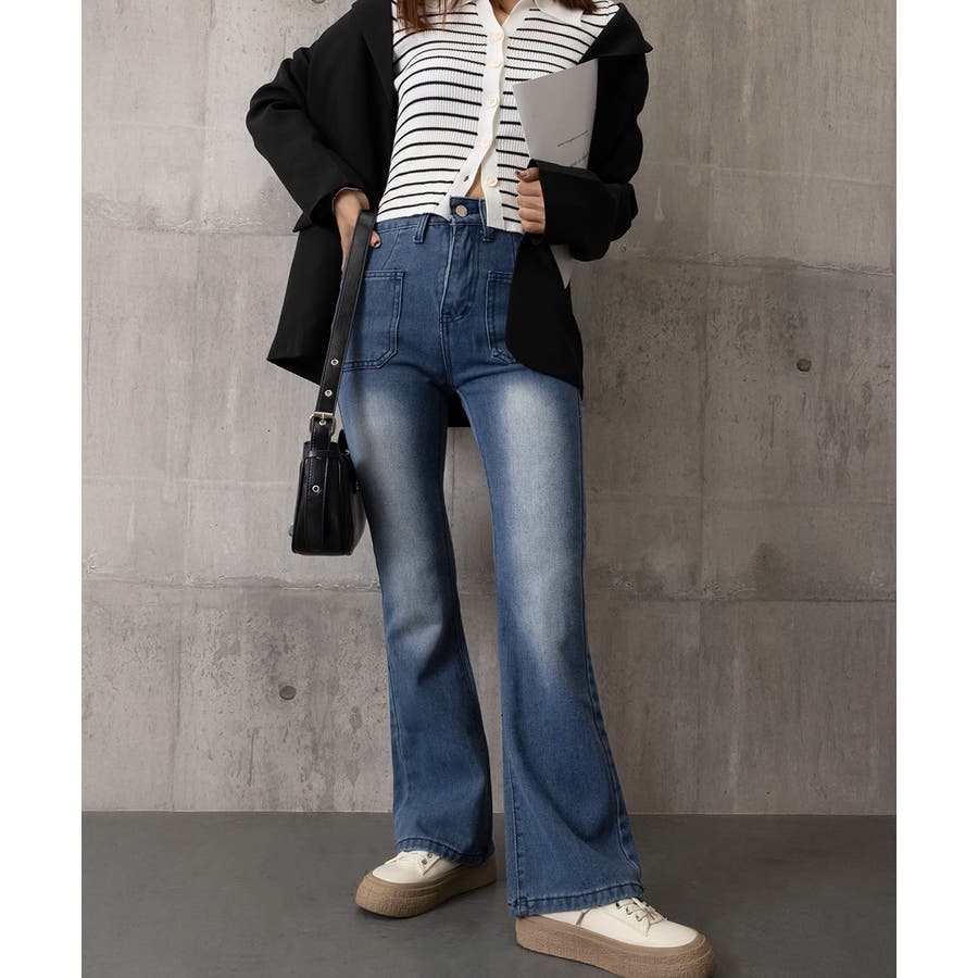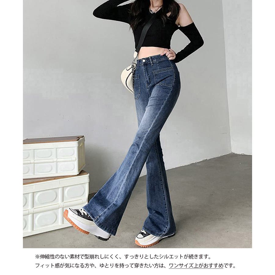 韓国風セミフレアデニムパンツ レディース