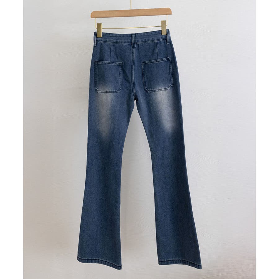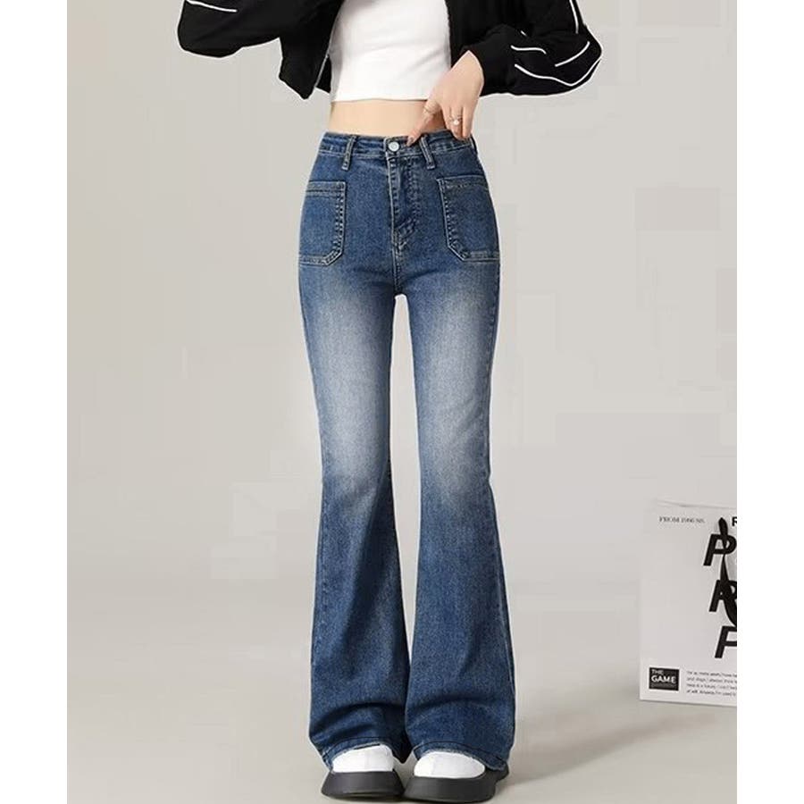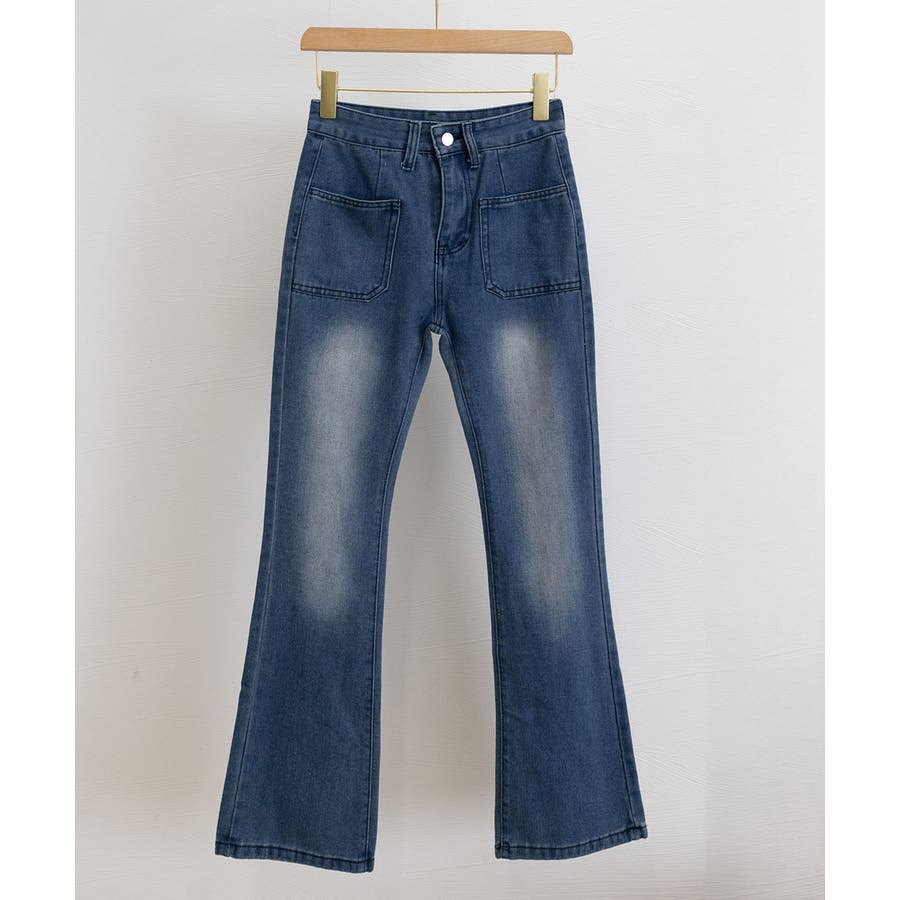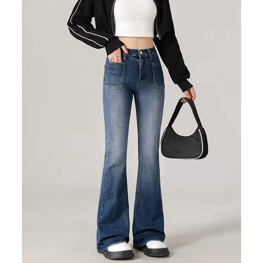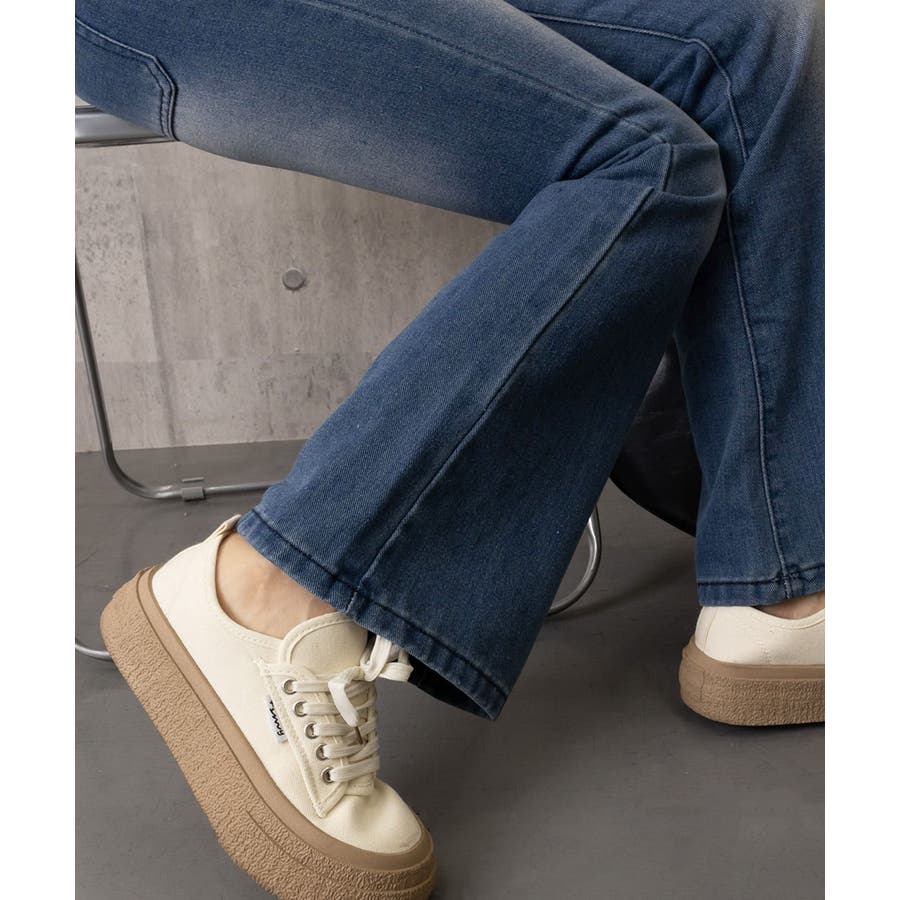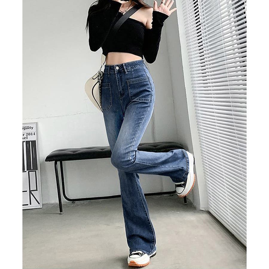 韓国風セミフレアデニムパンツ レディース