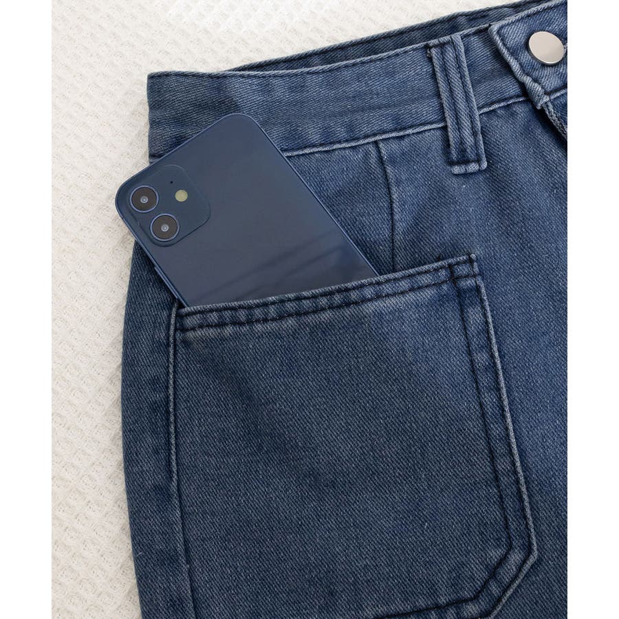 大きめのポケット付きで、視線が上に集まりスタイルアップになり、小物の収納にも便利。