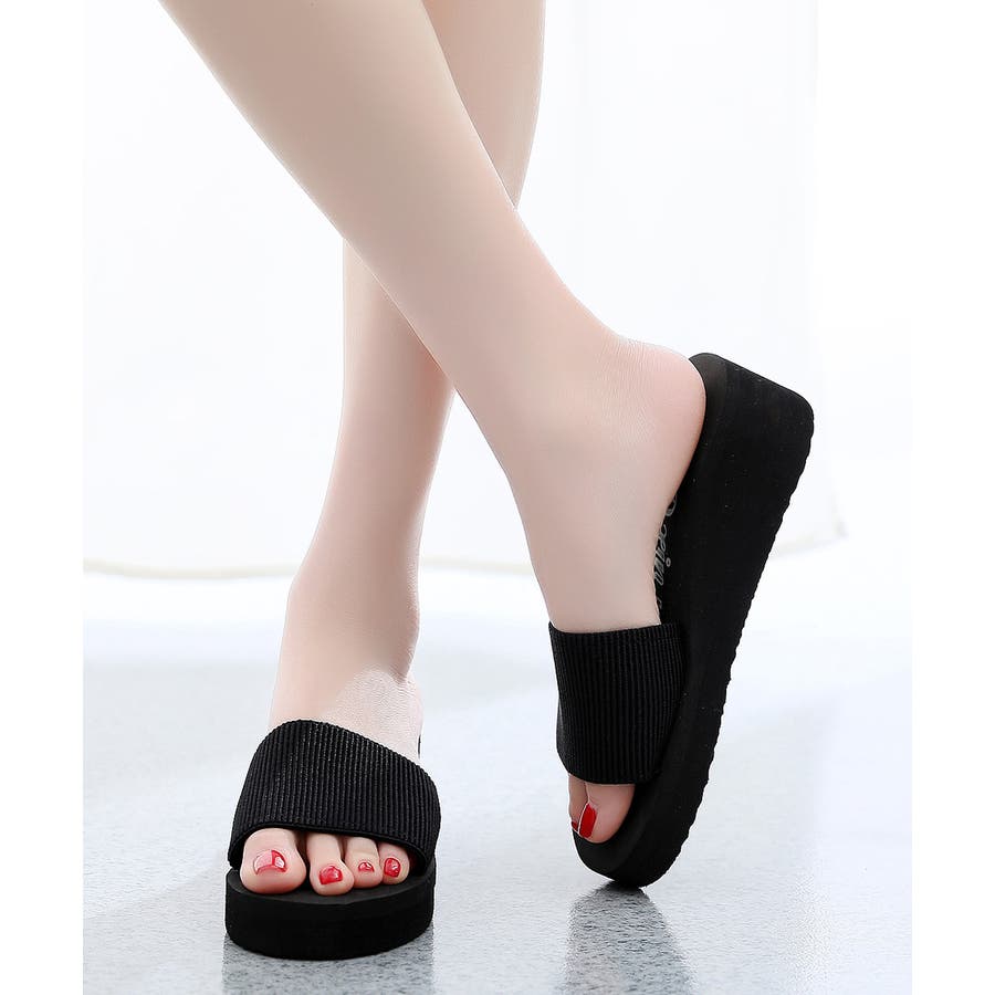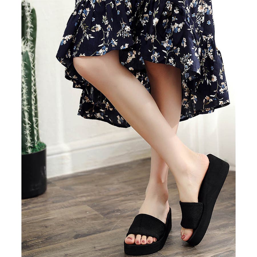 厚底で脚長効果があり、カジュアルスタイルにぴったり合うウェッジソールサンダル
