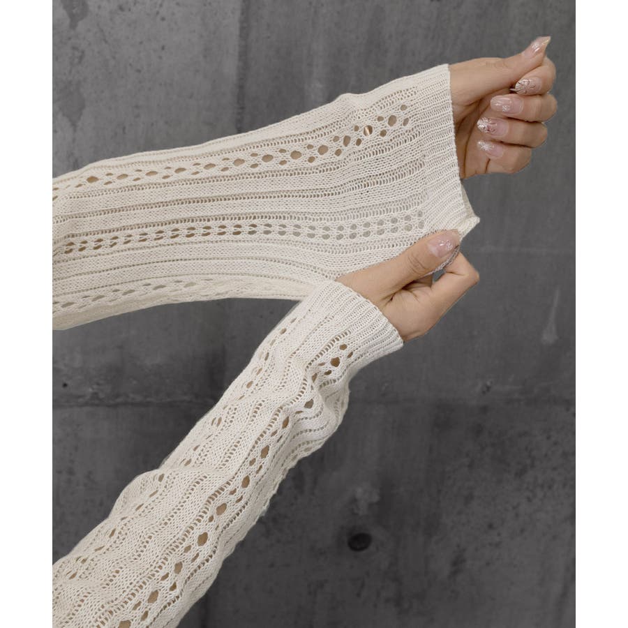 透かし編みの繊細なデザインが軽やかさを演出。