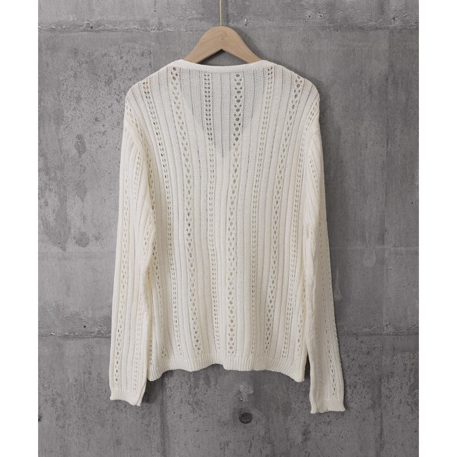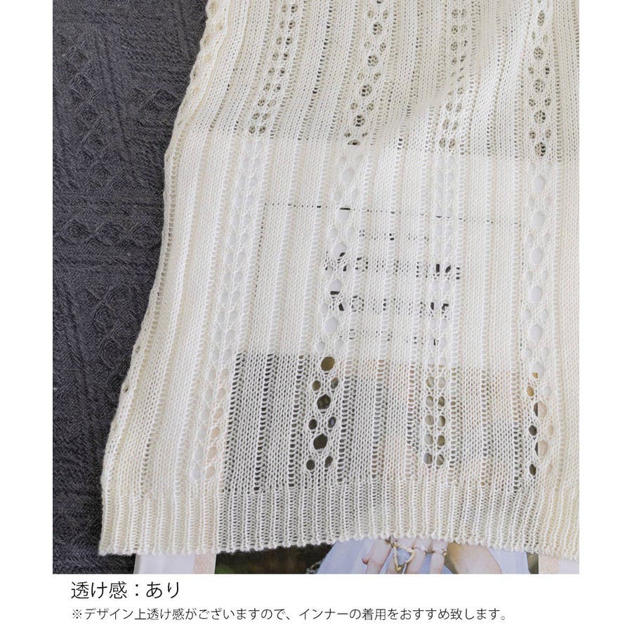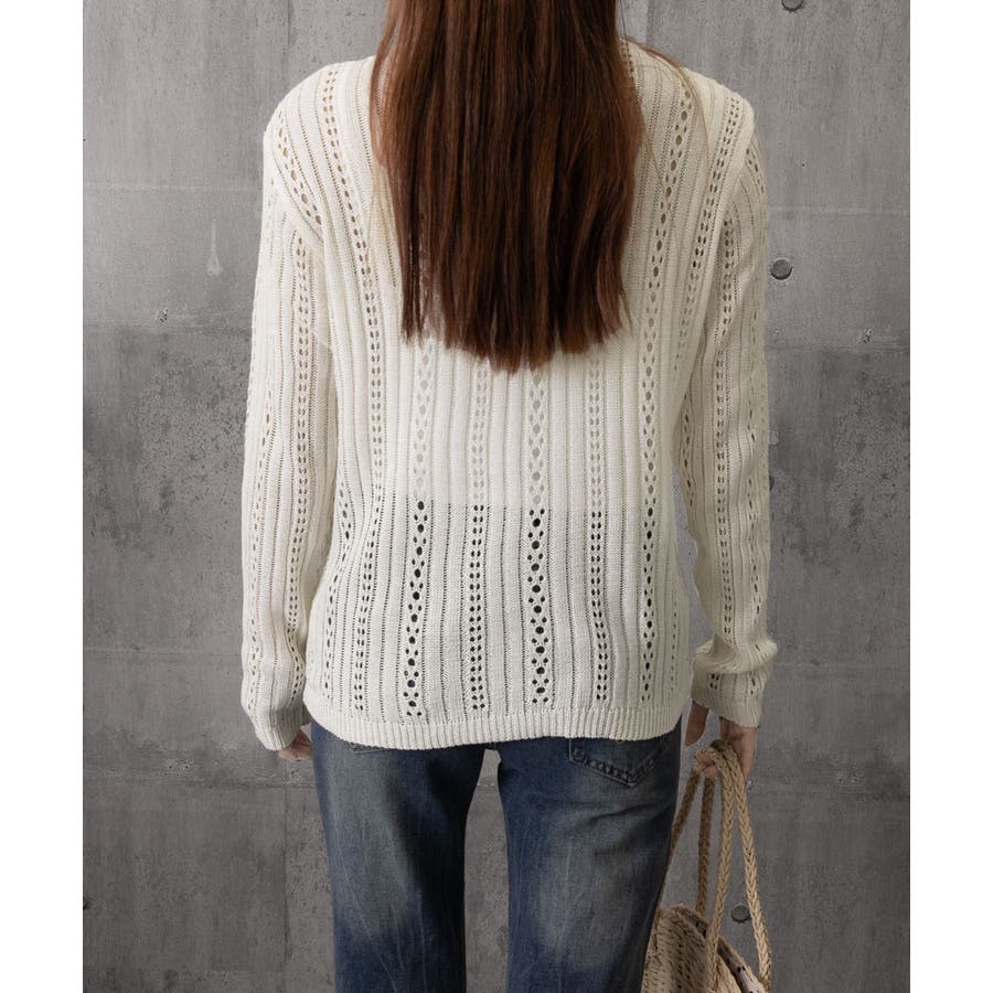 縦ラインのレース編み模様が美しい、シアーニットカーディガン。