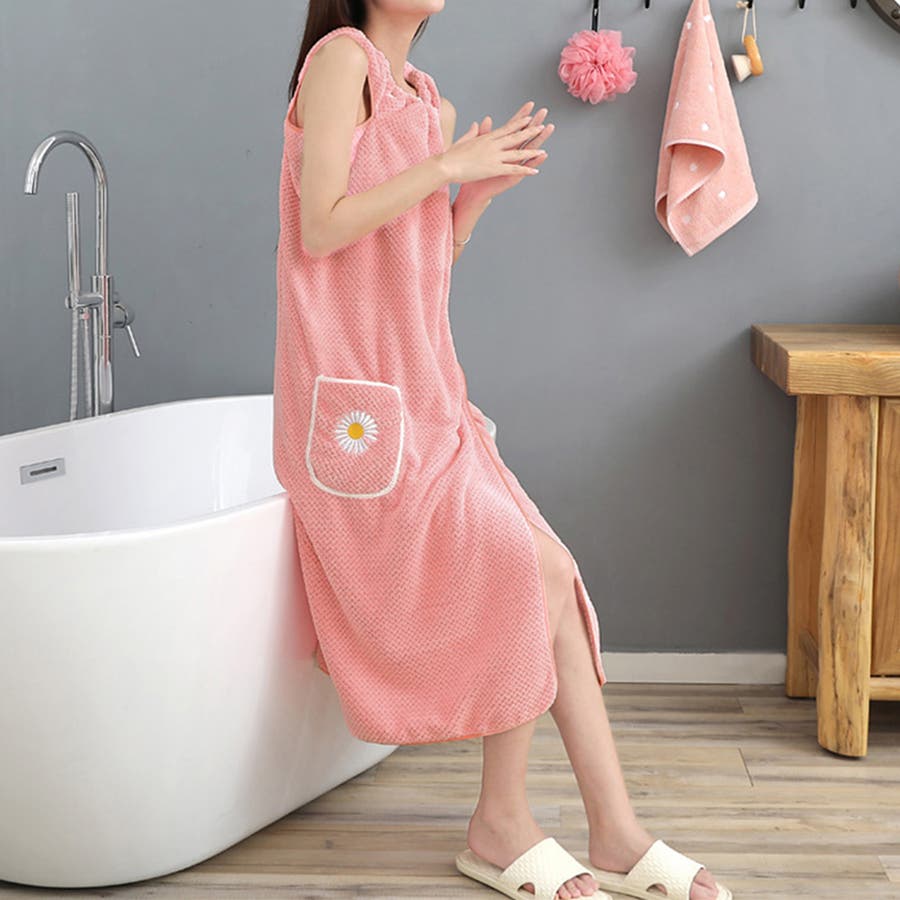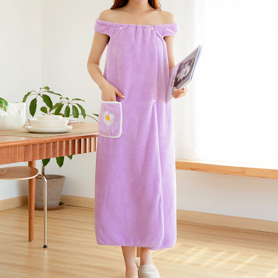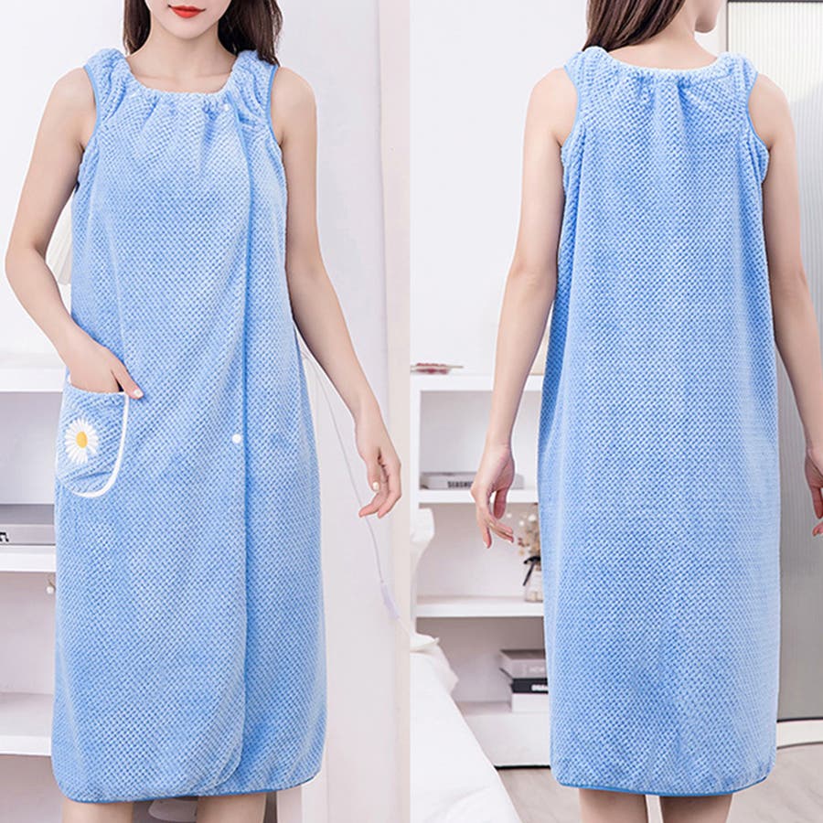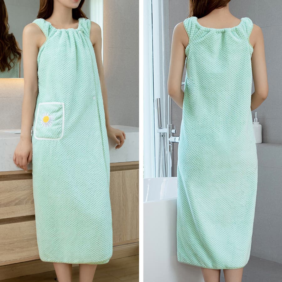 汗や水分をさっと吸収してくれるので、お風呂あがりのリラックスタイムにさらりと着れて快適なラップタオル