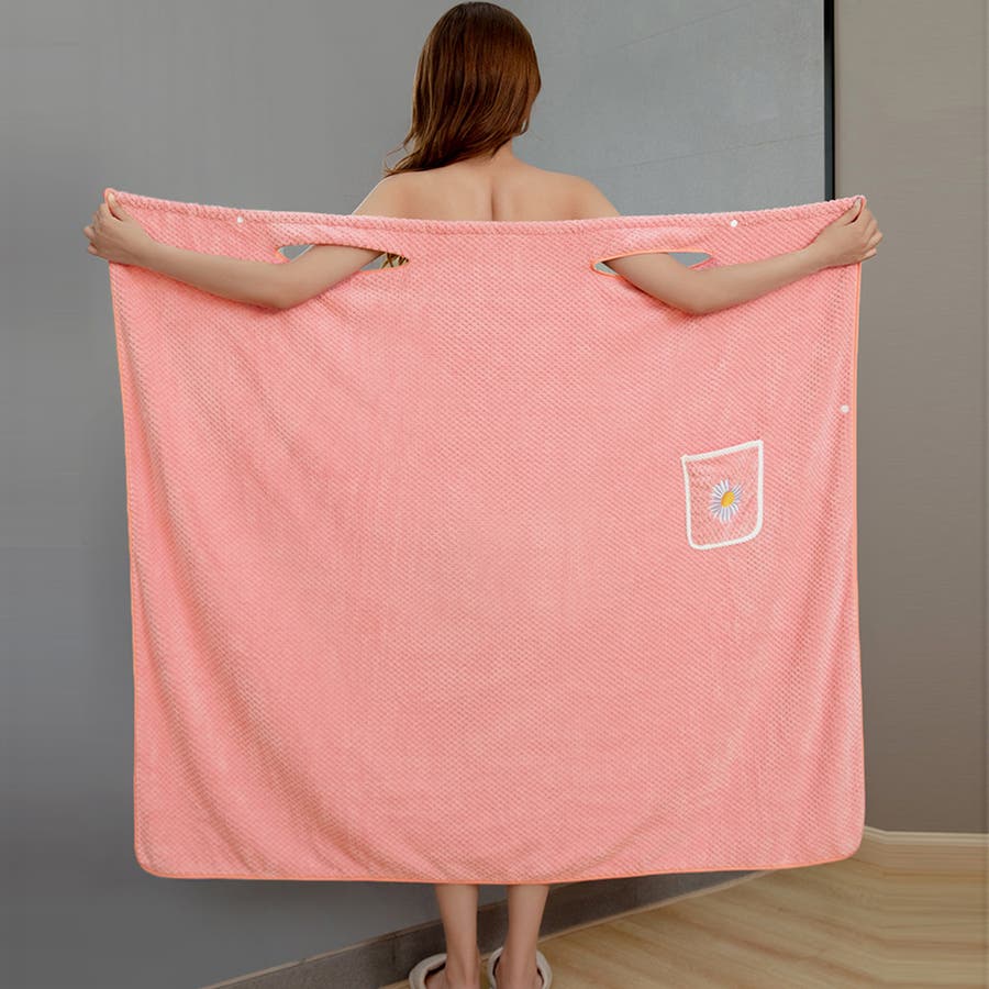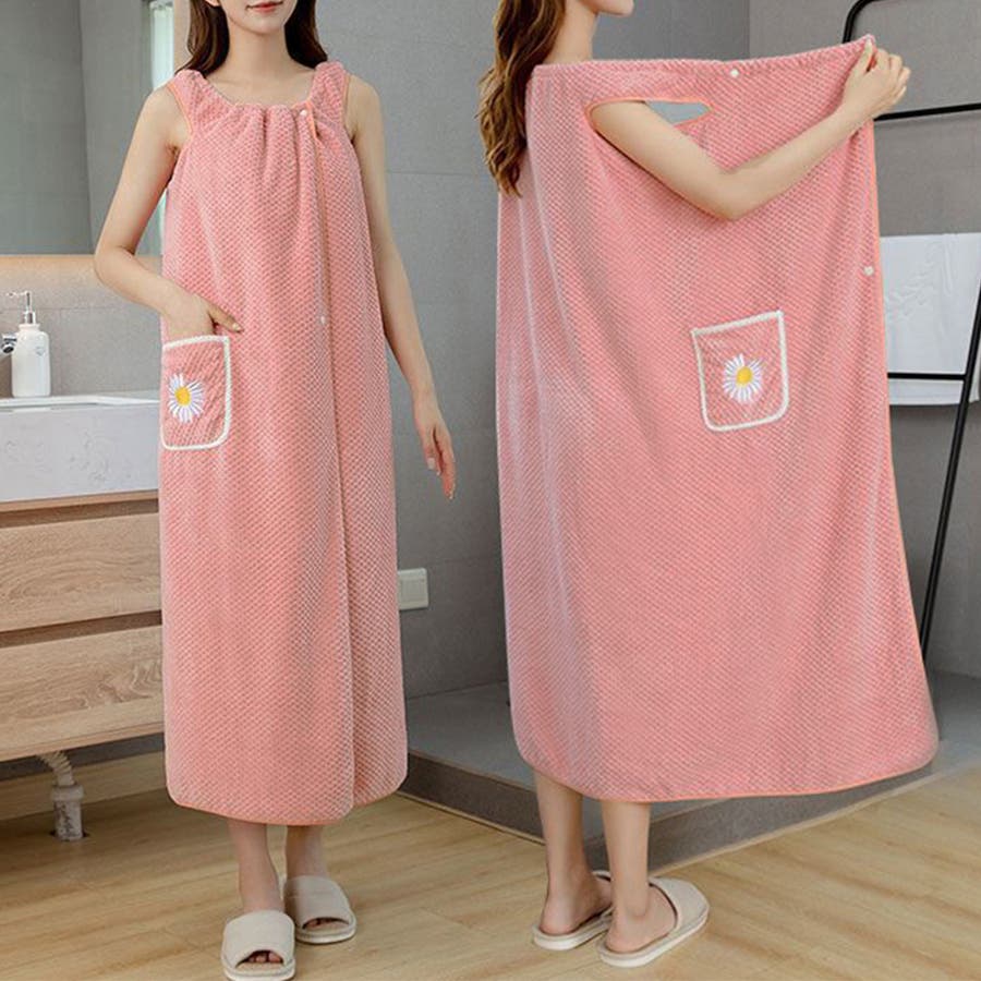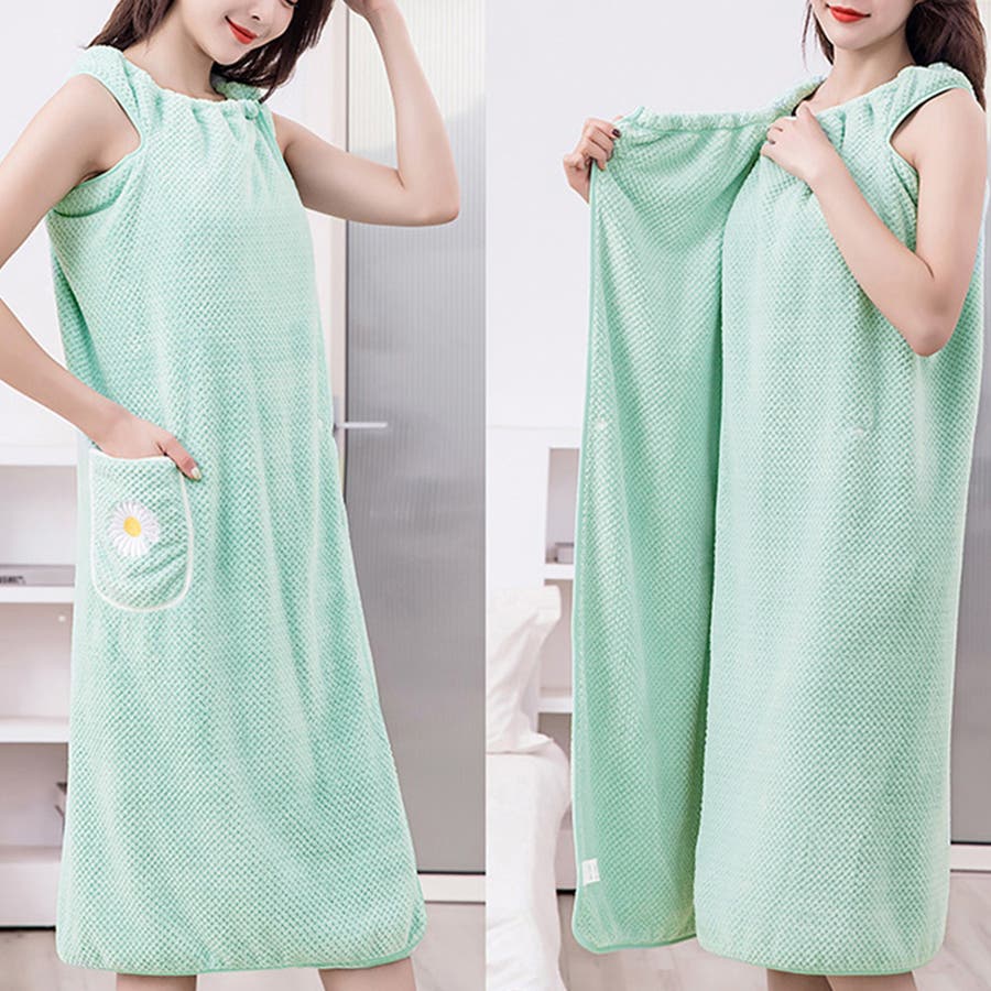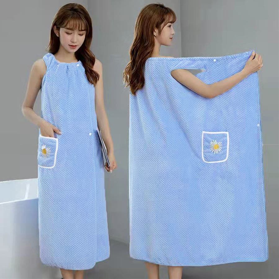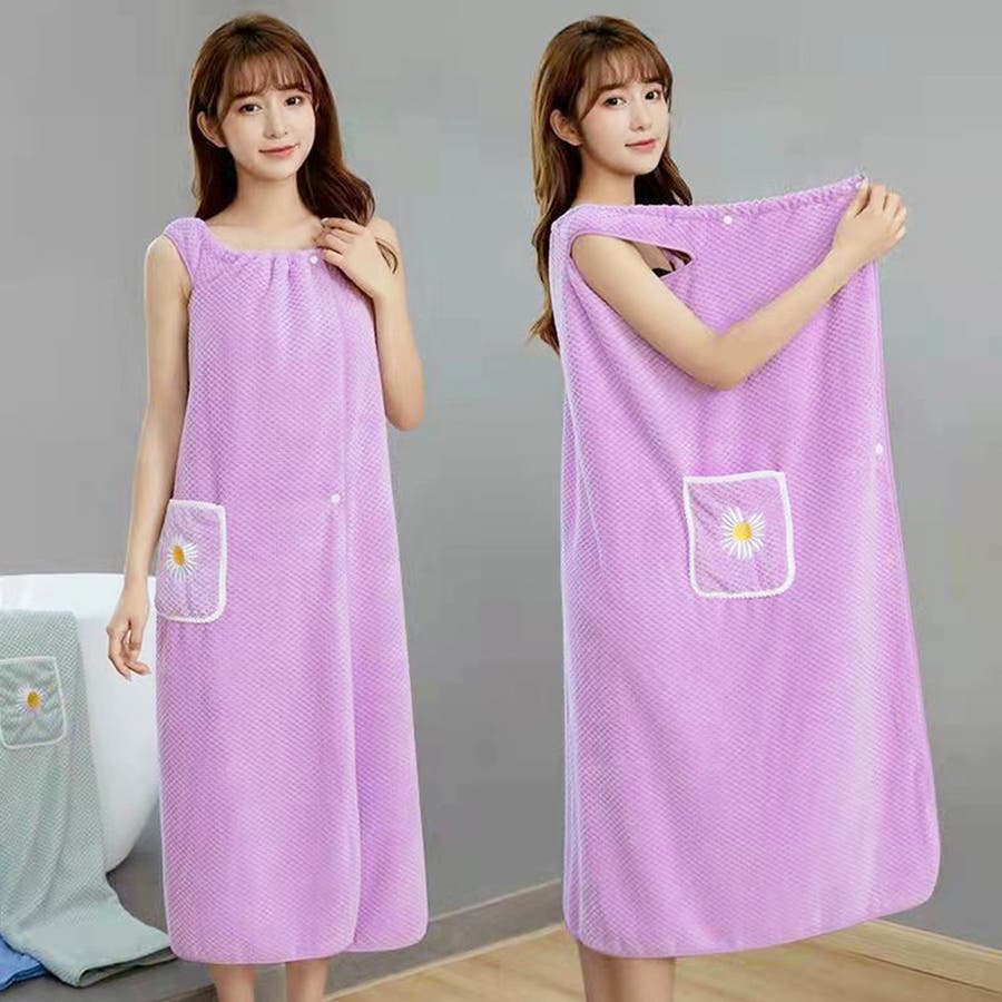 汗や水分をさっと吸収してくれるので、お風呂あがりのリラックスタイムにさらりと着れて快適なラップタオル