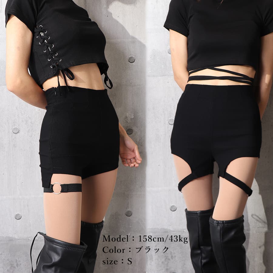 [L]着丈:約33cm 股下:約5cm ウエスト:約57-80cm ヒップ:約72cm もも周り:約42cm