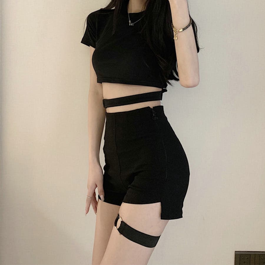 伸縮性のあるストレッチ素材がボディラインにフィットするスキニー短パンツです