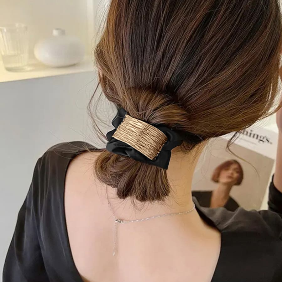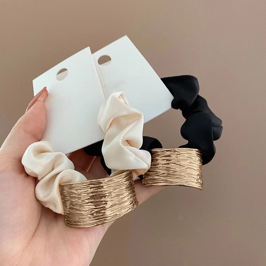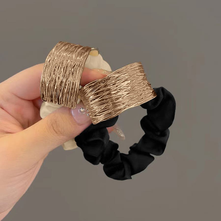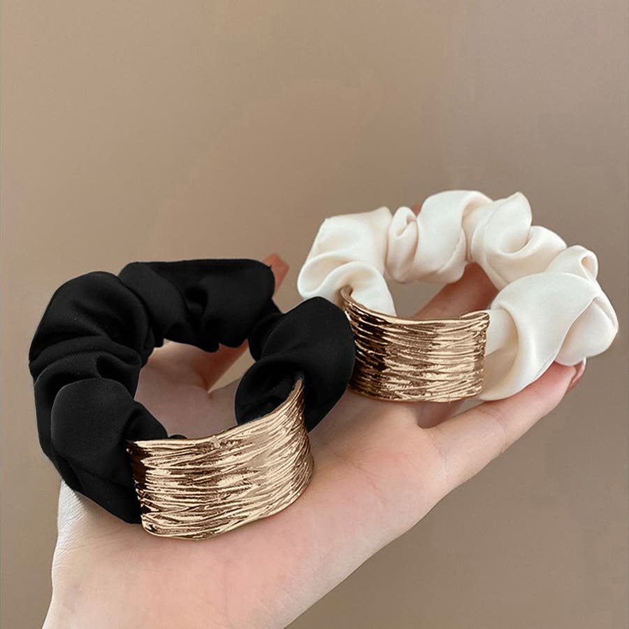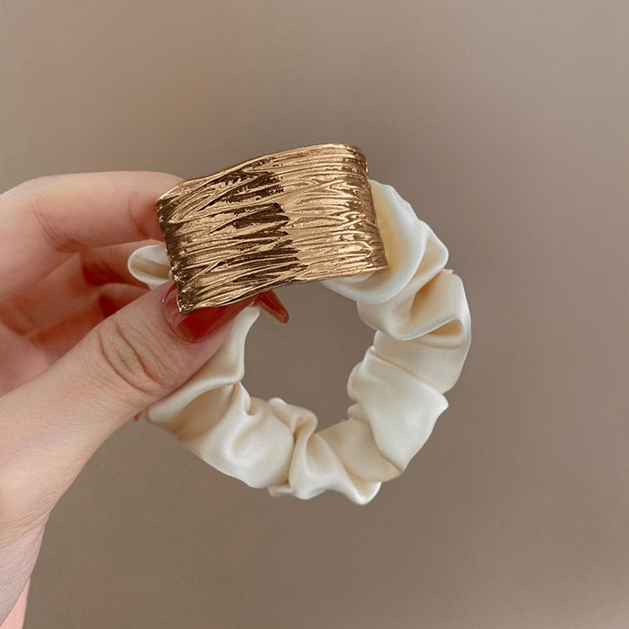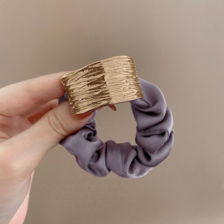 シンプルながらもきちんと感や上品な雰囲気を演出するゴールドプレート付きヘアゴム