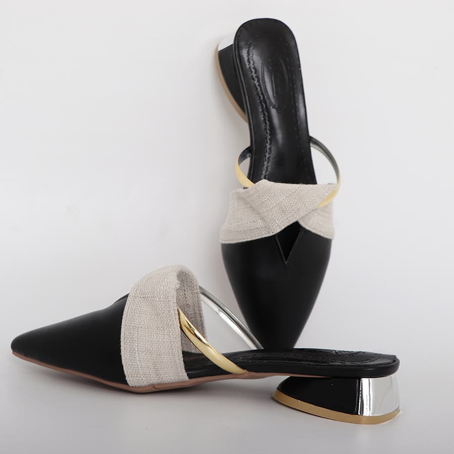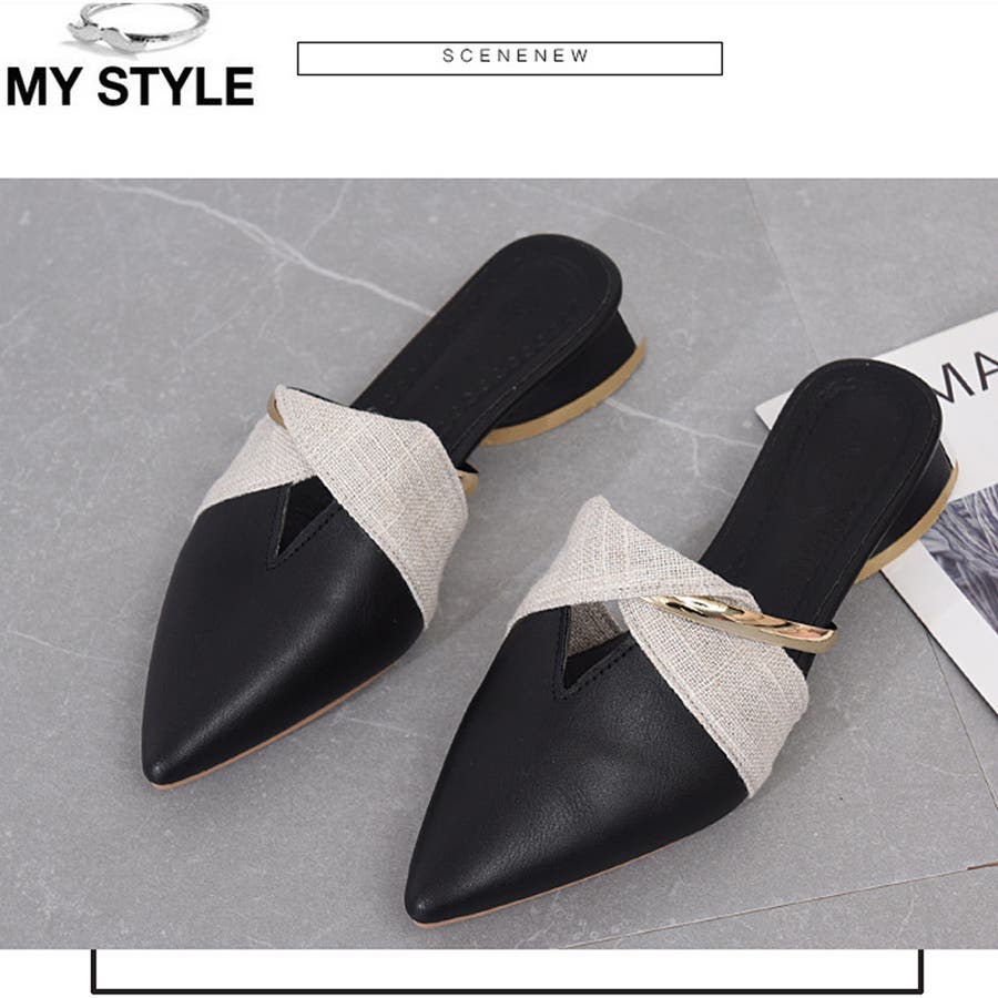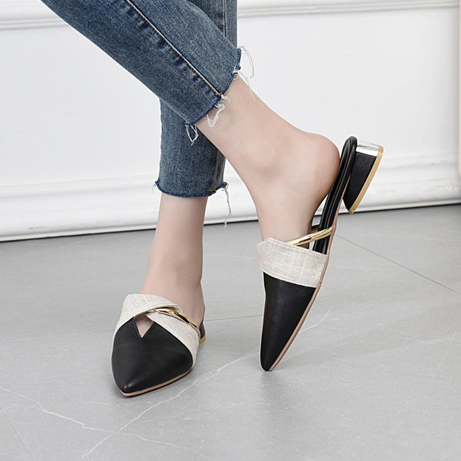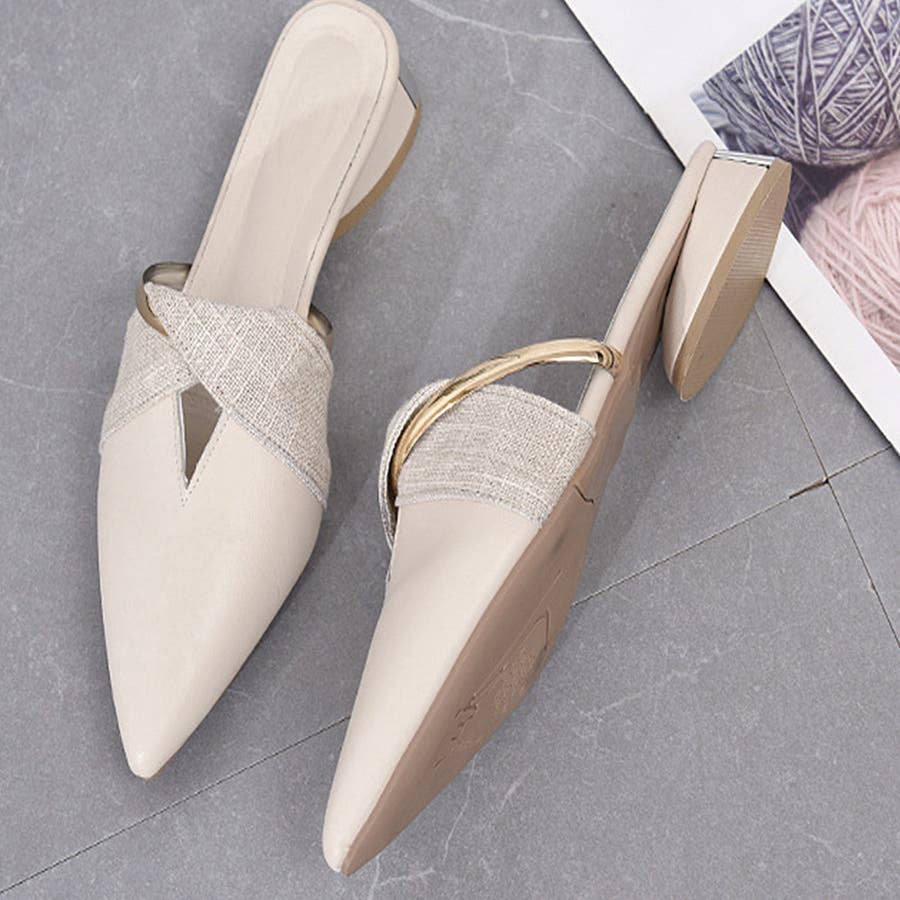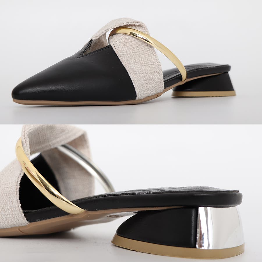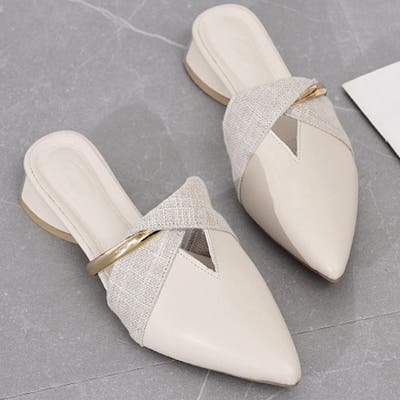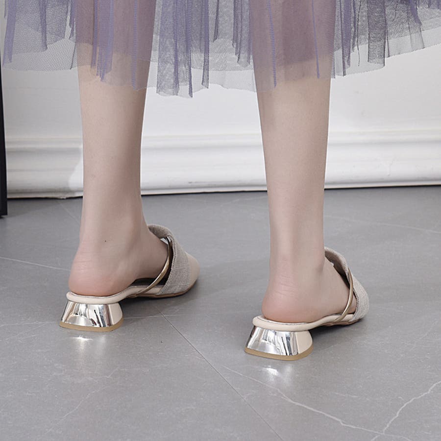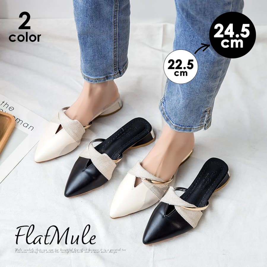 脚の甲をすっきり見せてくれるカッティングと、すっきりしたミュールデザインが女性らしい