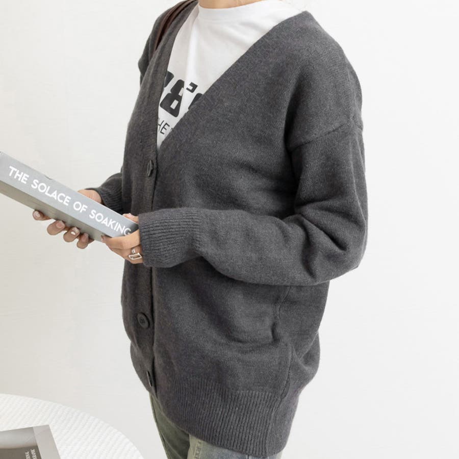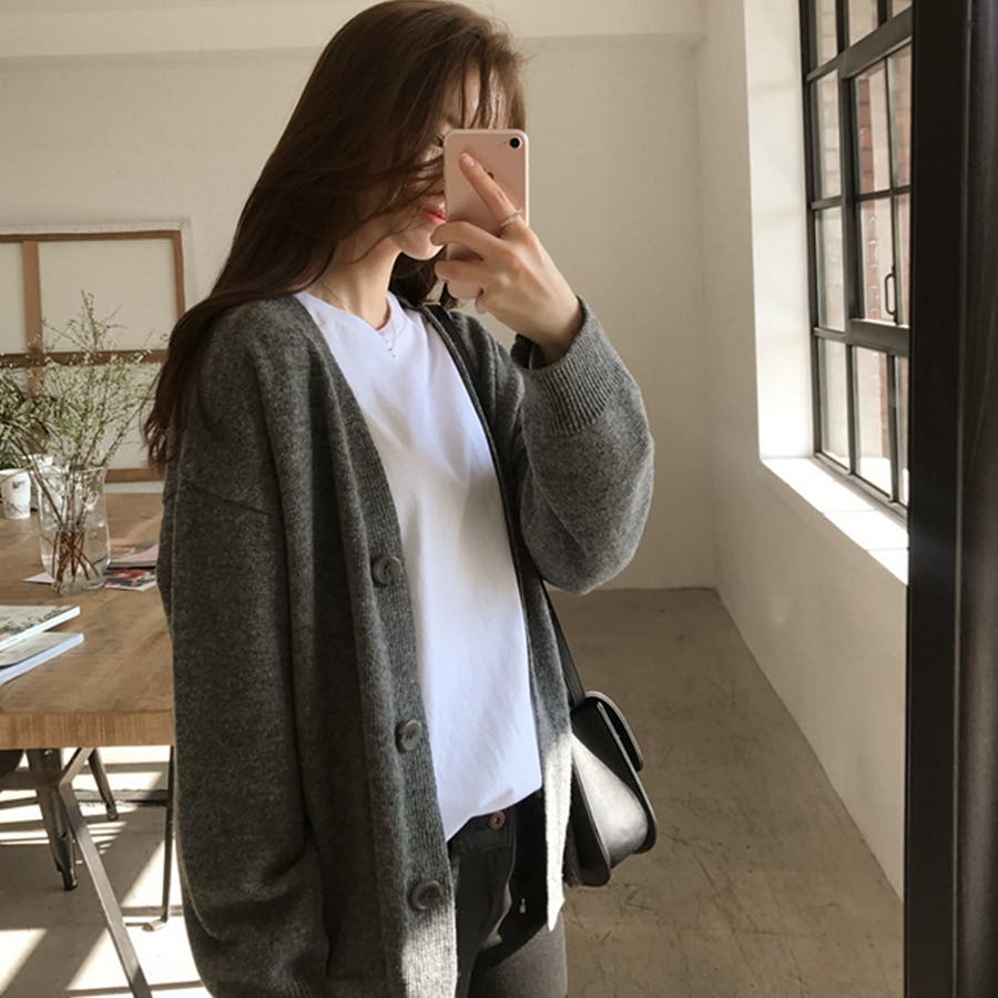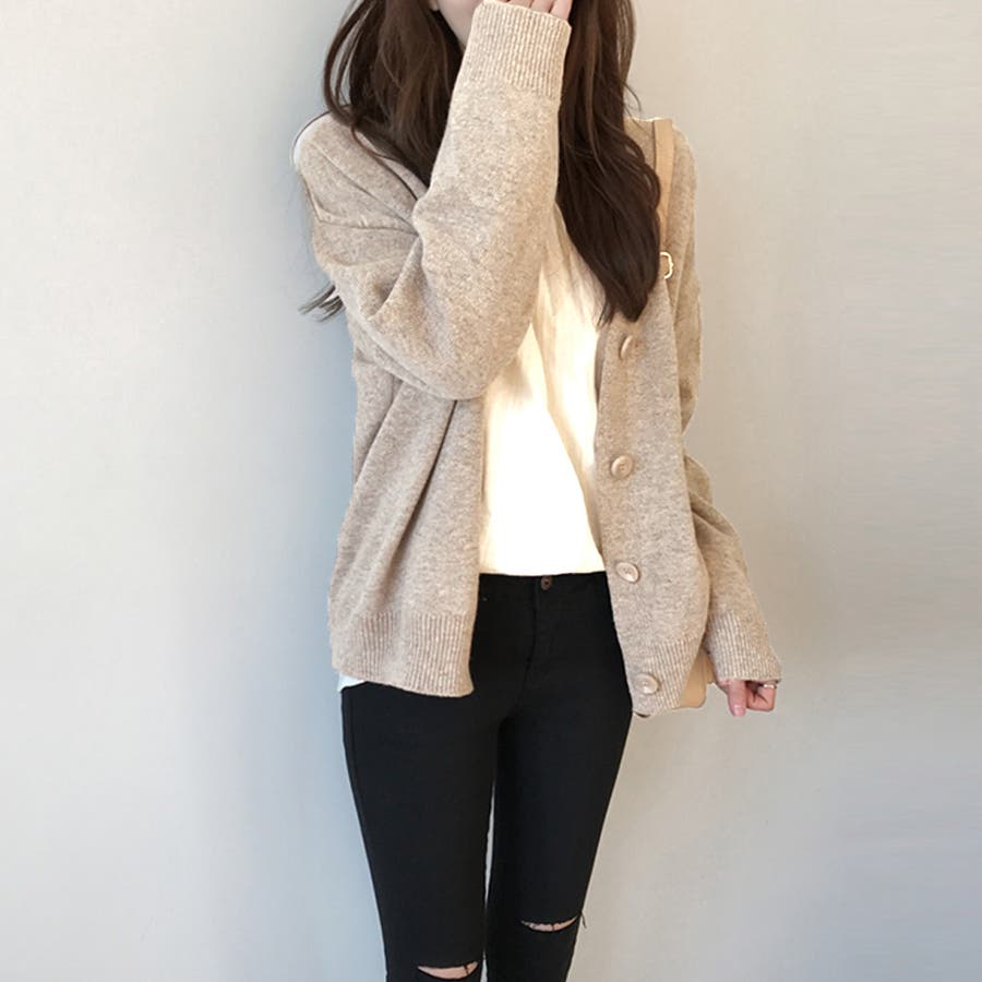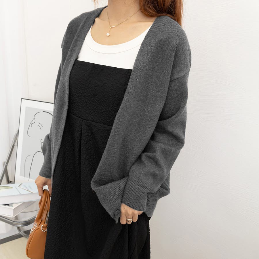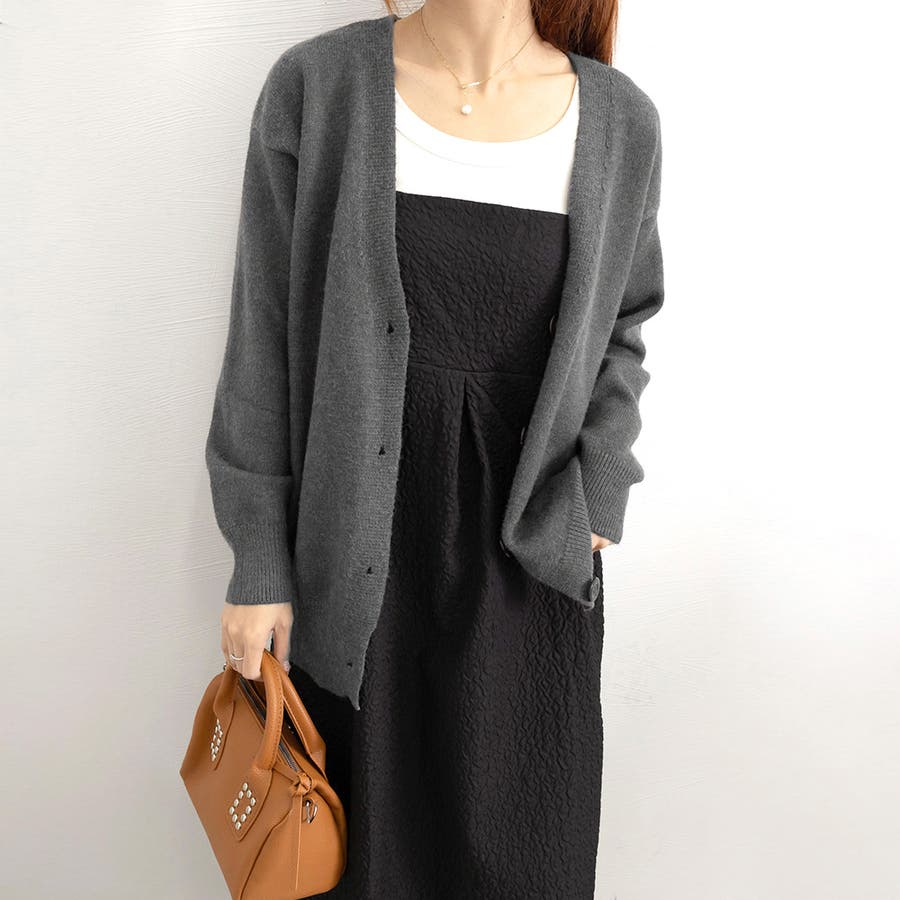 秋冬新作 韓国風ニットトップス Vネック 着やせ羽織り 大人女性秋コーデ ゆったりニットアウター無地 オフィスカジュアル