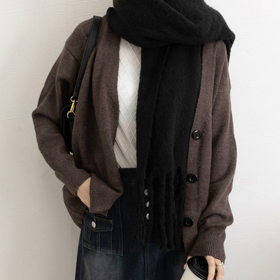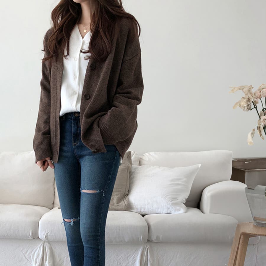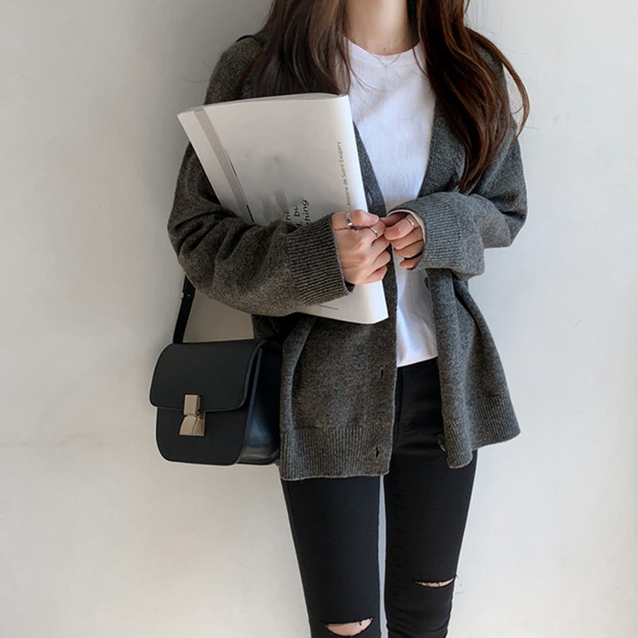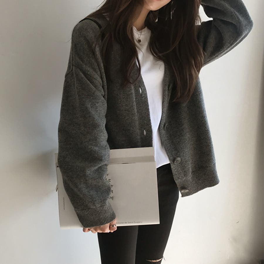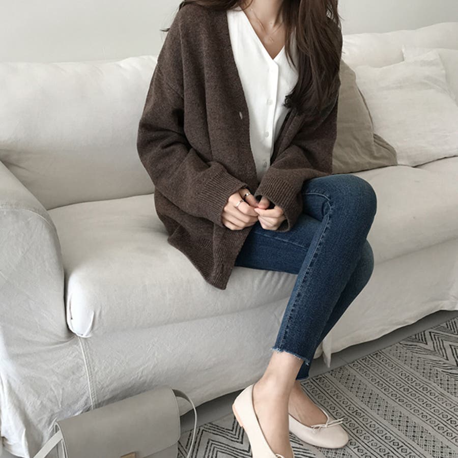 秋冬新作 韓国風ニットトップス Vネック 着やせ羽織り 大人女性秋コーデ ゆったりニットアウター無地 オフィスカジュアル