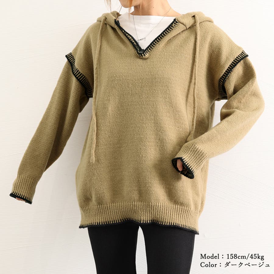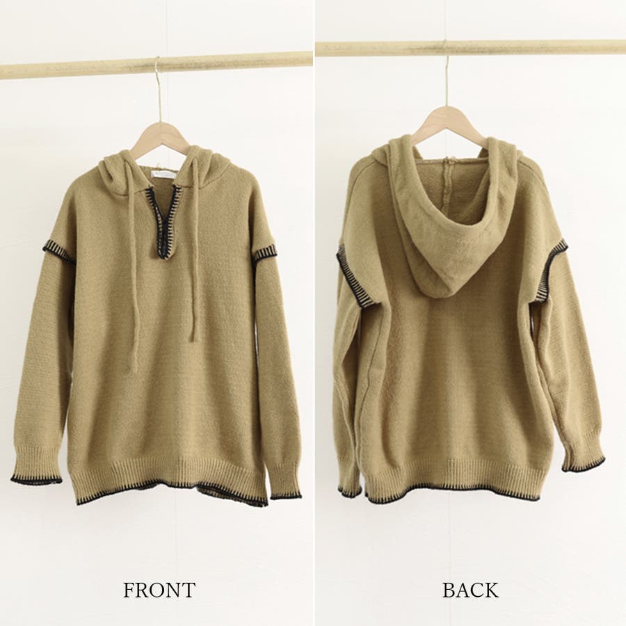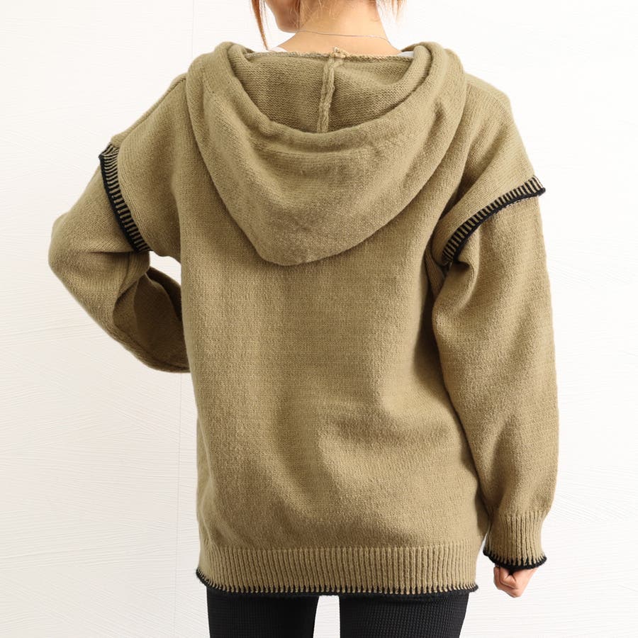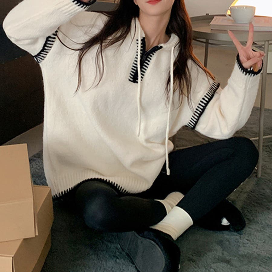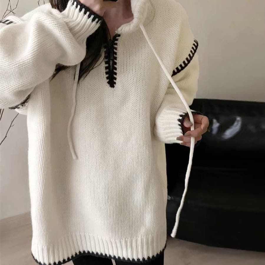 アースカラーで垢抜け間違いなし、ハーフジップが効いたルーズシルエットの韓国DESIGNの新作ニットパーカー
