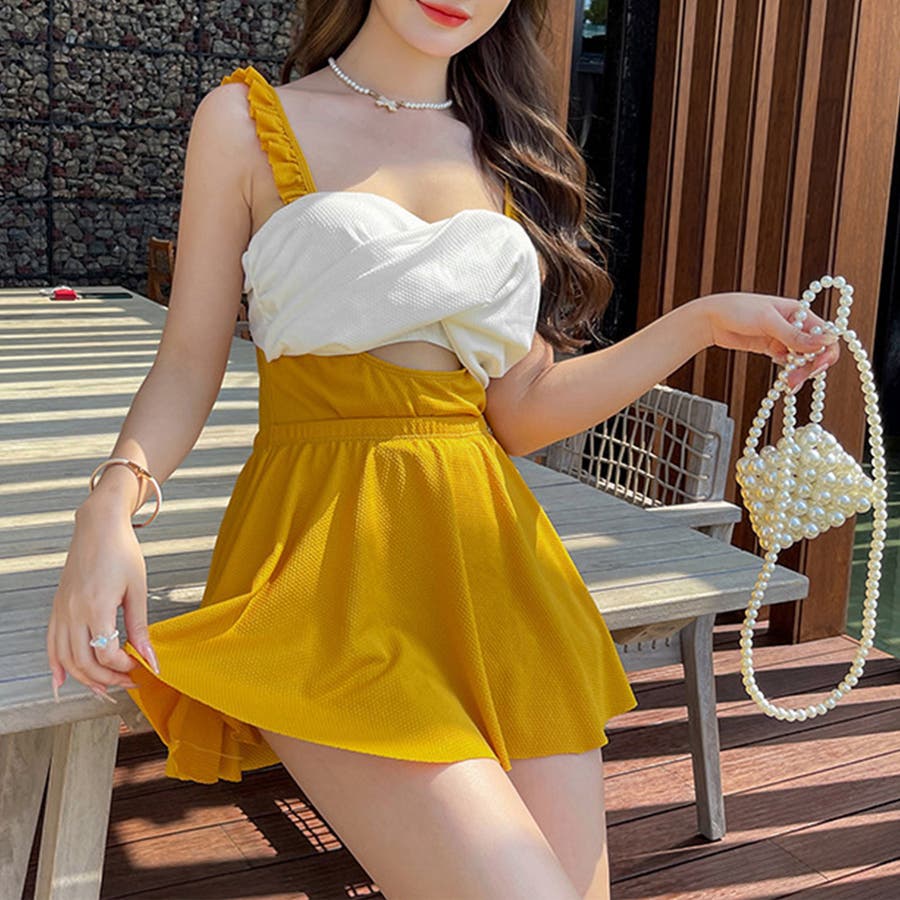 韓国スイムウェア 大人可愛いみずぎ オールインワン水着