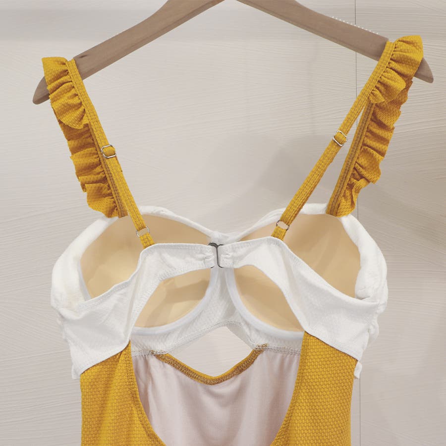 バイカラーでおしゃれな2way仕様水着、甘すぎないリボンデザインで大人可愛いスタイルに◎