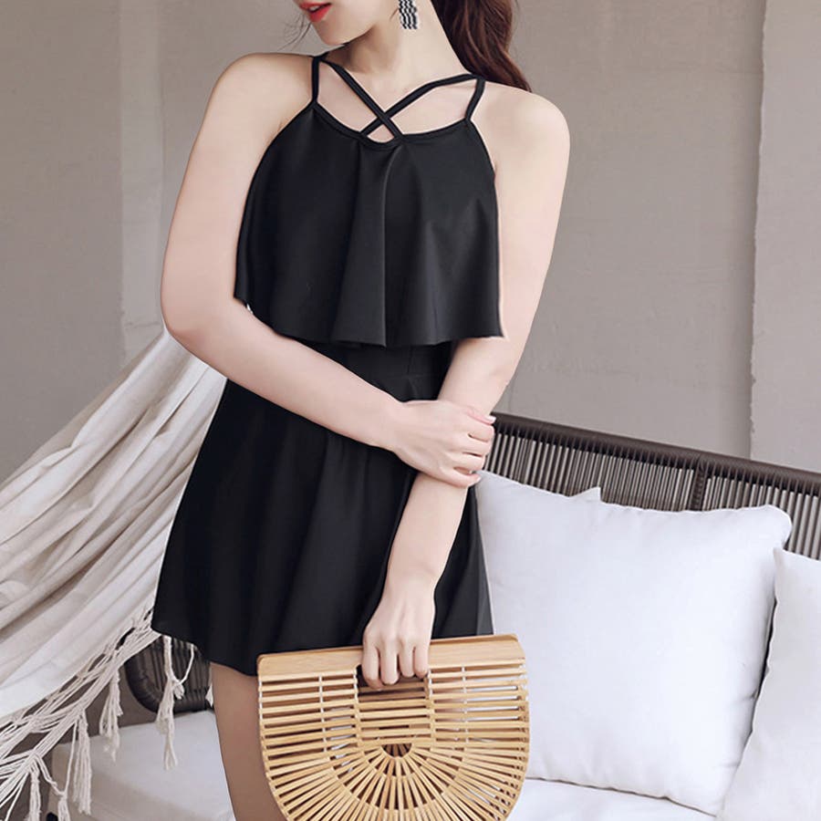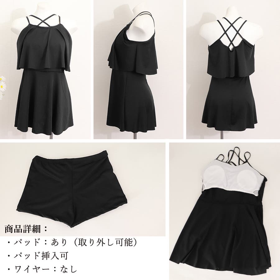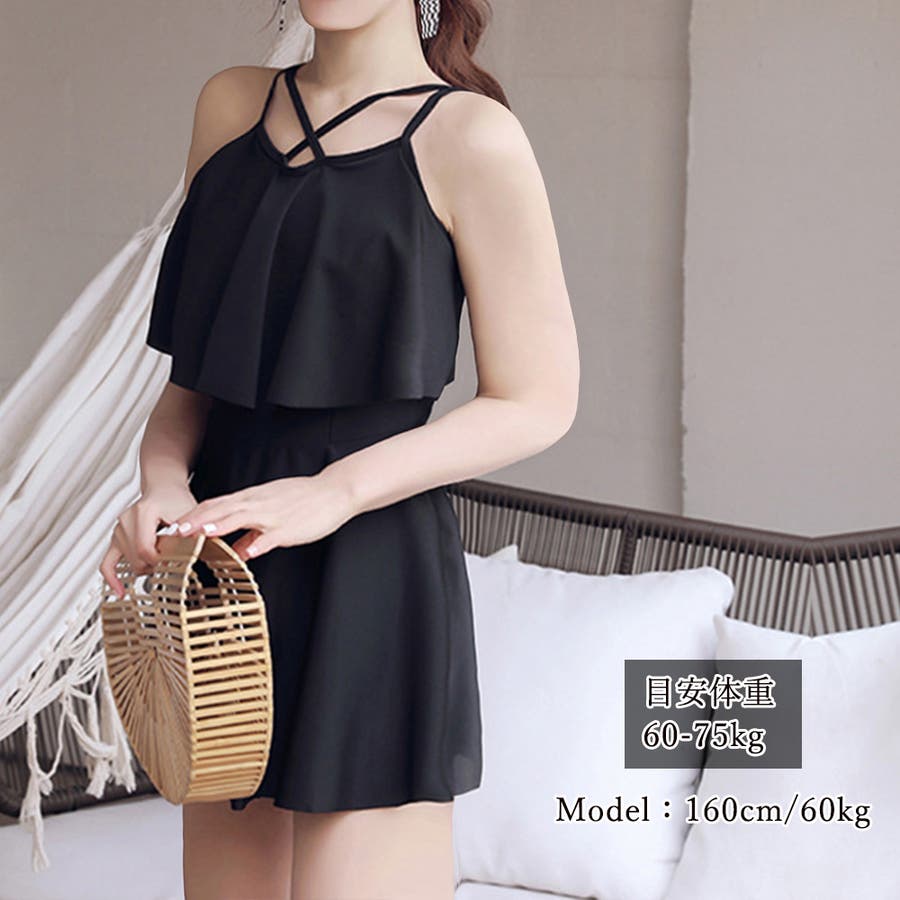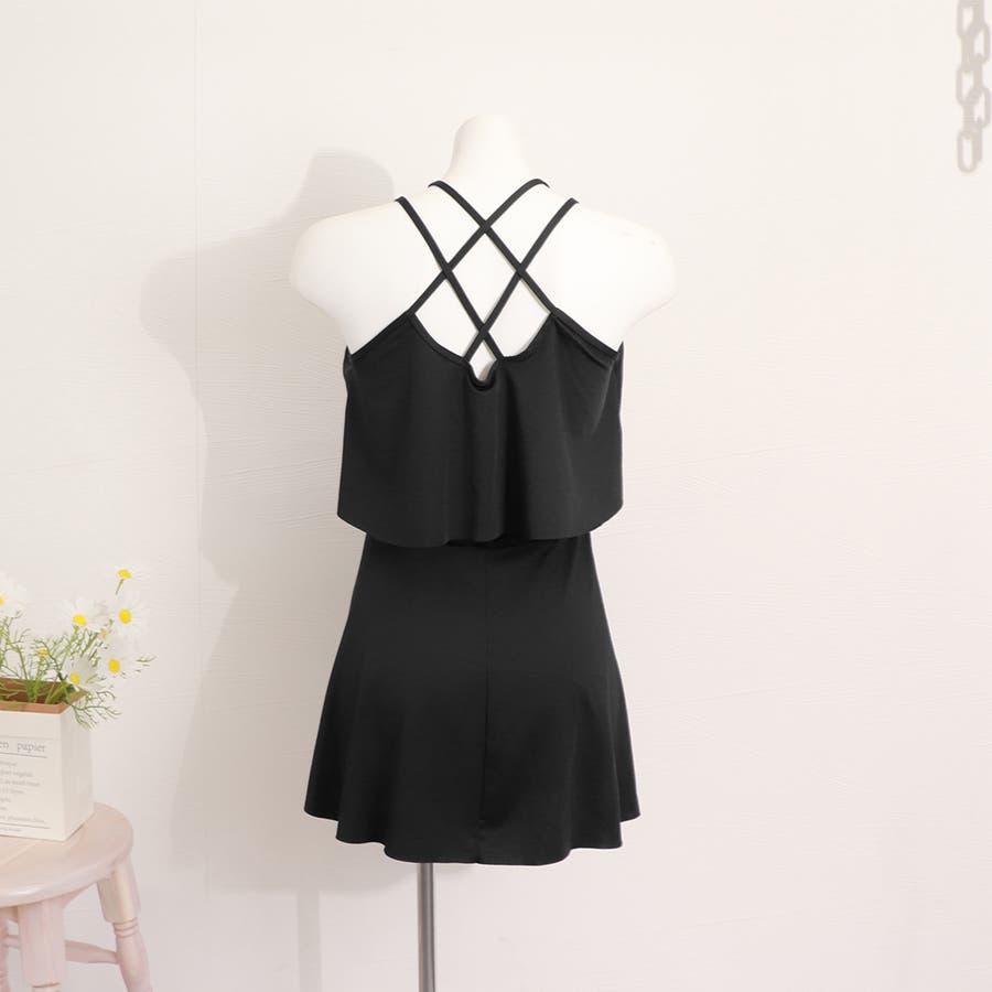 胸元のフリルとビスチェ風のデザインがさりげなくバストUP