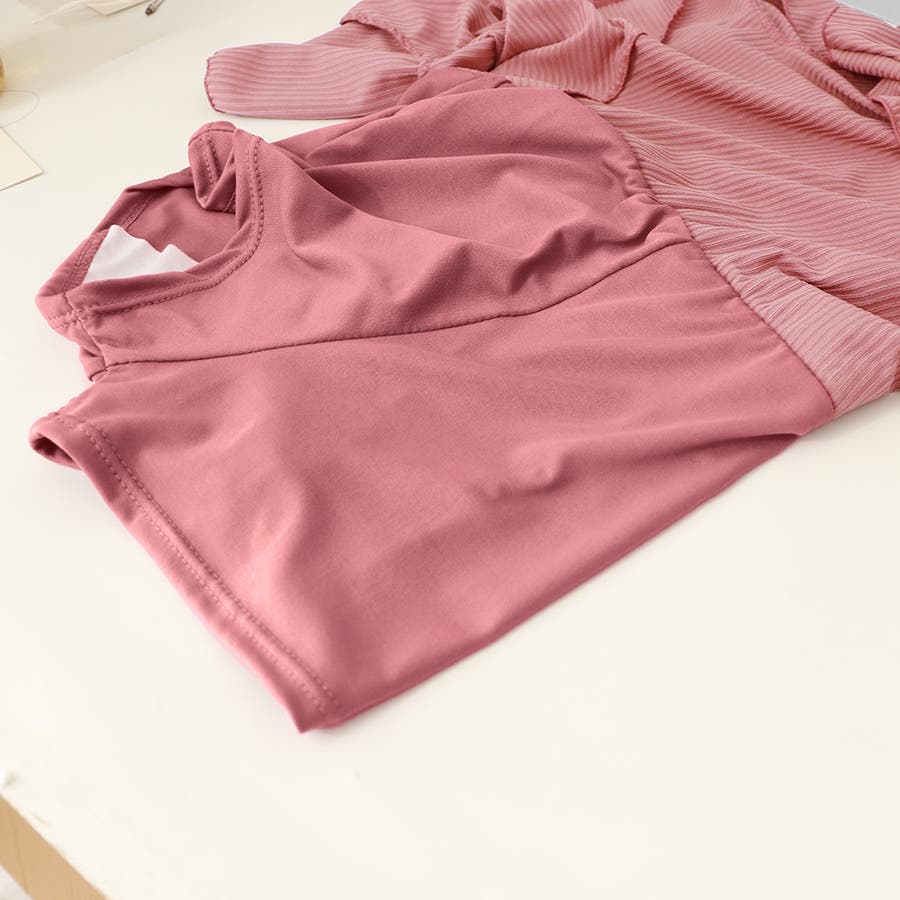 ウエスト部分にリボンをあしらい、女性らしいウエストラインを強調します