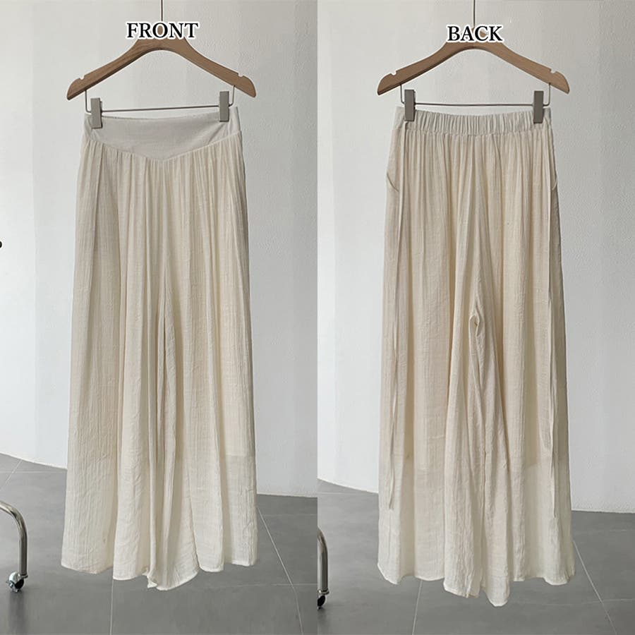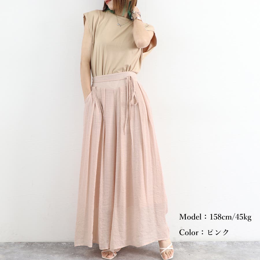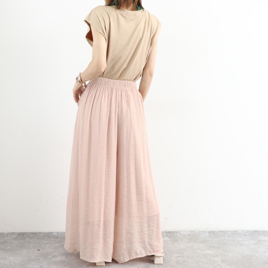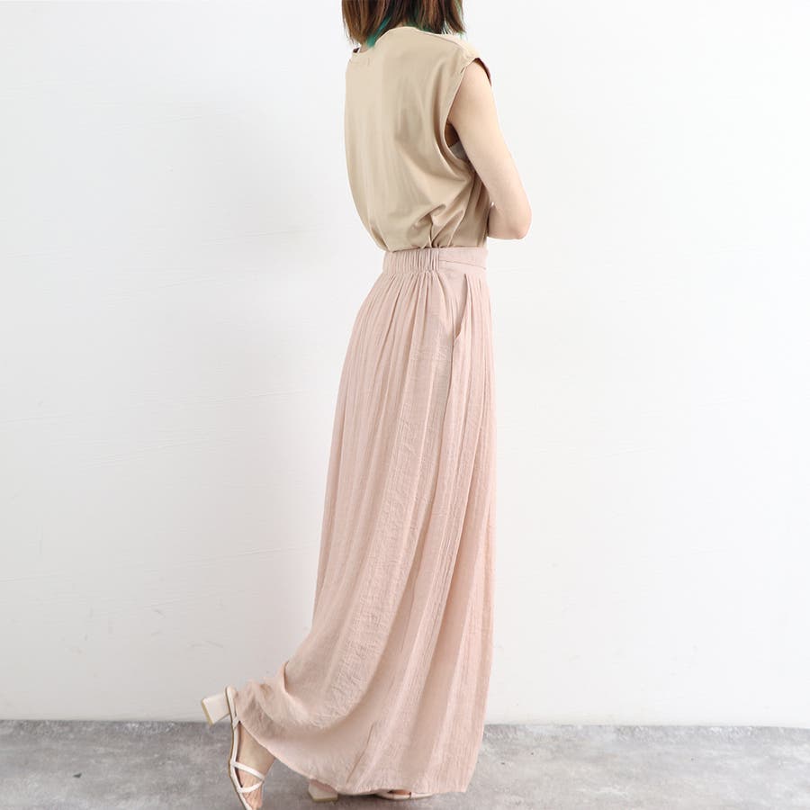 上質な天然素材にスカート見えする女性らしいDesign、ラフながらも優雅で上品な風合いが魅力のとろみロングパンツ