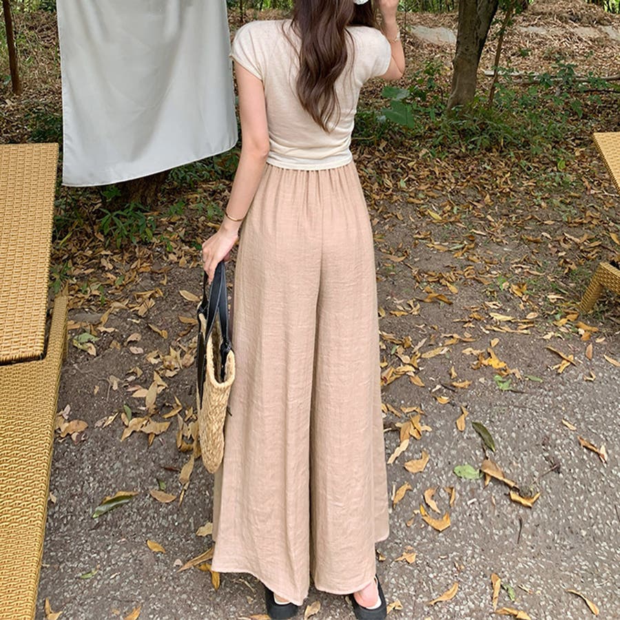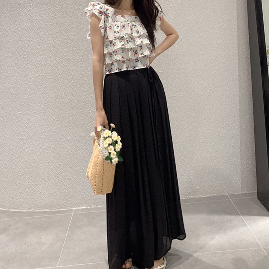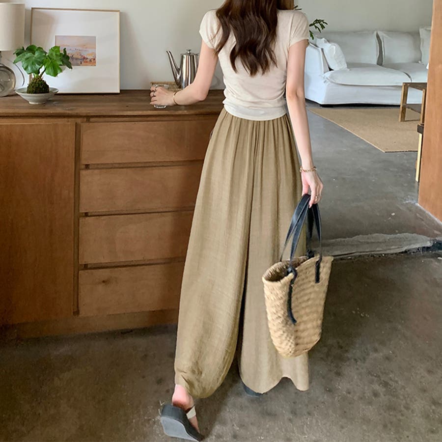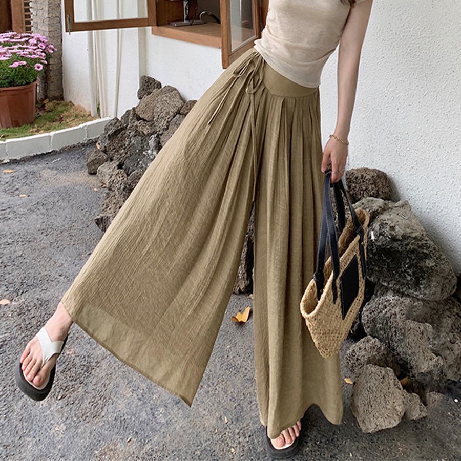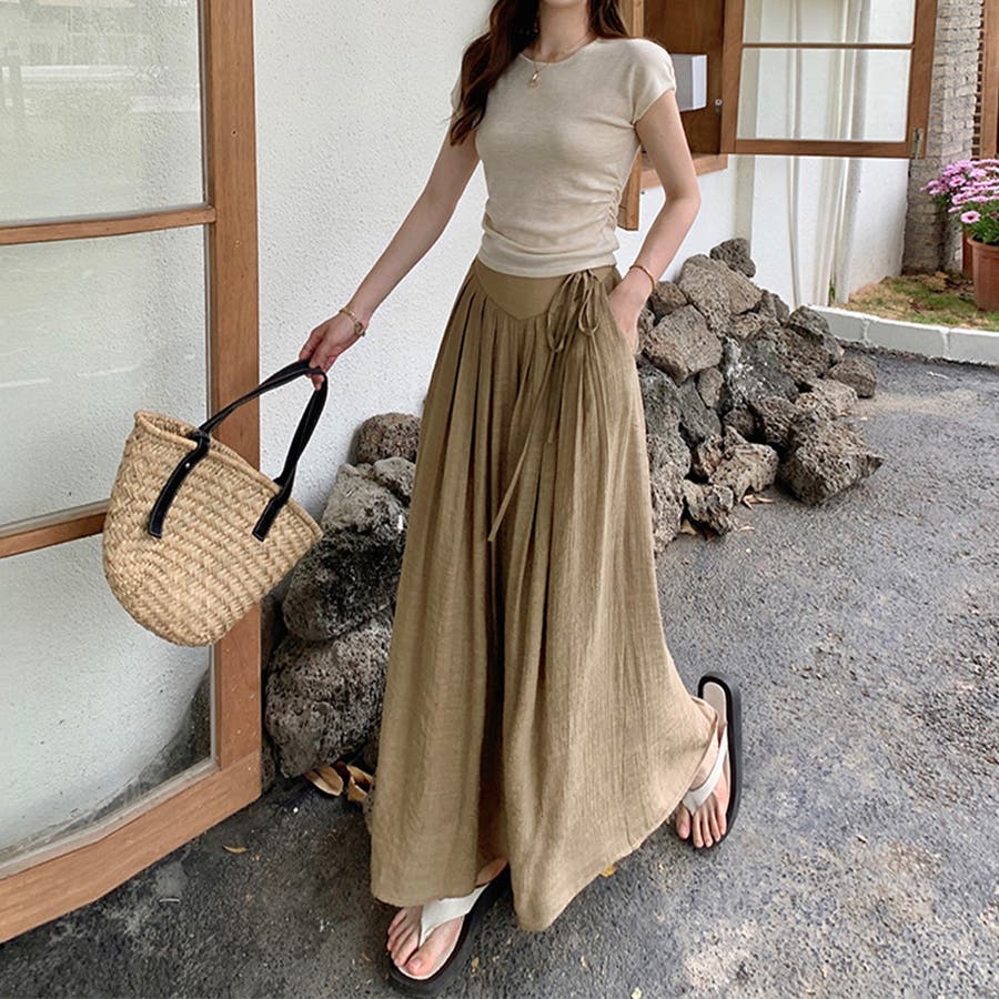 上質な天然素材にスカート見えする女性らしいDesign、ラフながらも優雅で上品な風合いが魅力のとろみロングパンツ