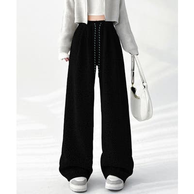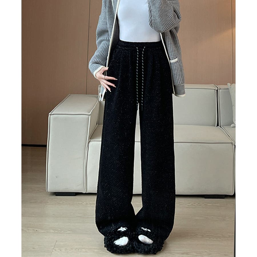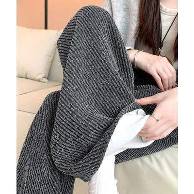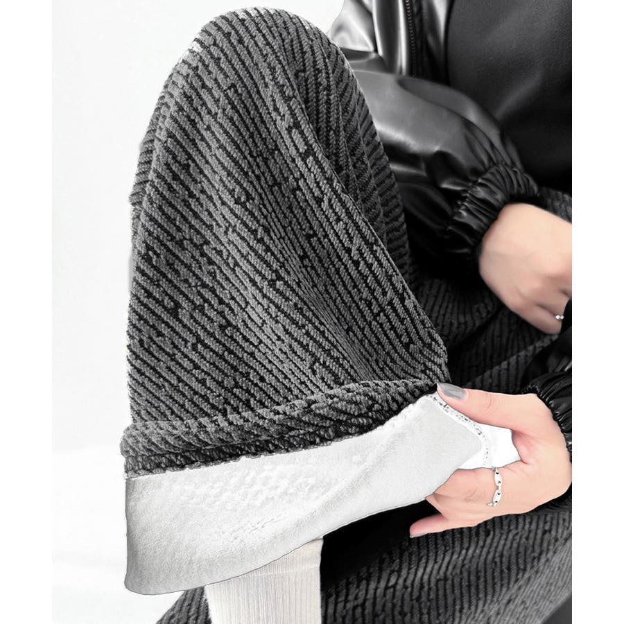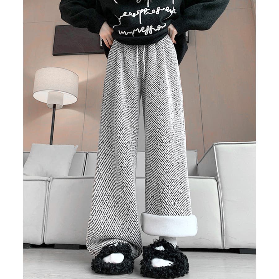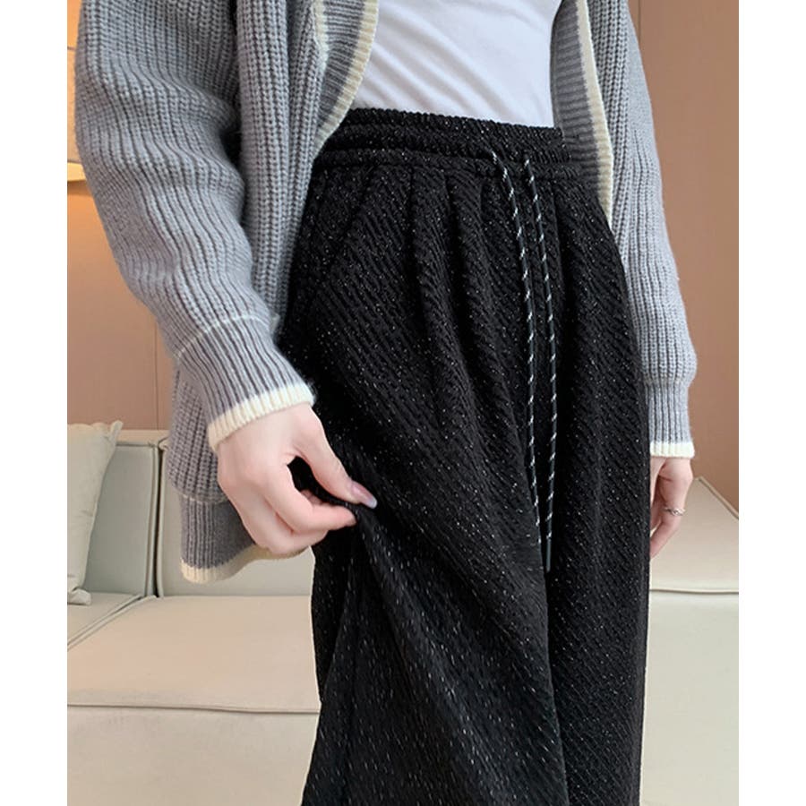 体型カバー長ズボン 裏起毛パンツ韓国風 脚長見せ パンツ黒