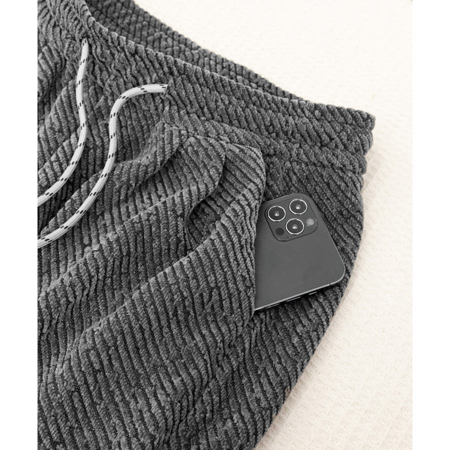 ウエストはゴム仕様で、ドローコードによるサイズ調節も可能です。